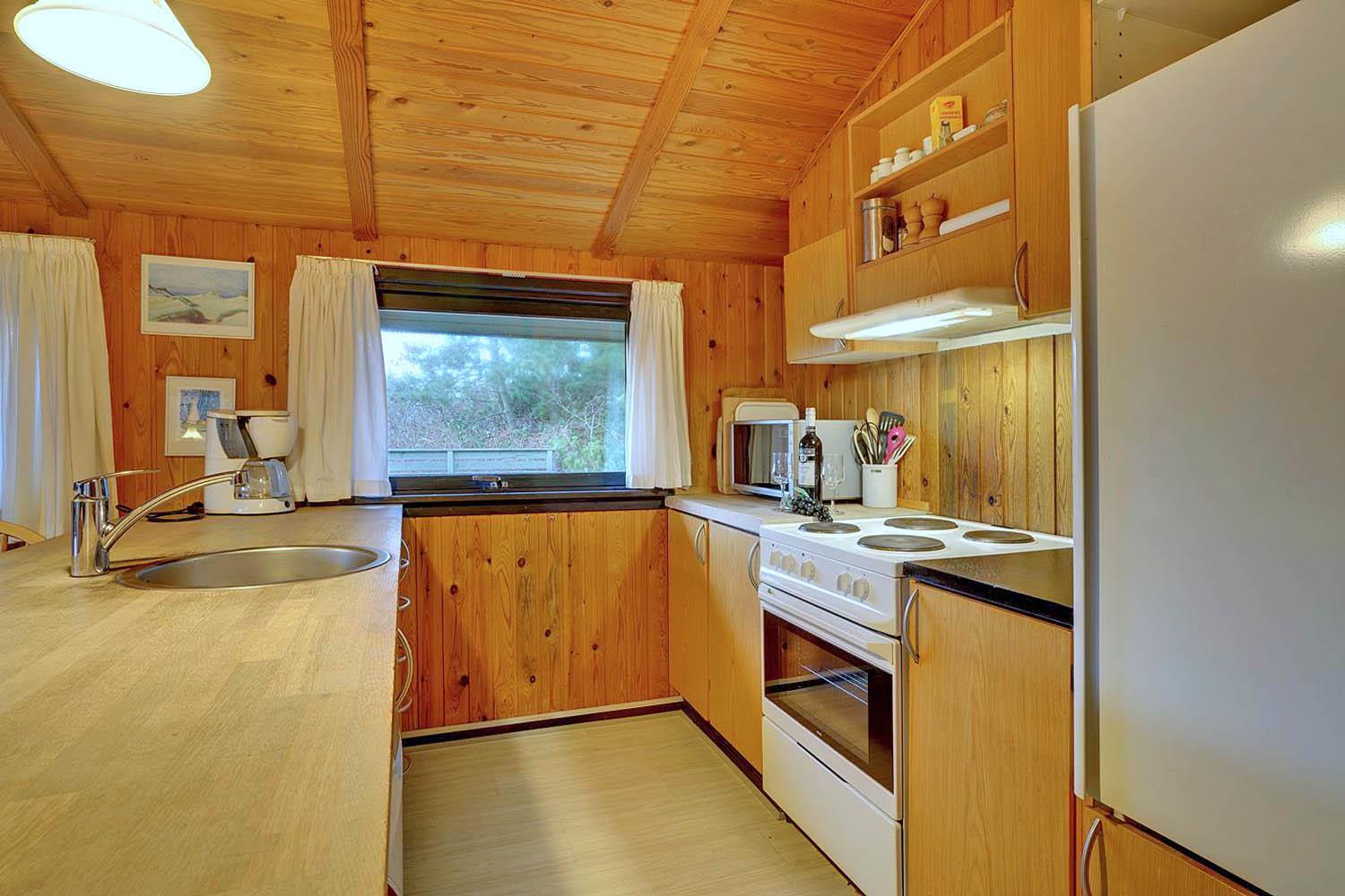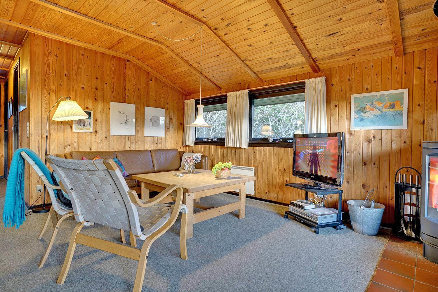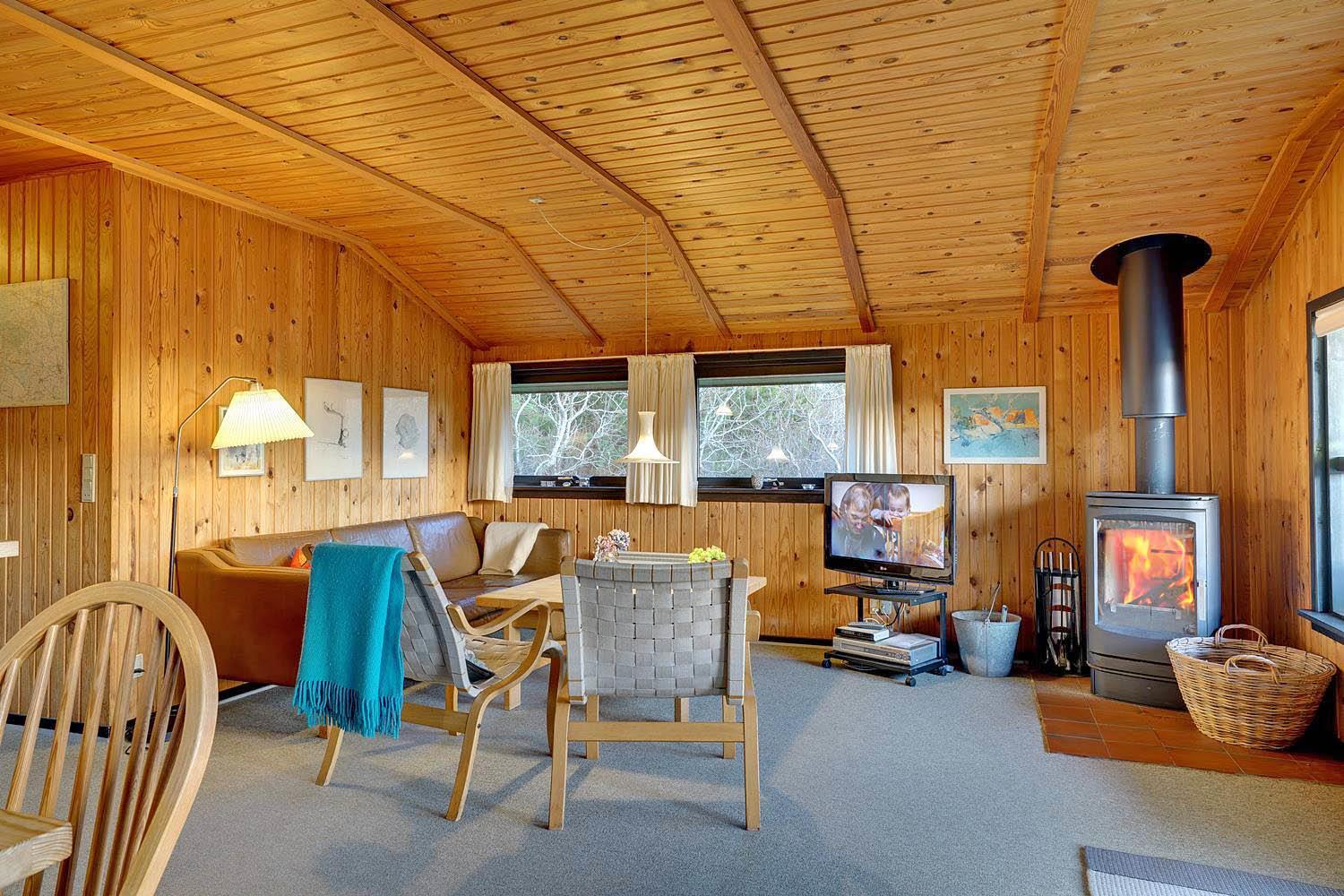 Hyggeligt sommerhus på lys naturskøn grund, med udsigt iver strandklitterne. Der 50 m til en natursti til stranden og 400 m til stranden. Der er 3. terrasser og derfor altid mulighed for sol. Køkkenet er i forbindelse med stuen, der har alkove, brændeovn og udgang til overdækket terrasse. Badeværelse i forbindelse med sauna.