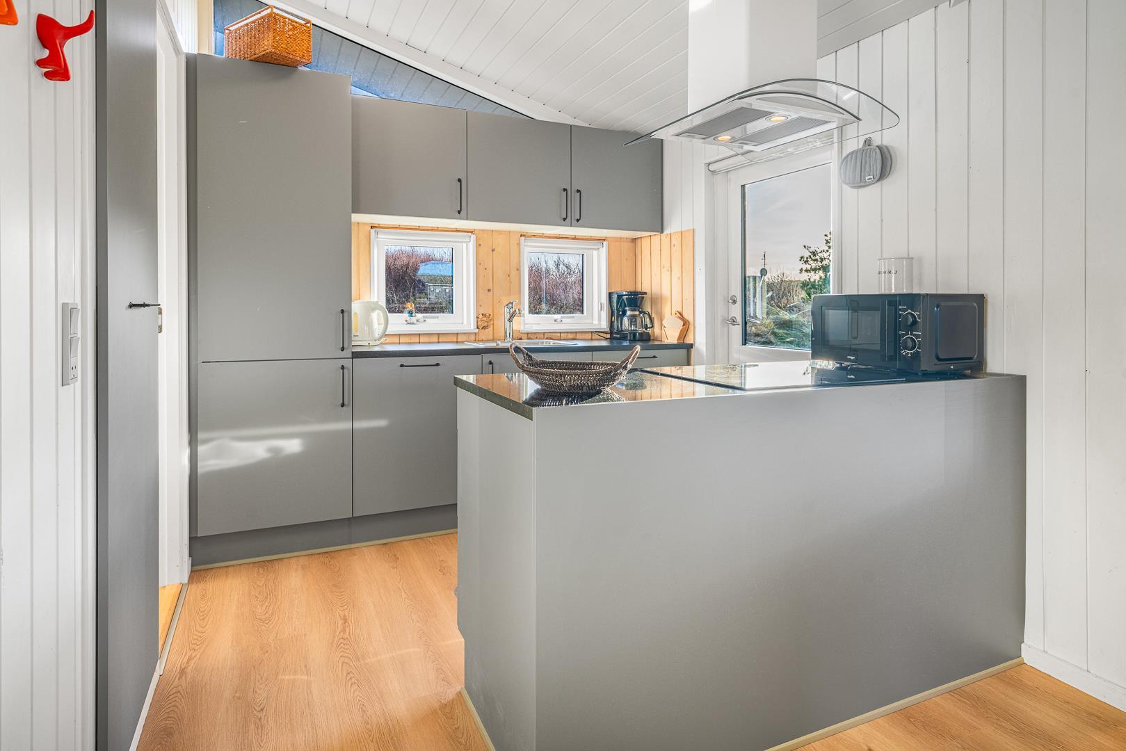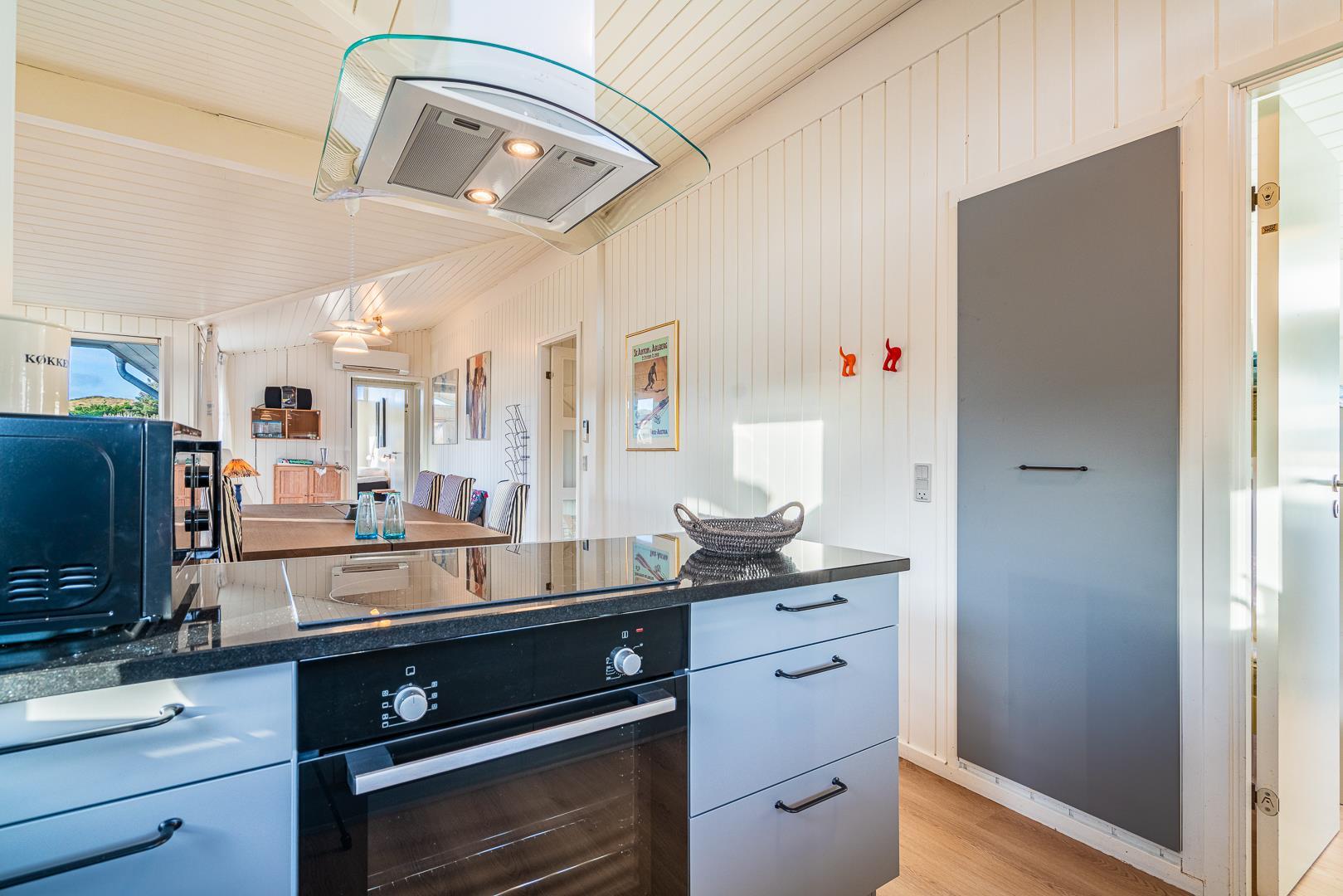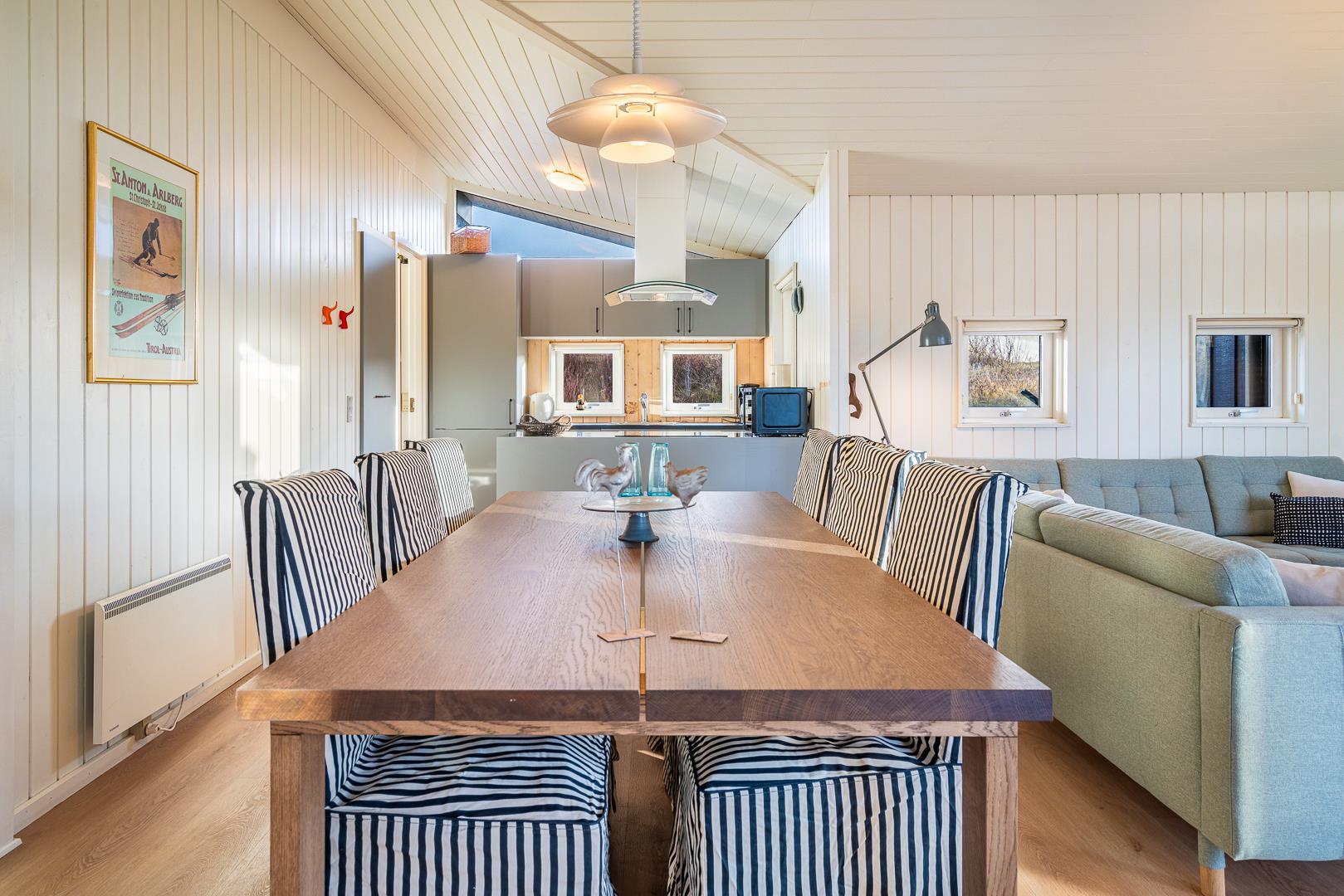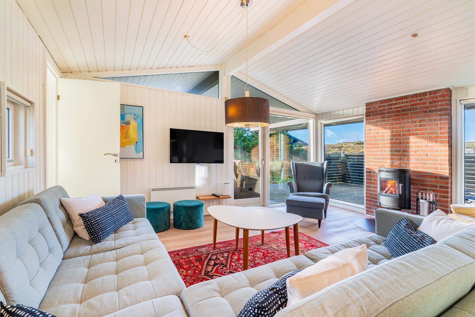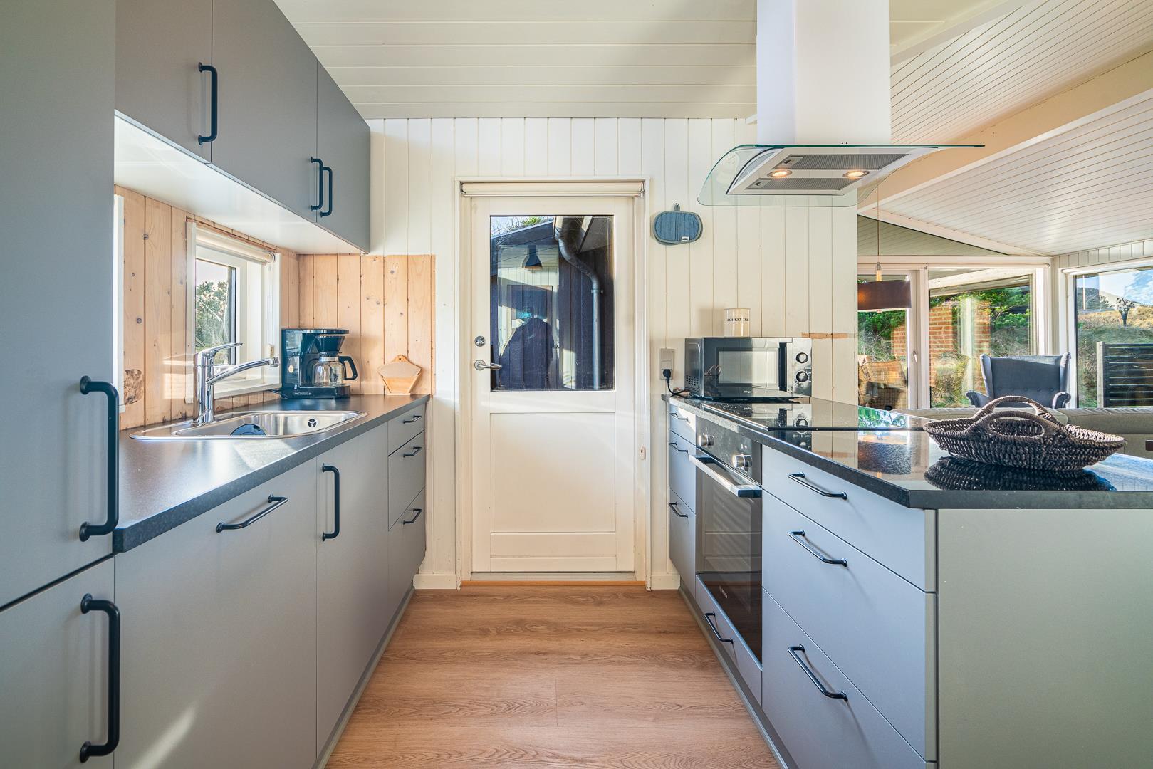 Husets hjerte er det store, åbne fællesrum, hvor stue og køkken smelter sammen og skaber en fantastisk atmosfære med plads til samvær. Fra køkkenet og stuen er der direkte udgang til en skøn terrasse, hvor du kan nyde læ og udsigt til den smukke natur. Med terrasser på hele to sider af huset er der rig mulighed for at fange solens stråler fra morgen til aften – uanset om du foretrækker en stille morgenkaffe eller en hyggelig grillmiddag i solnedgangen.