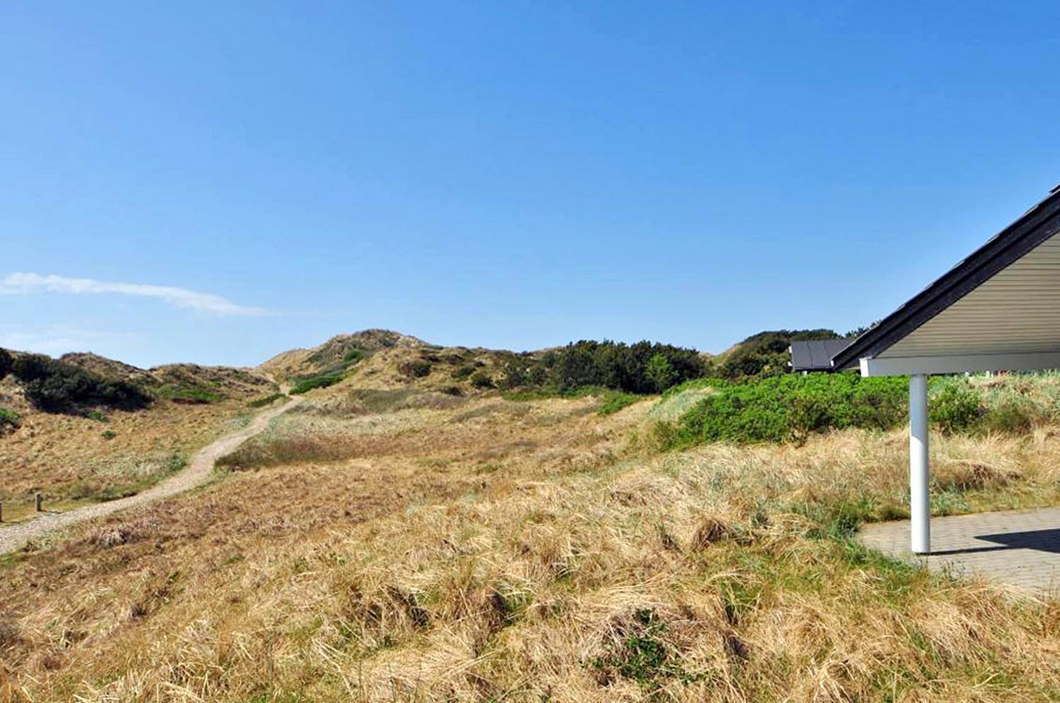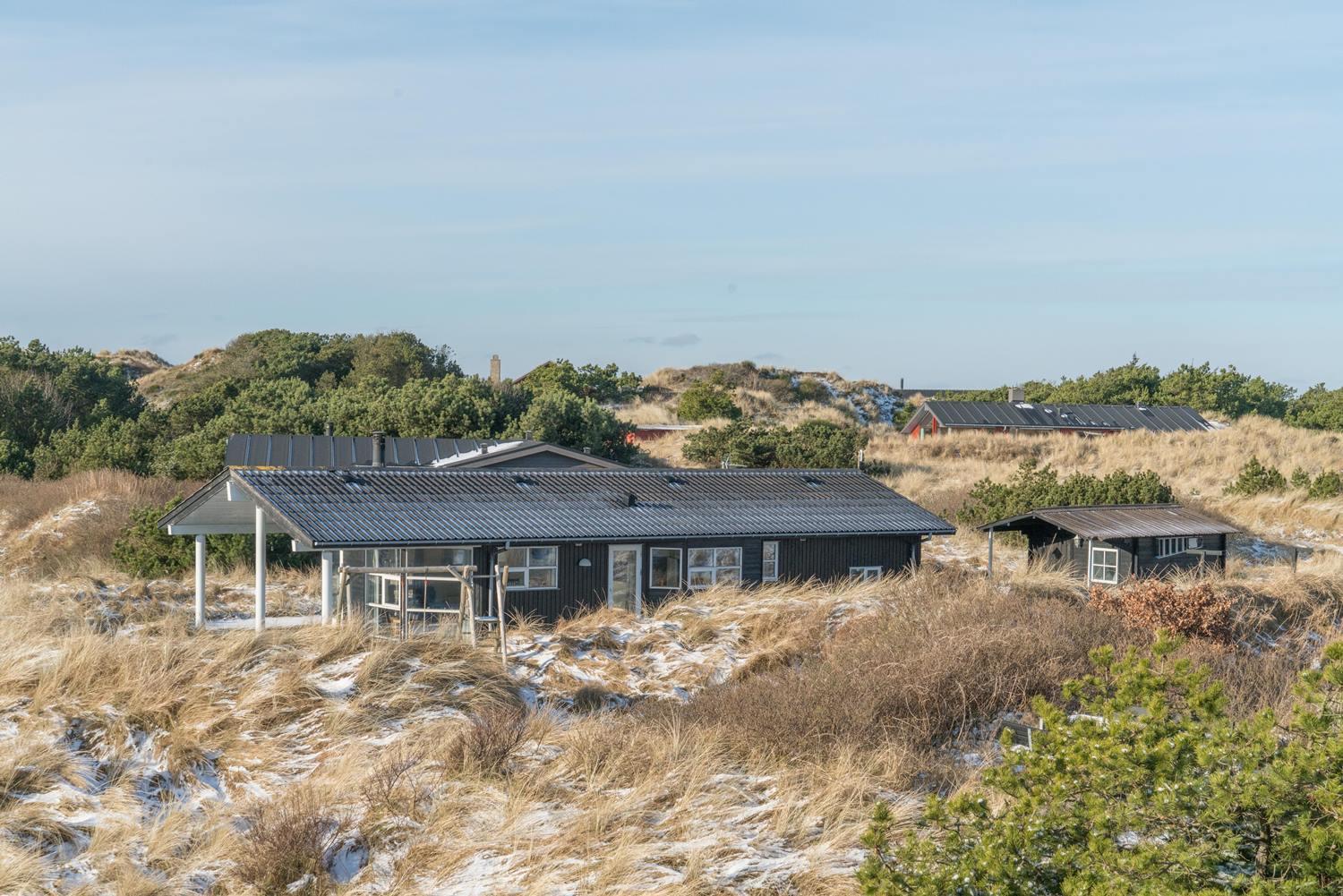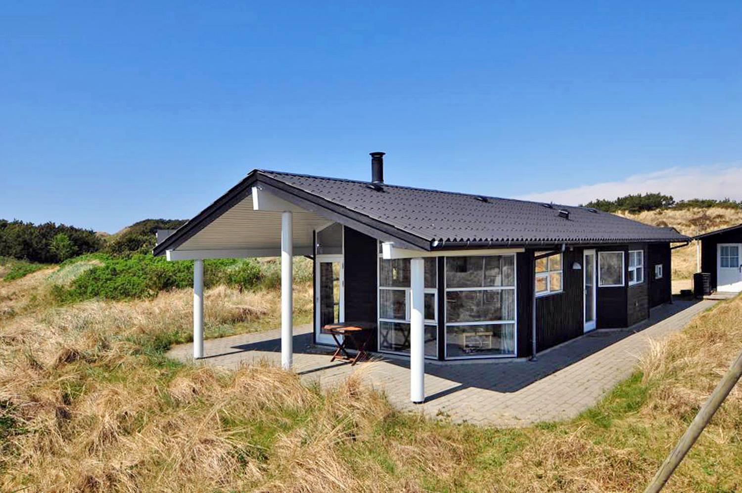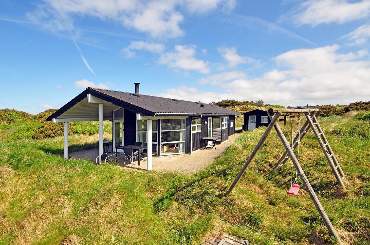 Fantastisk feriehus beliggende i første klitrække ud til stort, fredet naturområde - tæt ved Vesterhavets bølger. Fra den velindrettede, lyse stue er der pragtfuld udsigt til klitterne og direkte adgang til de ugenerede terrasser, der ligger rundt om huset (både åbne og en overdækket). Moderne og godt udstyret køkken med bl.a. opvaskemaskine. To gode soveværelser med dobbeltsenge. Badeværelse med bruseniche, sauna og gulvvarme. Huset er beliggende ved en blind vej - midt i naturen. Velegnet til børnefamilien eller til den, der ønsker fred og nærhed til stranden og den smukke natur - hele året rundt.