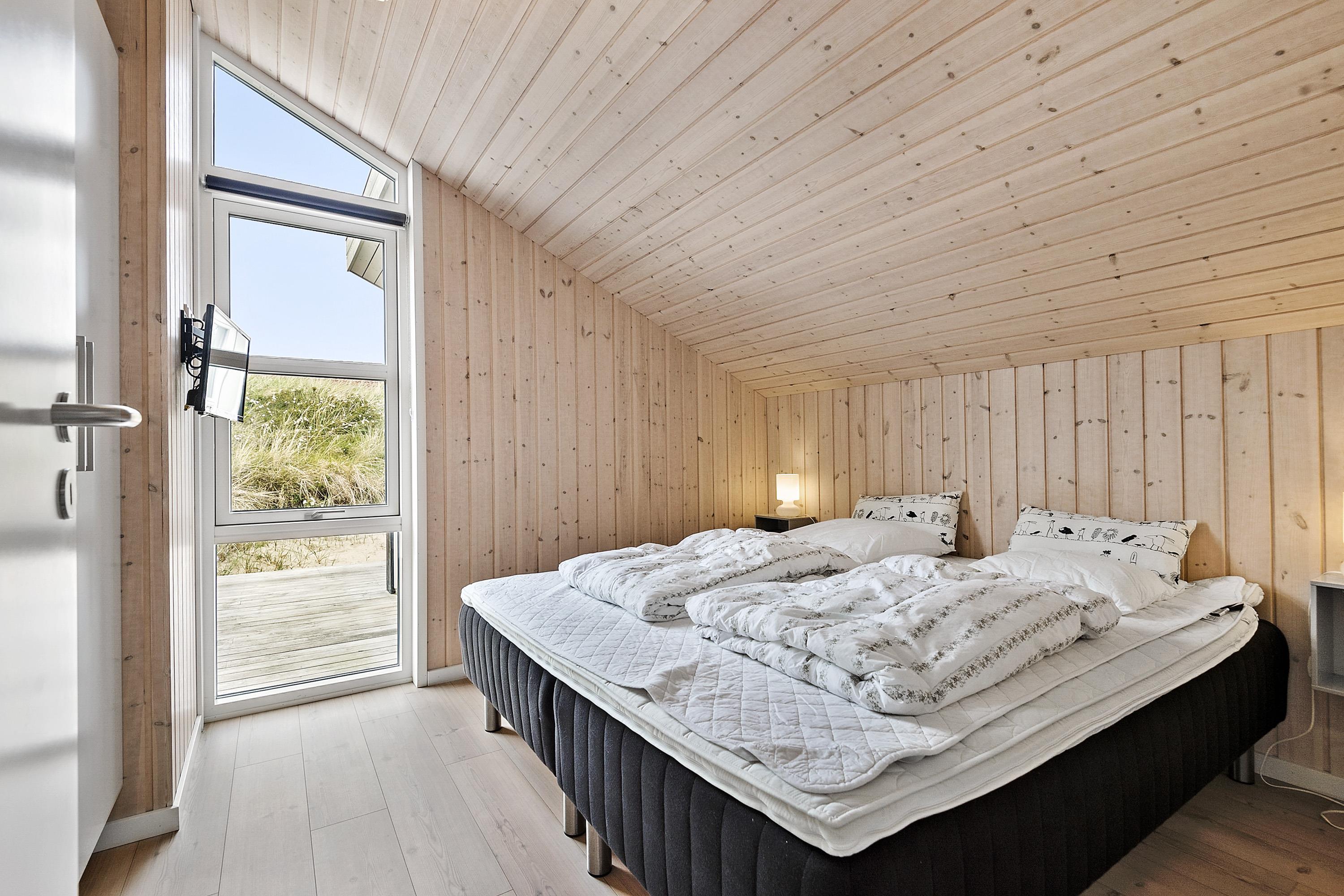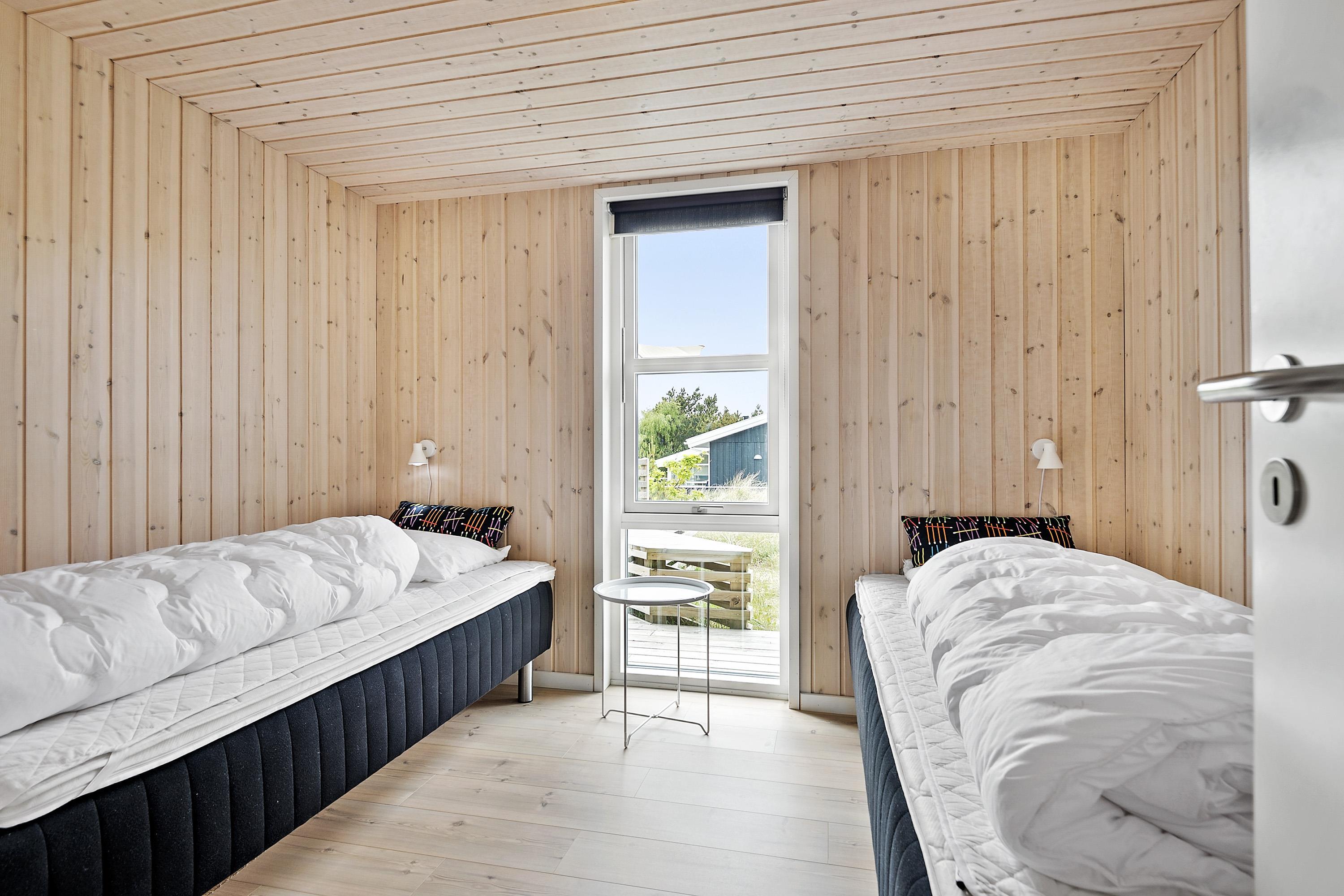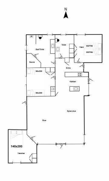 Med 3 rummelige værelser og gode senge er huset det rigtige valg til 5 personer. Sengestørrelser: 1 dobbeltseng med 2 madrasser á 90 x 200 cm + 1 dobbeltseng 140 x 200 cm + 2 enkeltsenge 90 x 200 cm.