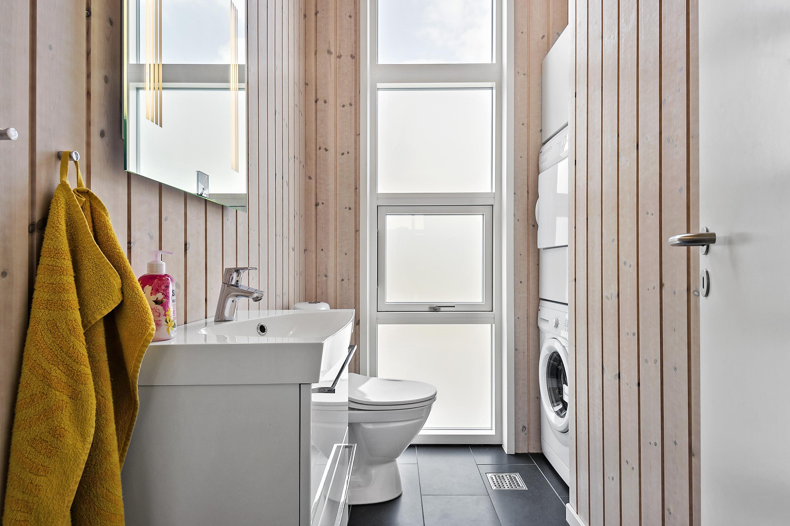 På det andet toilet står Vaskemaskine og tørretumbleren.