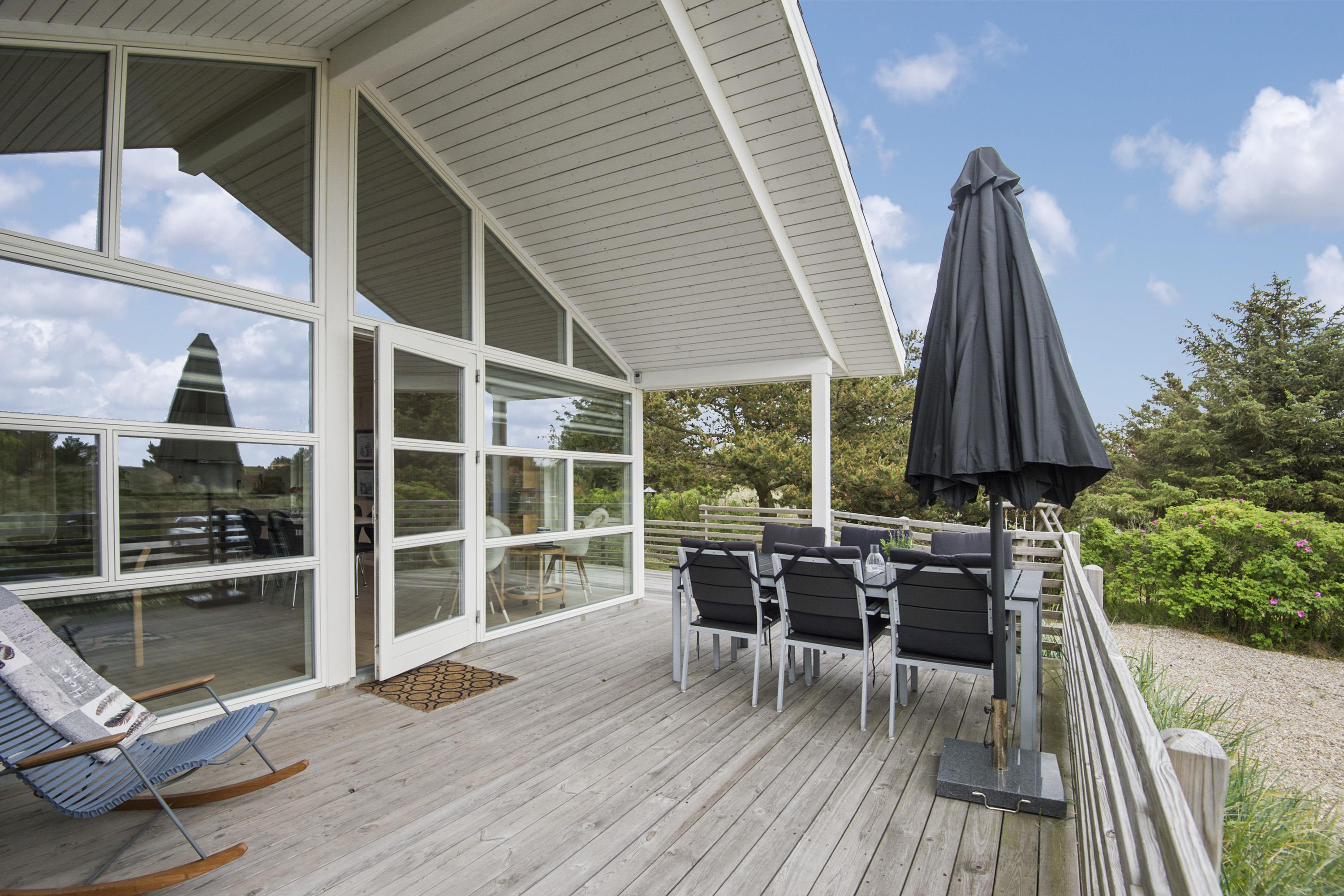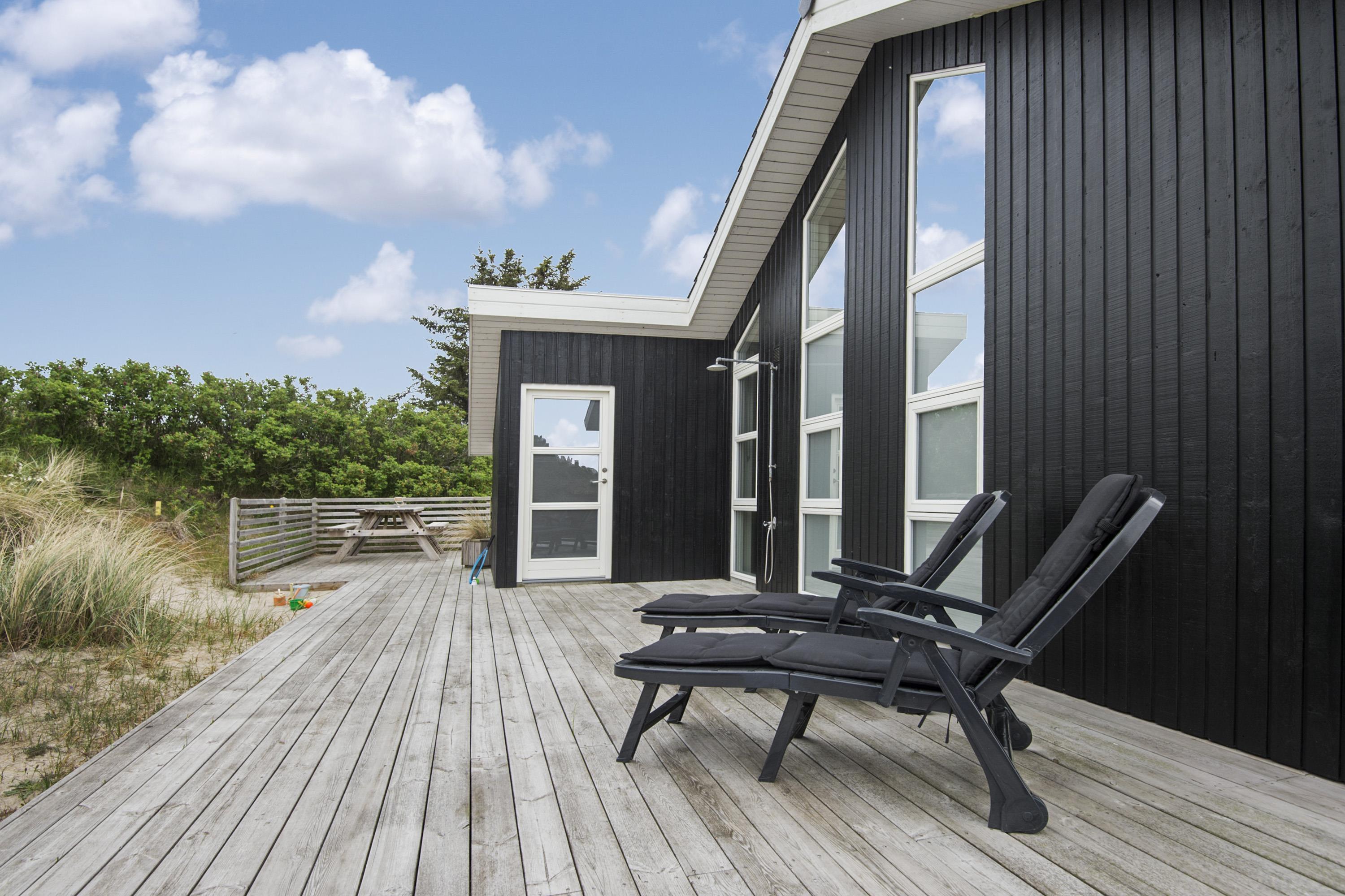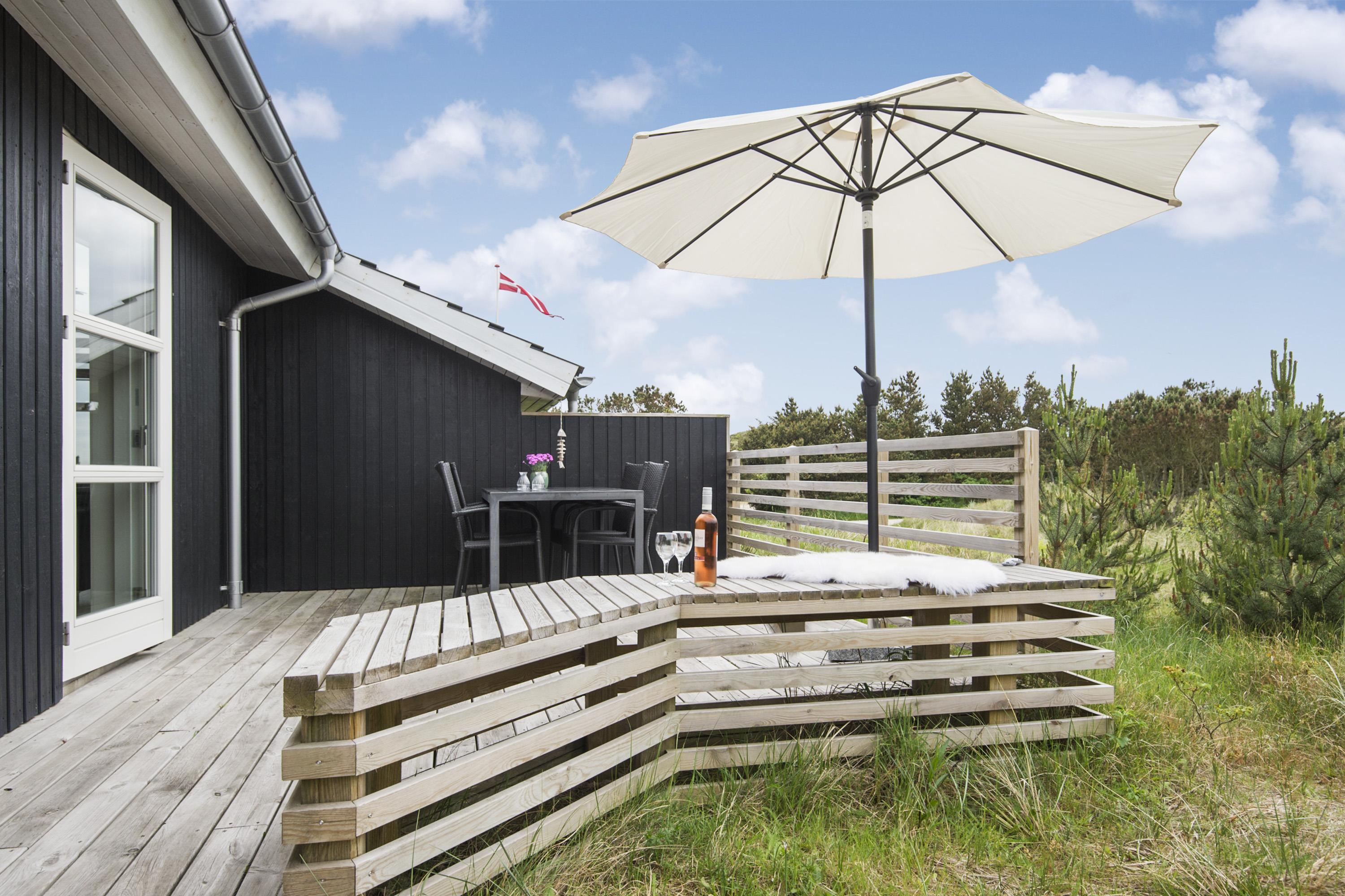 Der er hygge havemøbler grill og liggestole på terrassen. Det er muligt at nyde solen hele vejen rundt om huset, men især på bagsiden af huset kan man sidde uforstyrret. Til børnene er der en lille Tippie, de kan lege i.