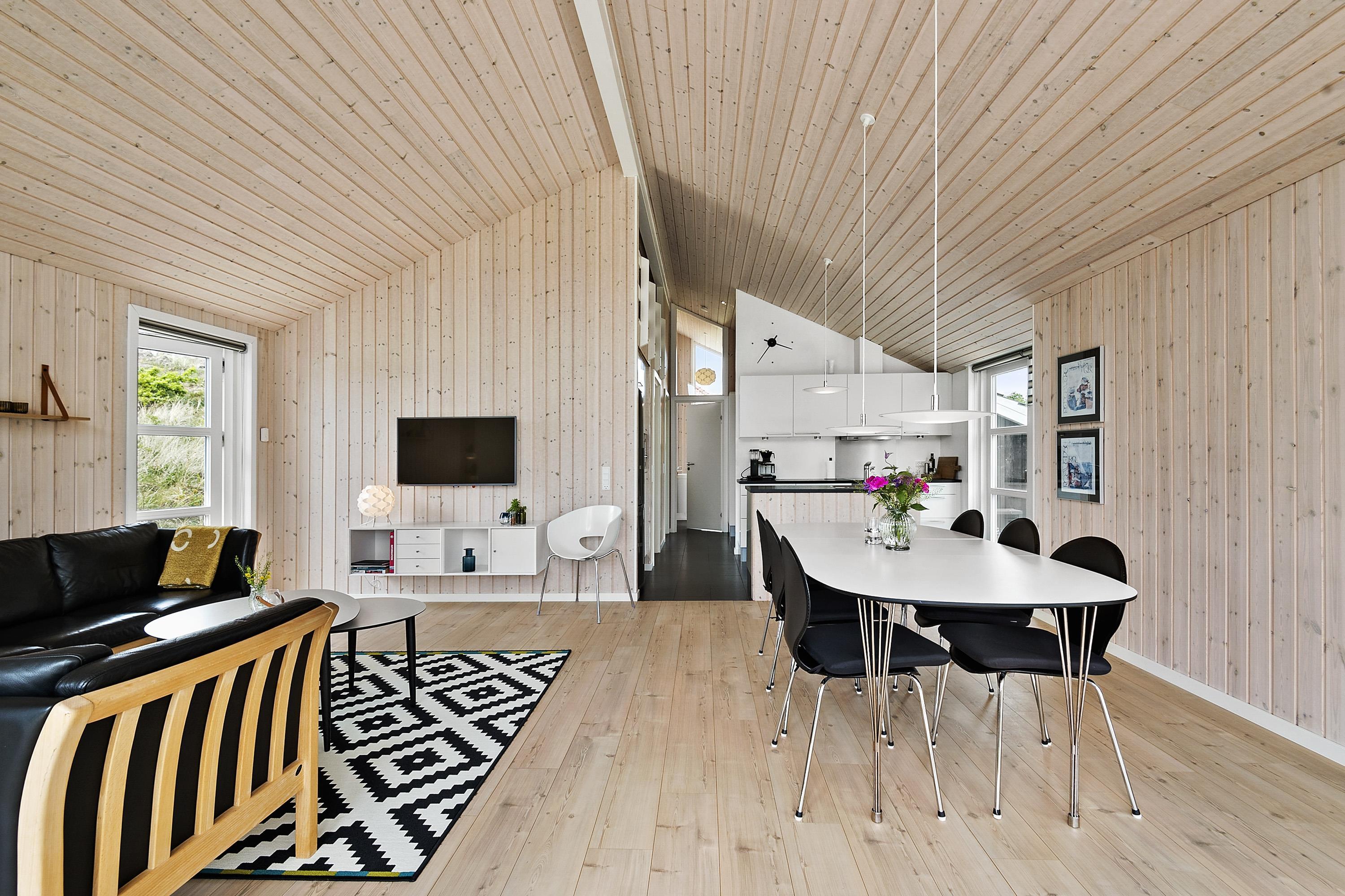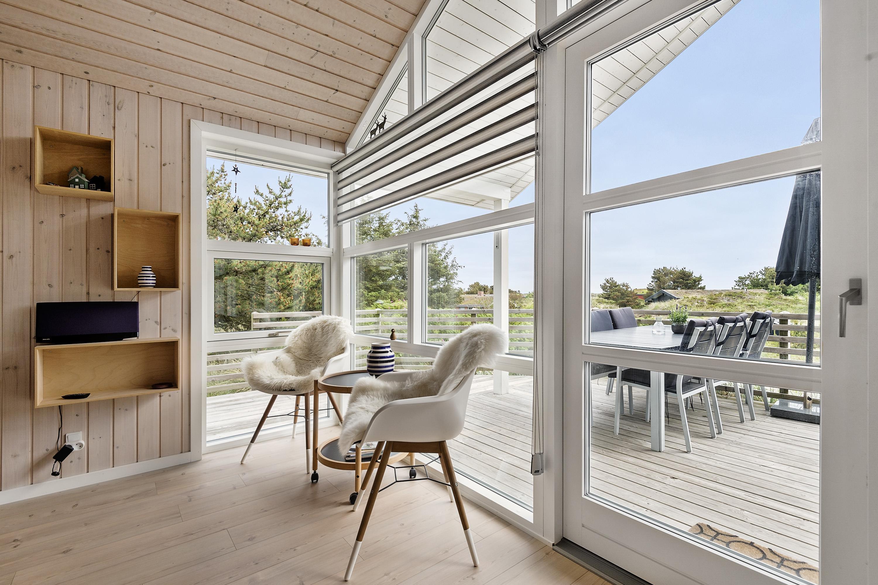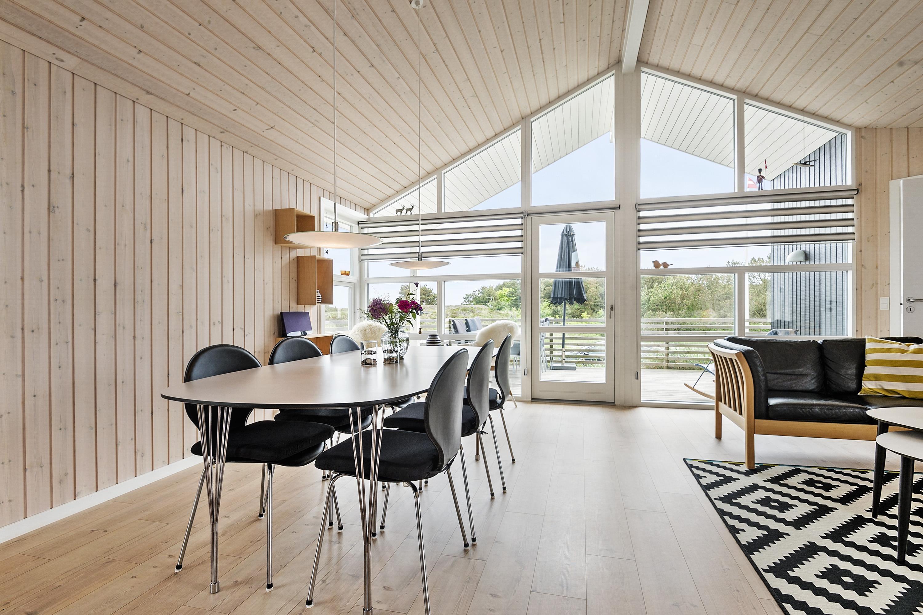Et rigtigt dejligt sommerhus, der med et stort lysindfald fra vinduespartier i gavlene giver et flot lys i hele huset.