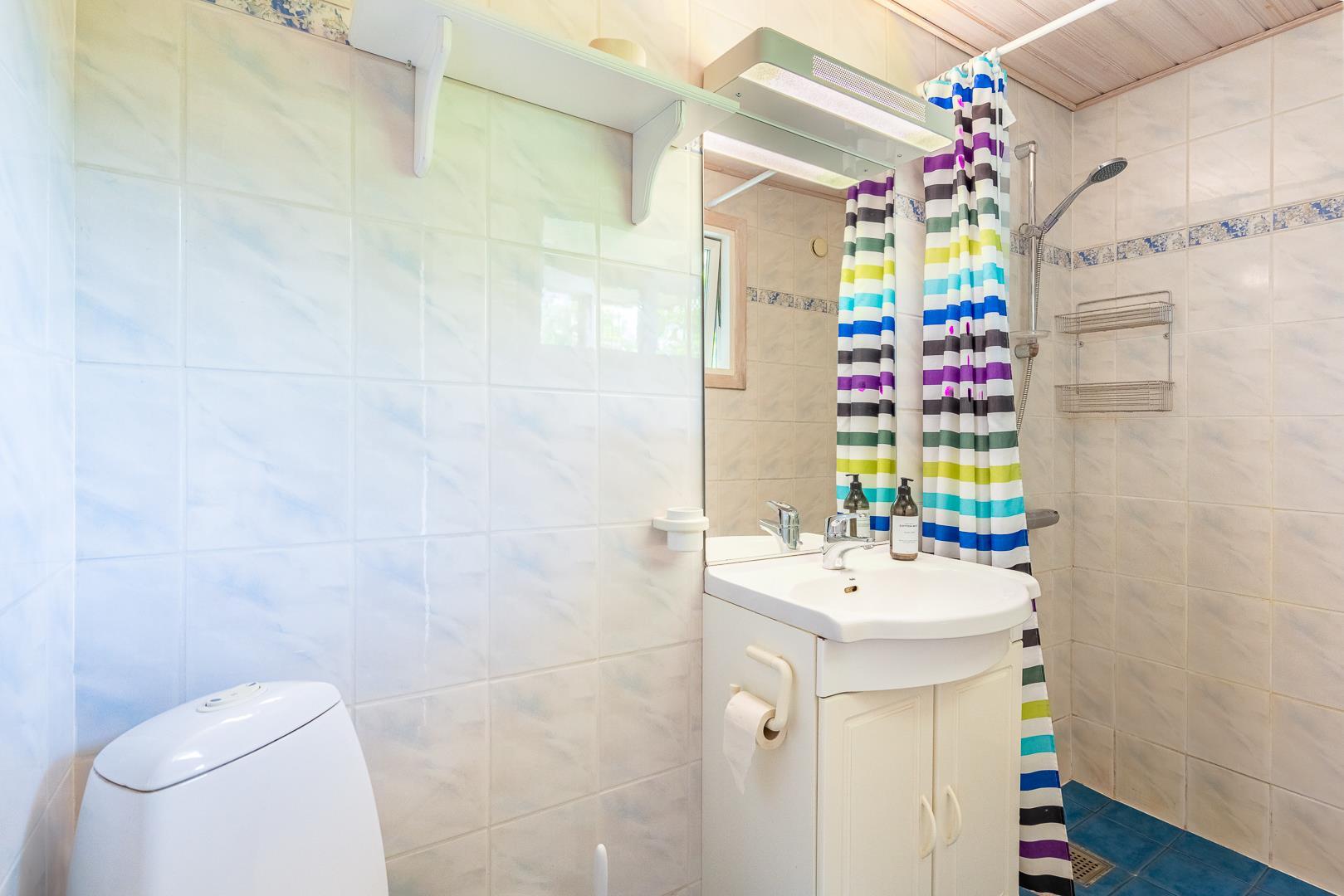 Badeværelset har gulvvarme, der sikrer en lun og behagelig start på dagen.