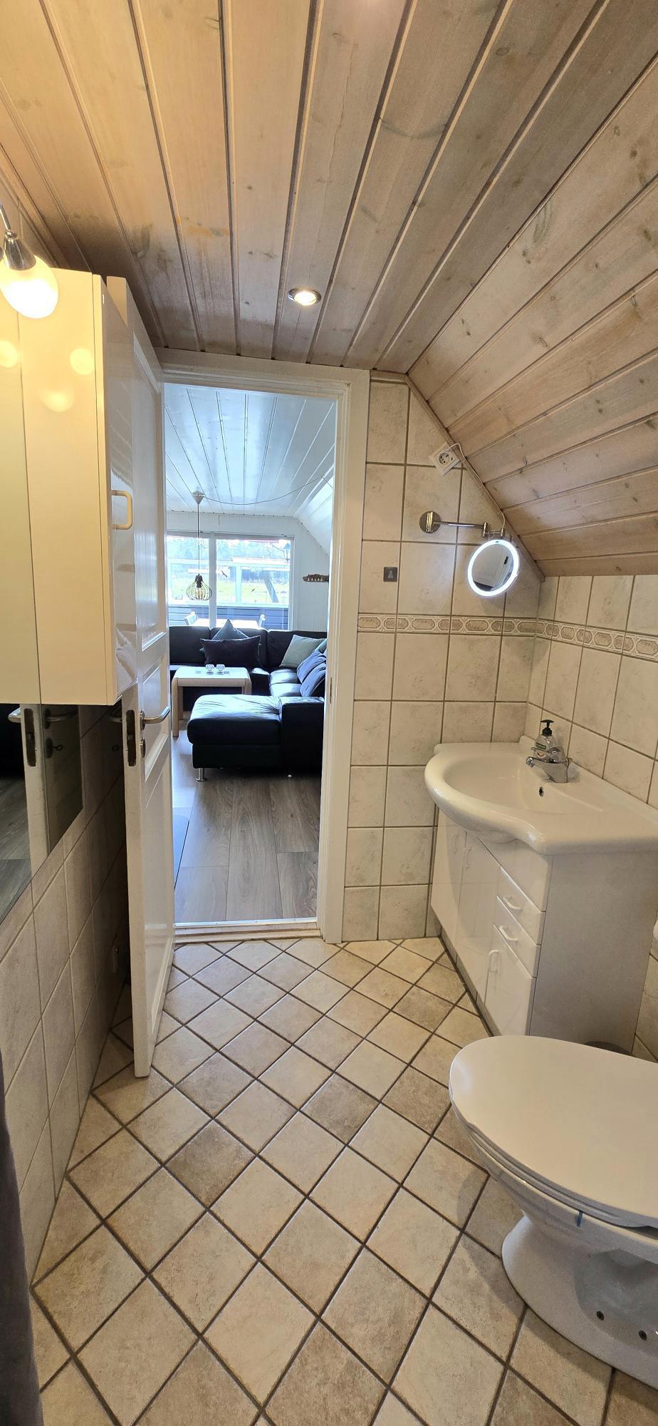På 1 sal er der 2 gode soverum, samt stort soverum i stueetage.