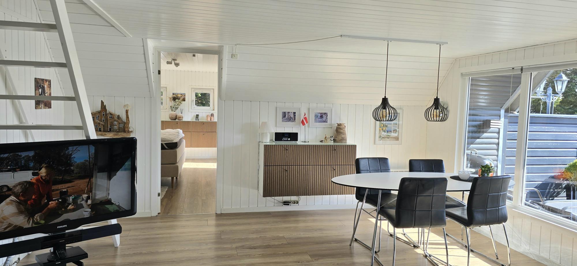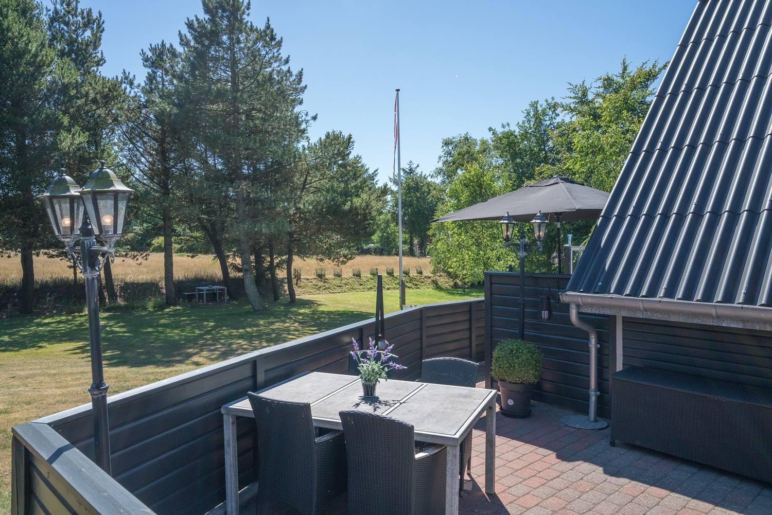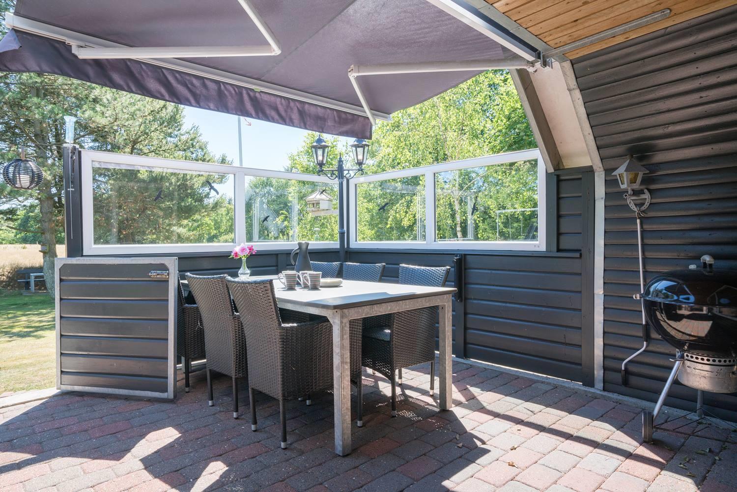 Fra opholdsrummet kommer I ud på den store ugenerte terrasse, der er helt ideel til børnefamilierne og hundeejerne.