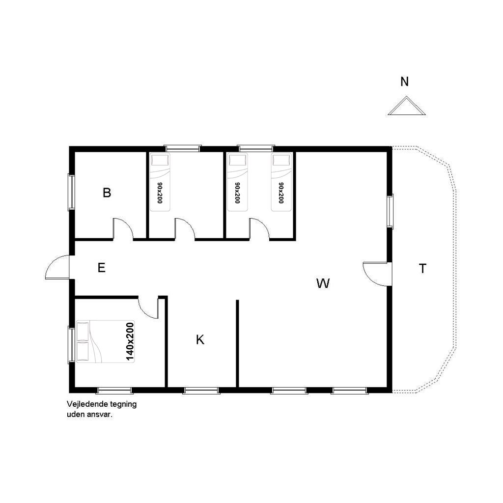 Sengestørrelse: 1 dobbeltseng 140 x 200 cm + 3 enkeltsenge 90 x 200 cm.
