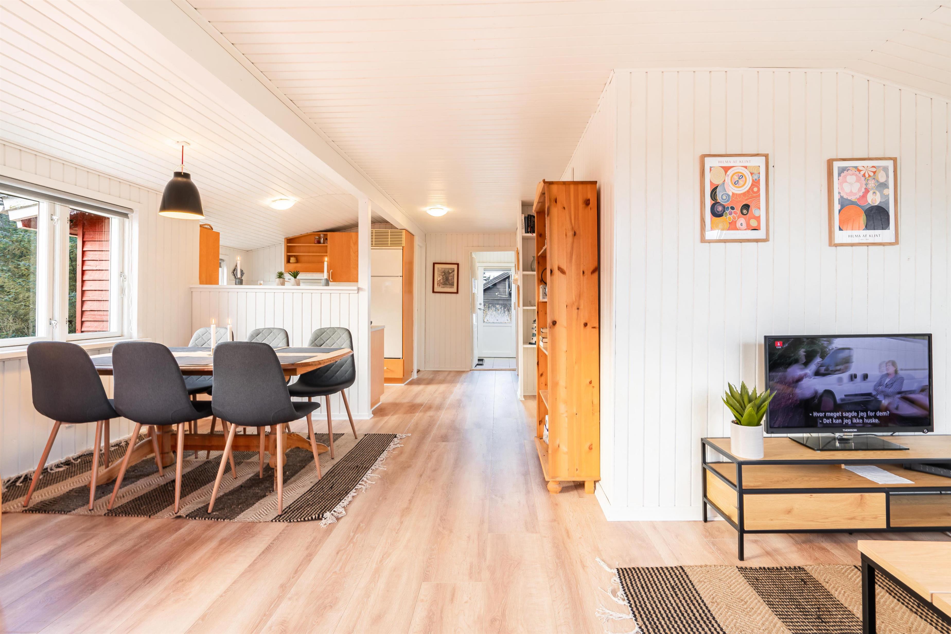 Huset har i 2021 gennemgået en større renovering med nye gulve, vinduer og møbler, samt vægge og lofter er blevet malet i lyse farver. Et rigtigt hyggeligt 'sommerhus' til den lille familie eller par. Porsevej 15 A ligger i flot og roligt område og i går afstand til vand Vesterhavet og byen.