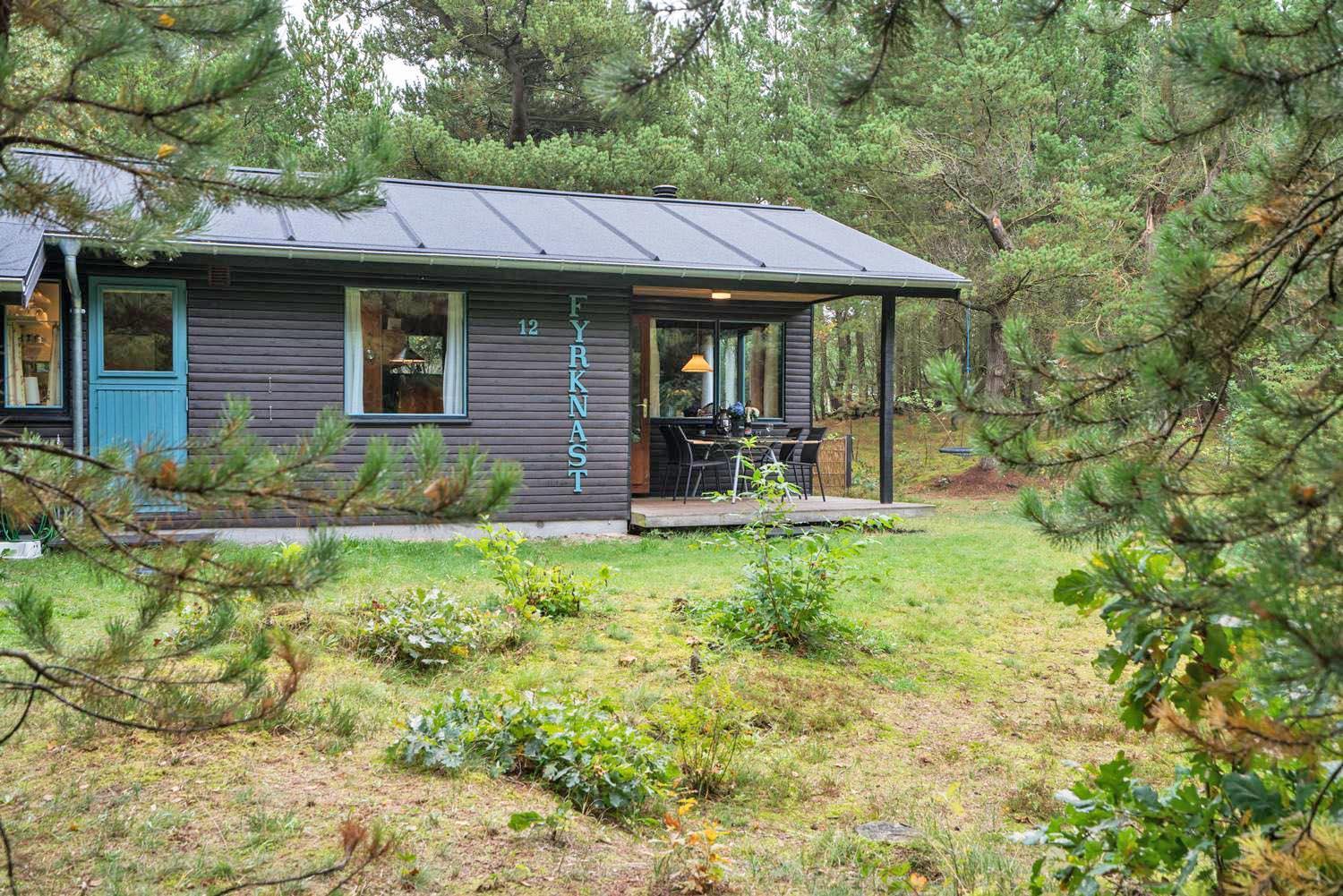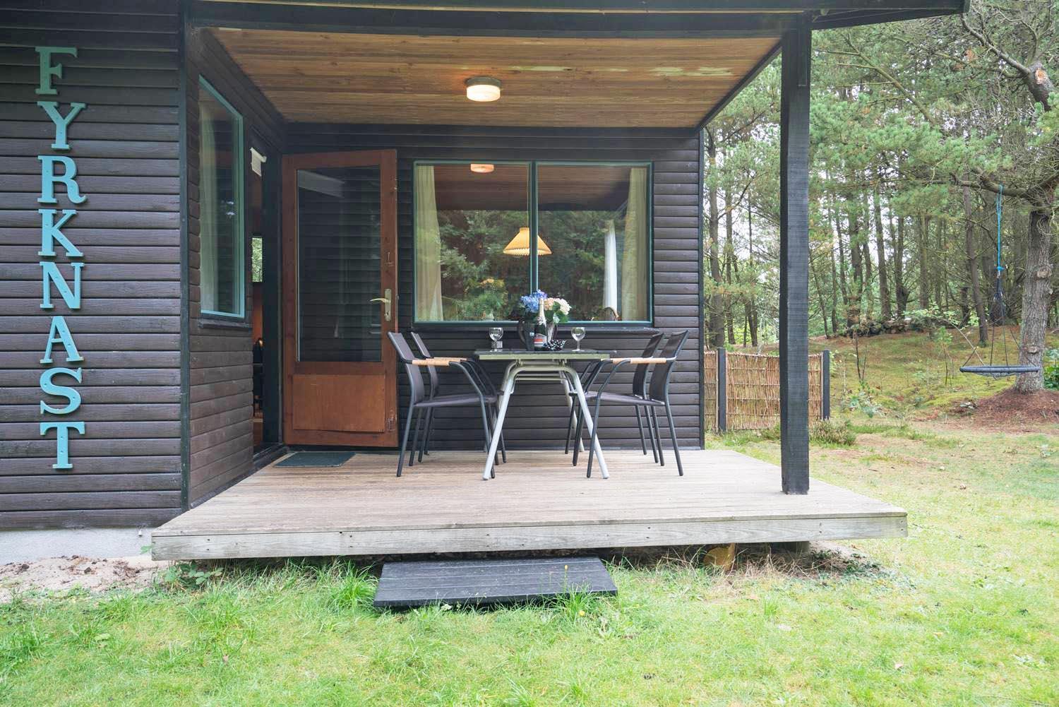 Hyggeligt og velholdt feriehus nær Blåbjerg Plantage med stor skovgrund og skøn overdækket terrasse.