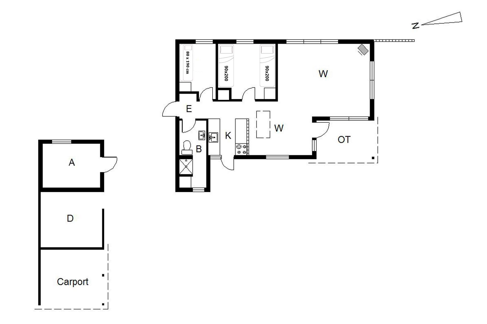 Sengestørrelser: 2 enkeltsenge 90 x 200 cm + 1 køjeseng 80 x 190 cm.