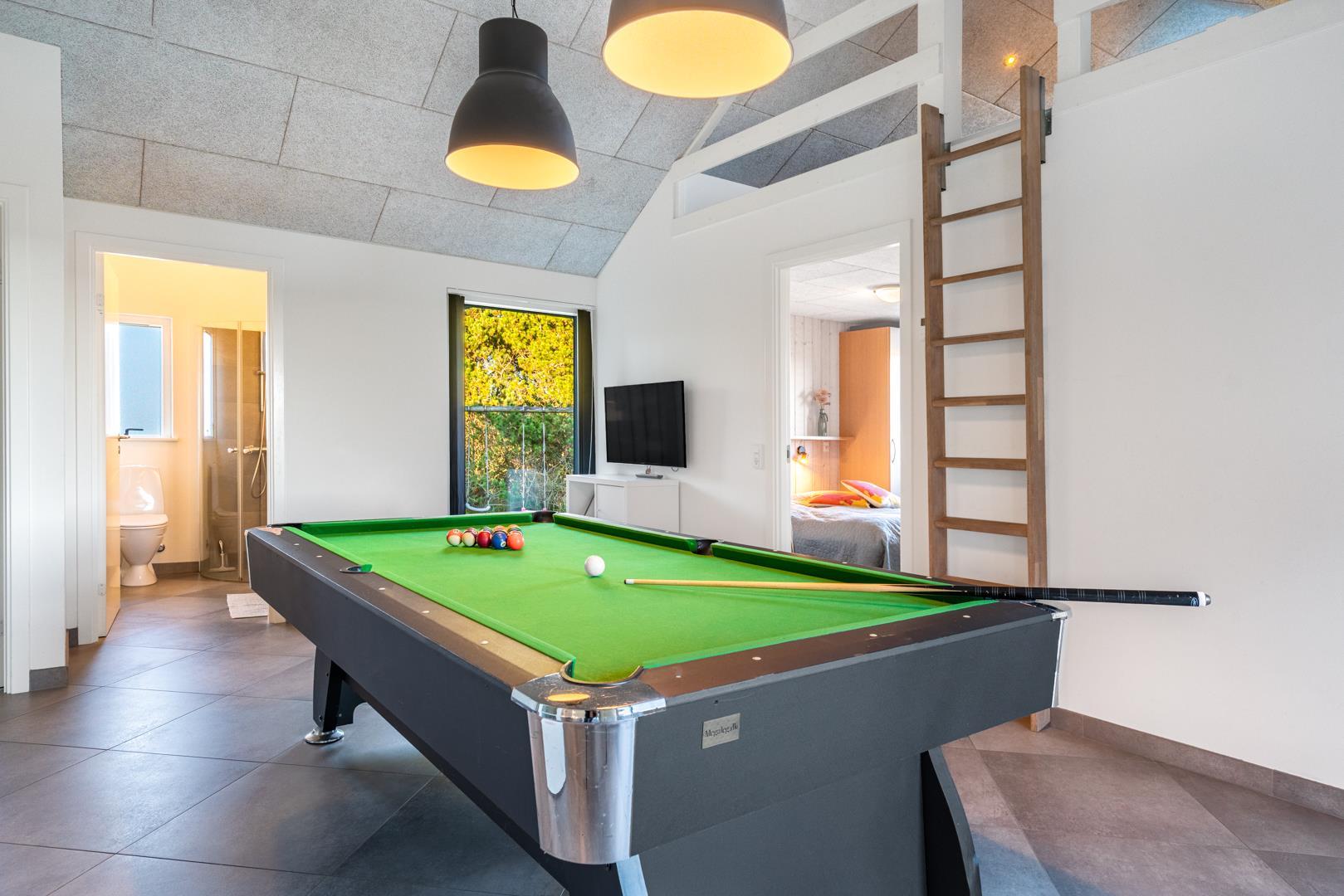 I aktivitetsrummet kan I udfordre hinanden i billard eller bordtennis – her er ingen risiko for at kede sig. Udenfor venter en skøn terrasse med overdækning og læ, så I kan nyde maden i det fri, uanset vejret. Den er desuden helt lukket, hvilket gør huset ideelt for gæster med hund.