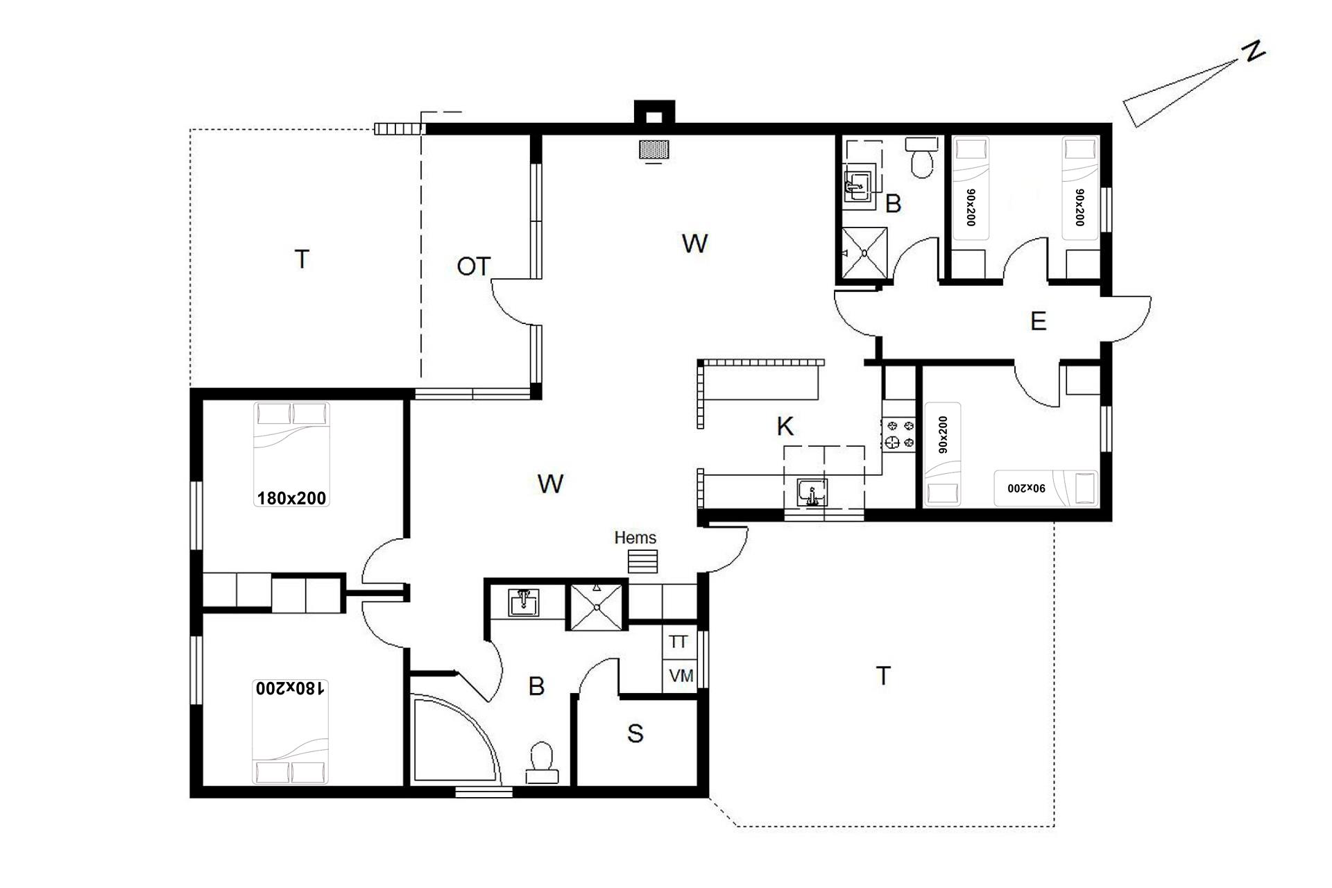 Sengestørrelse: 2 dobbeltsenge 180 x 200 cm + 4 enkeltsenge 90 x 200 cm.