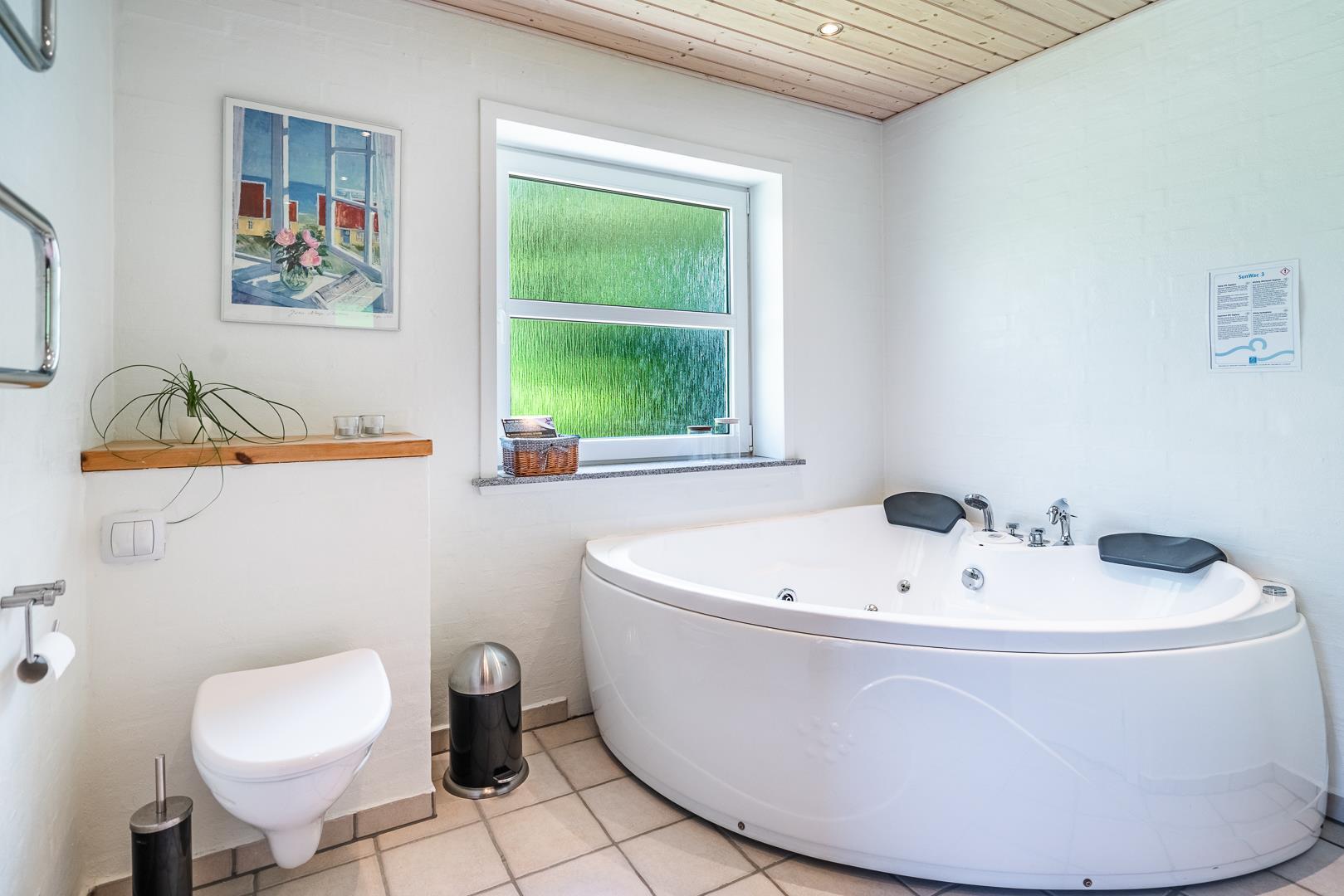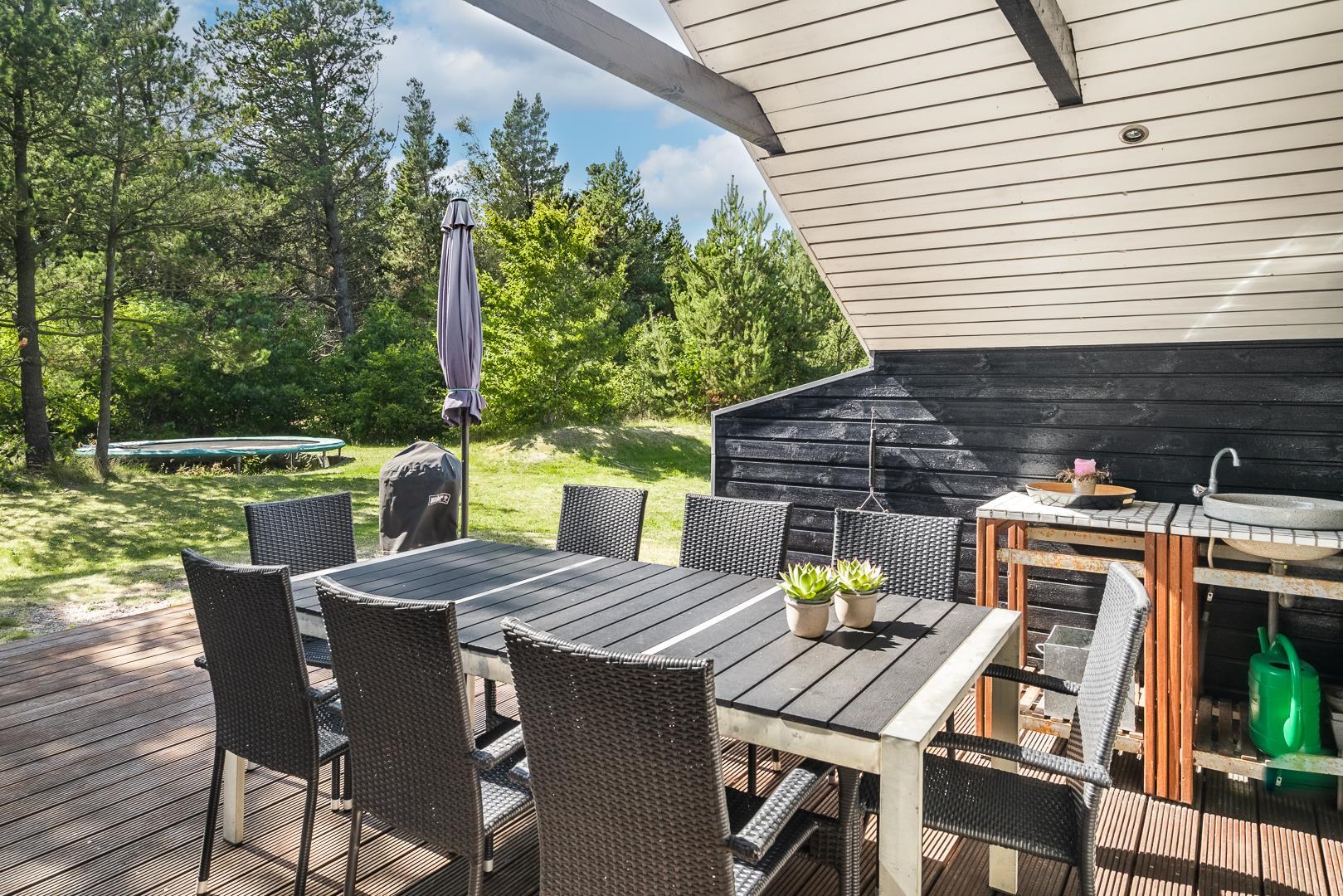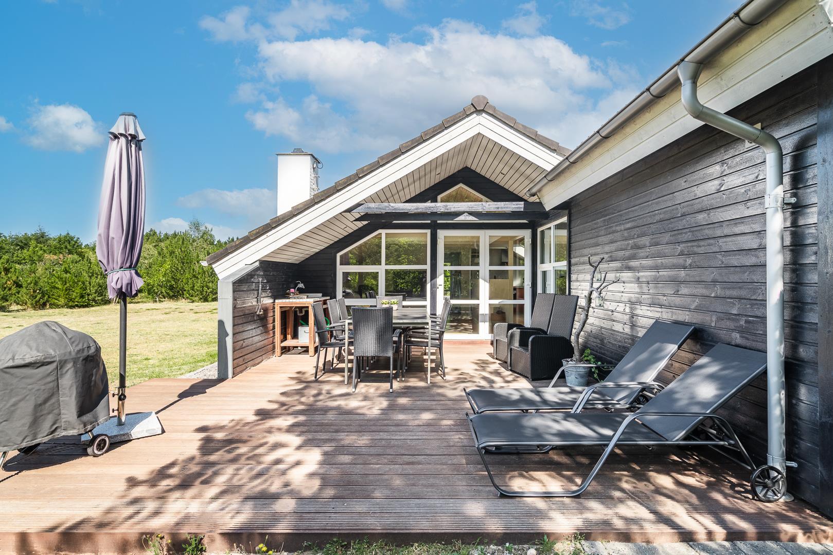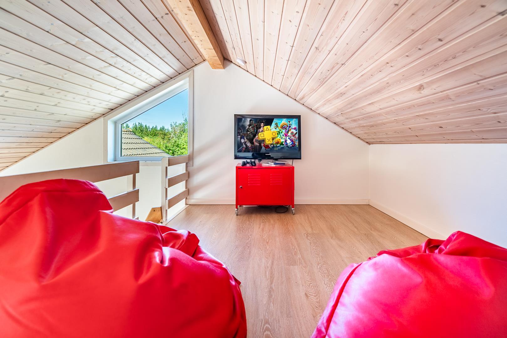 Der er naturligvis også noget for de voksne i huset, som er løbende moderniseret. Det ene badeværelse er et rigtigt wellness-rum med både spabad og sauna, så der er lagt op til råhygge, når de små er lagt i seng om aftenen. Huset er i det hele taget veludstyret lige fra det flotte køkken med ovenlys til de skønne træterrasser, der nærmest kalder på grillmiddage og afslapning i solen.