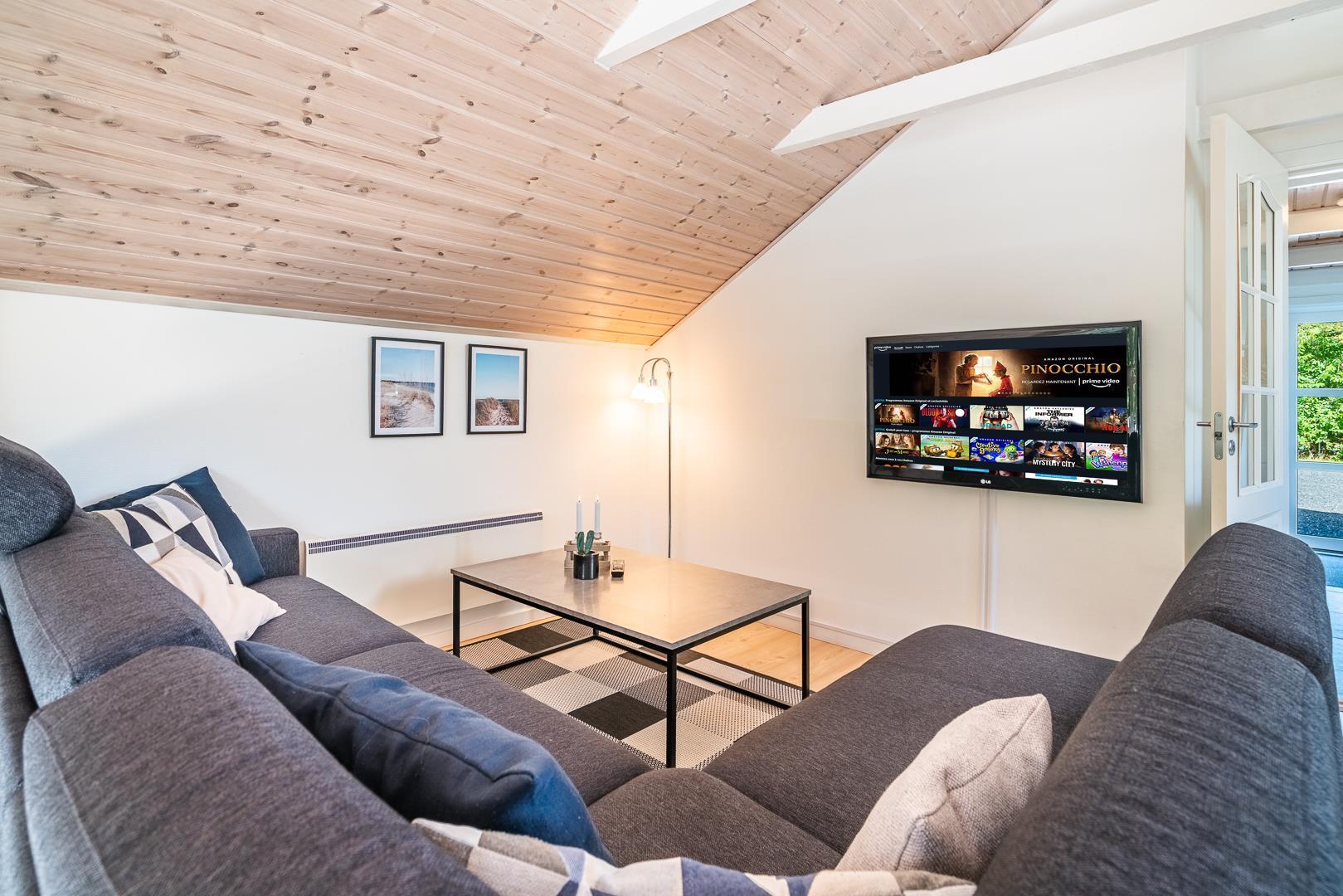 I vinterhalvåret kan I lægge et par knuder i brændeovnen og mærke, hvordan varmen spredes, mens roen sænker sig. Så er det tid til sofahygge med slikskål og underholdning fra en af de 60 kanaler, der er at finde på stuens tv.