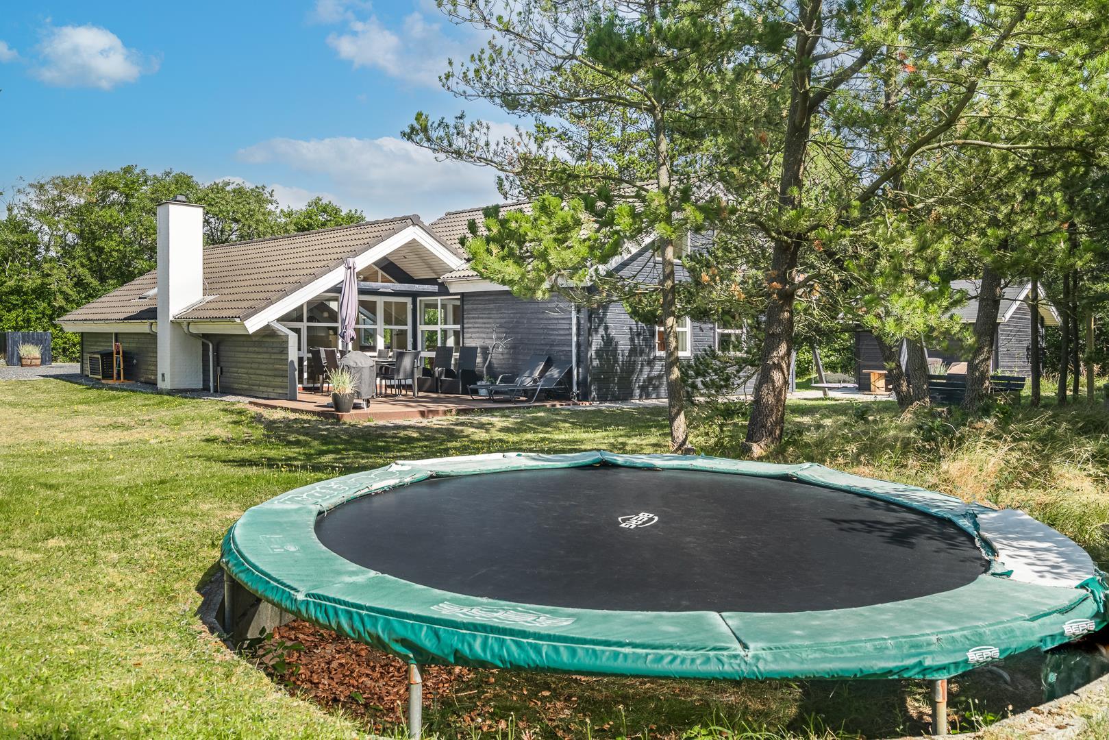 Hvem kan lave det vildeste trampolinspring? Sjove lege er der rig mulighed for, hvis I booker Kærvej 22 til jeres næste familieferie. Huset ligger i Henne Strand Øst, og har plads til 8 overnattende gæster.