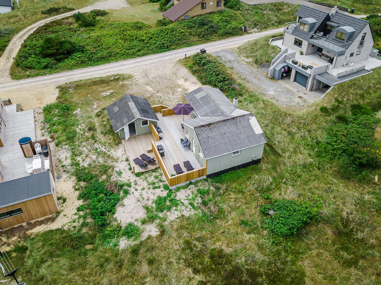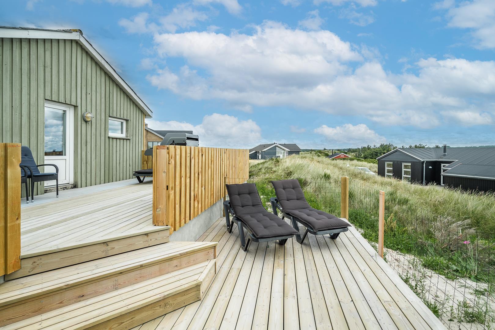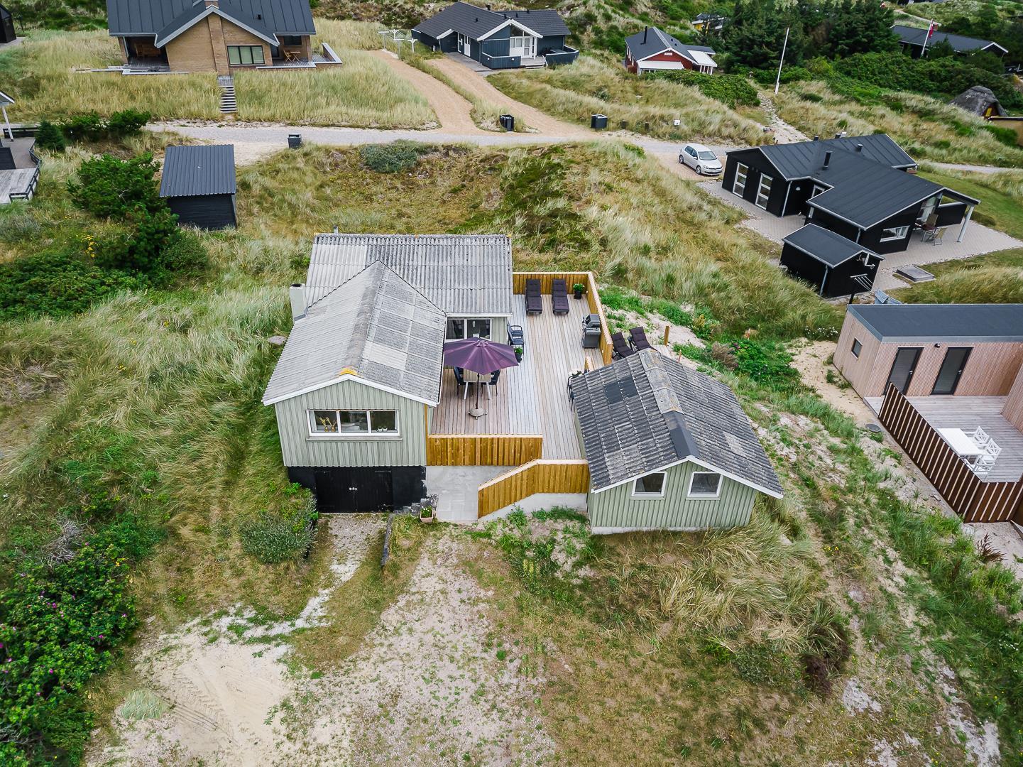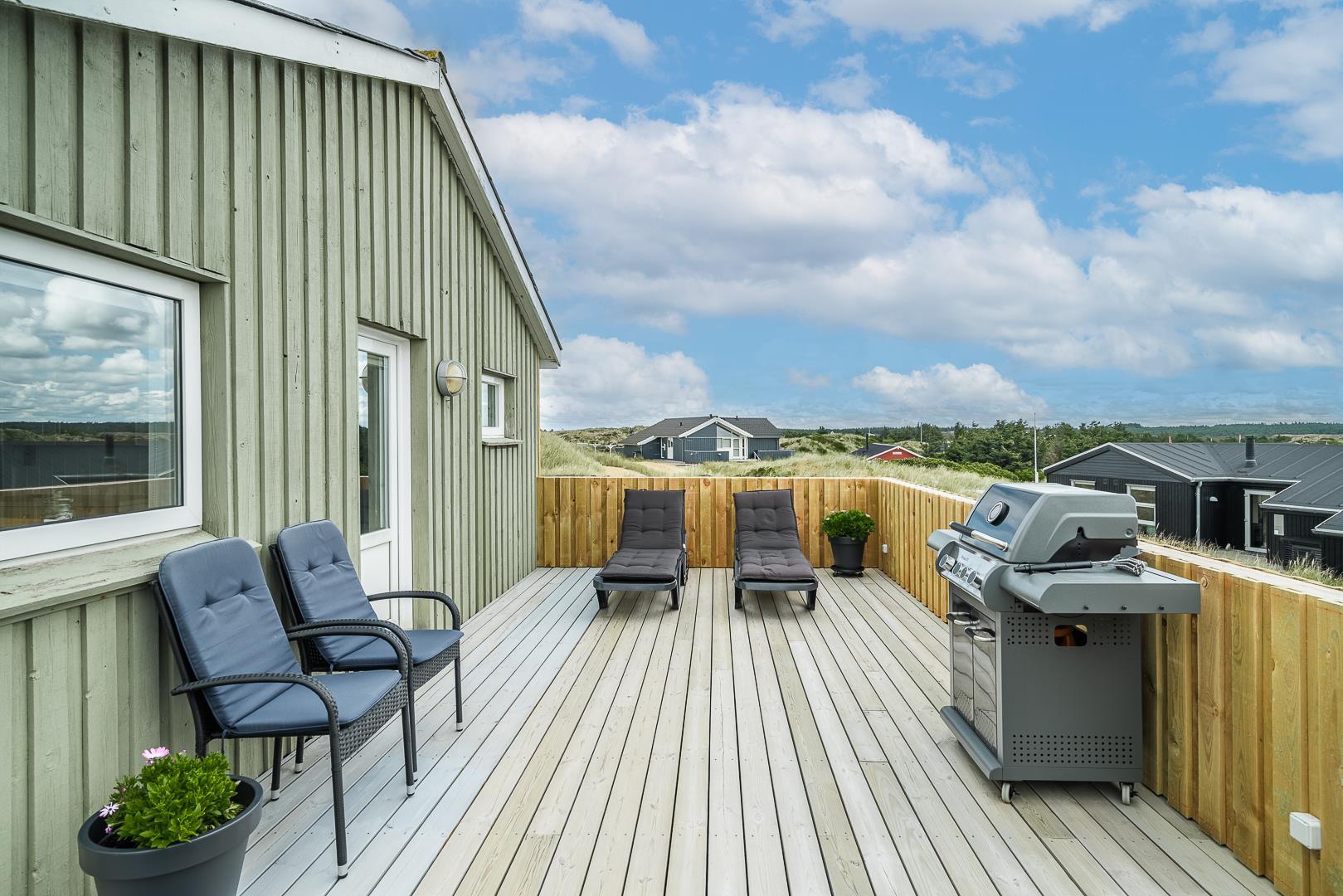 På en pragtfuld klitgrund tæt ved vandet og med udsigt over heden samt Blåbjerg Plantage, ligger dette dejlige og hyggelige feriehus. Kombineret køkken-og spiseafdeling med brændeovn. Fra feriehusets terrasser er der en flot udsigt over området og heden. Soverummene er små.