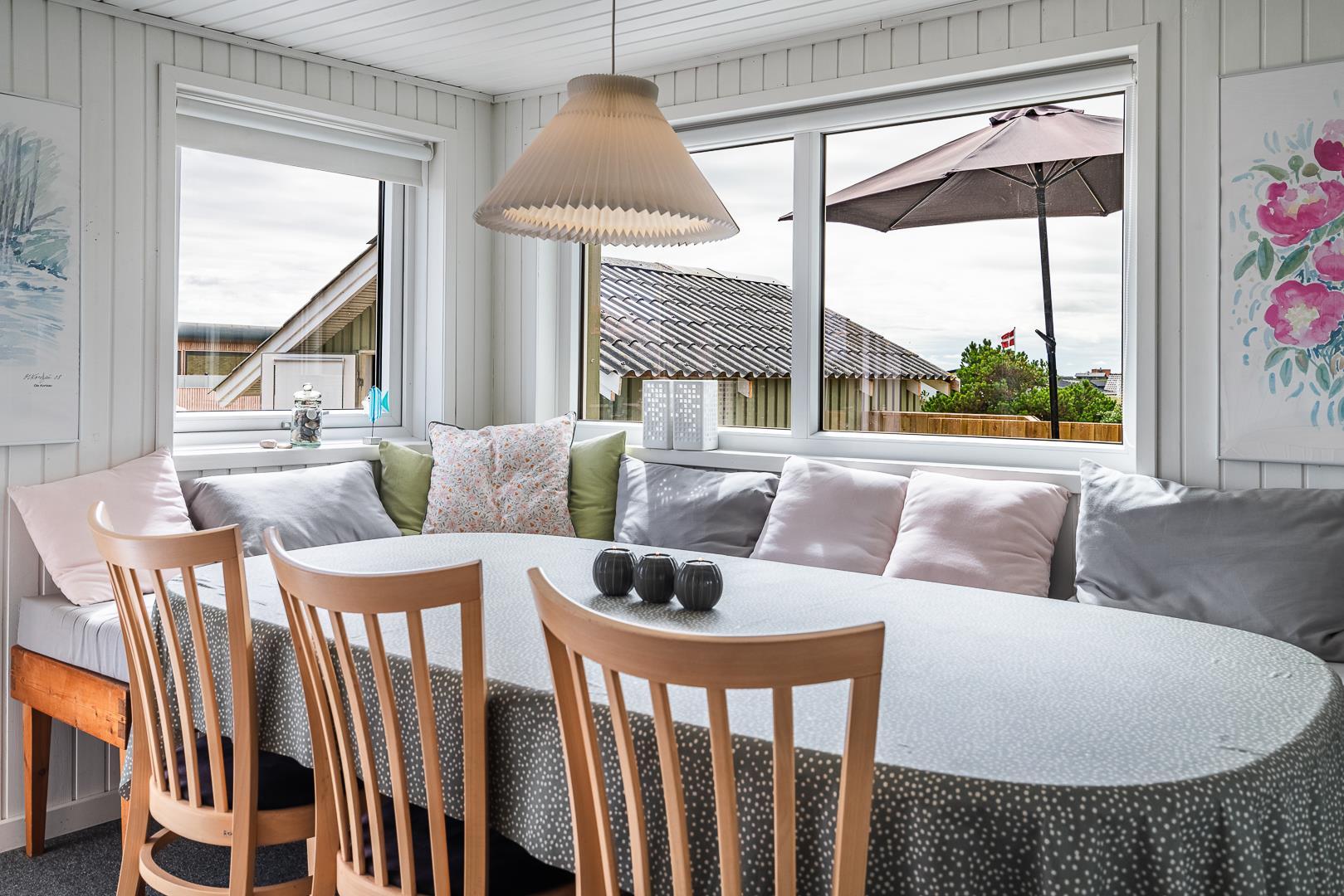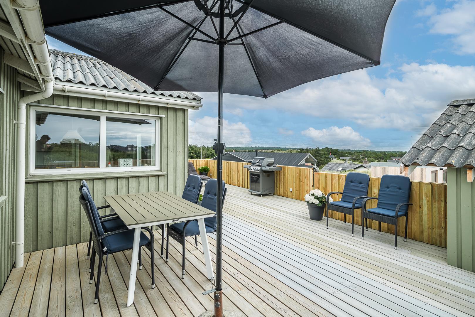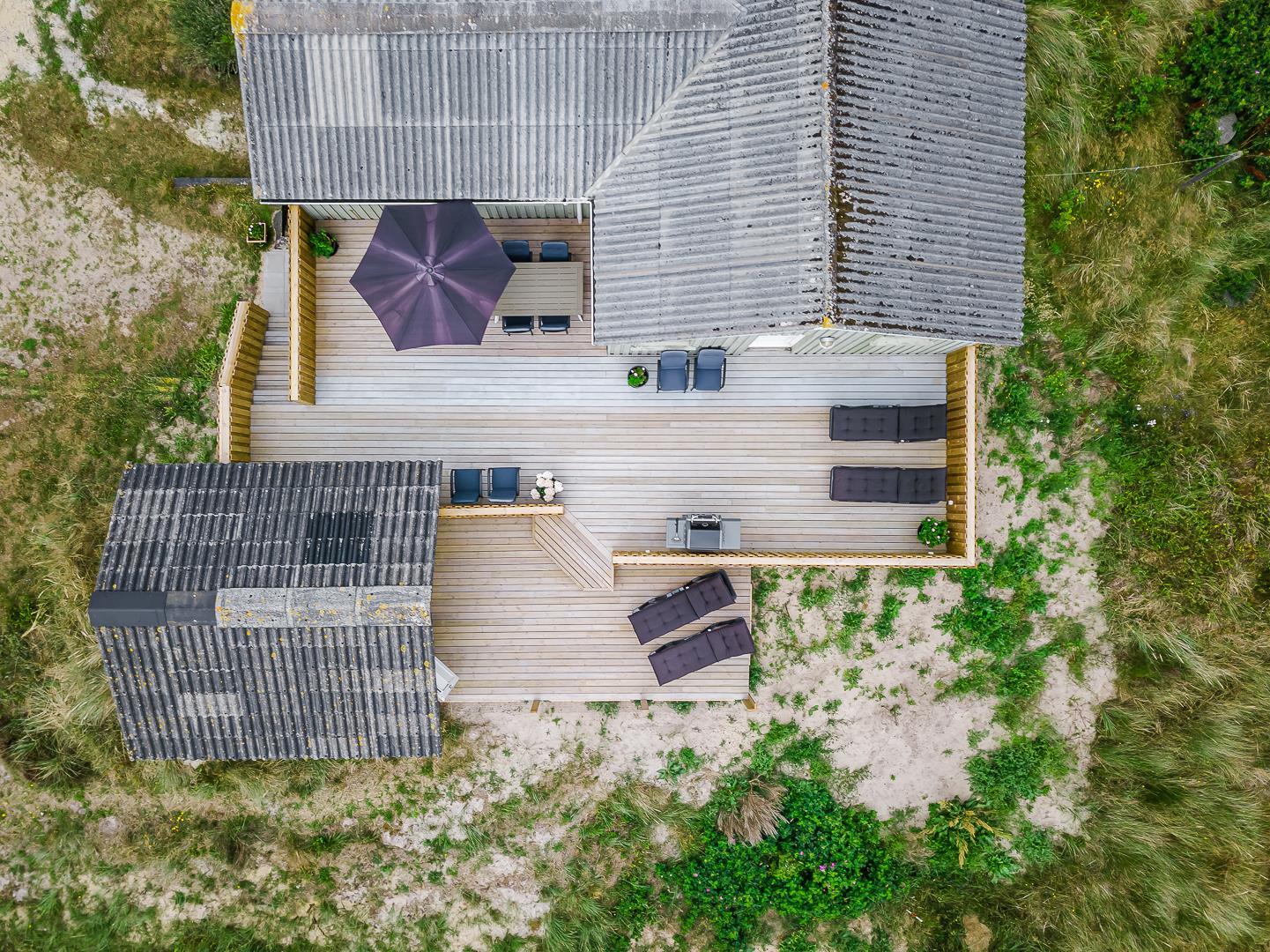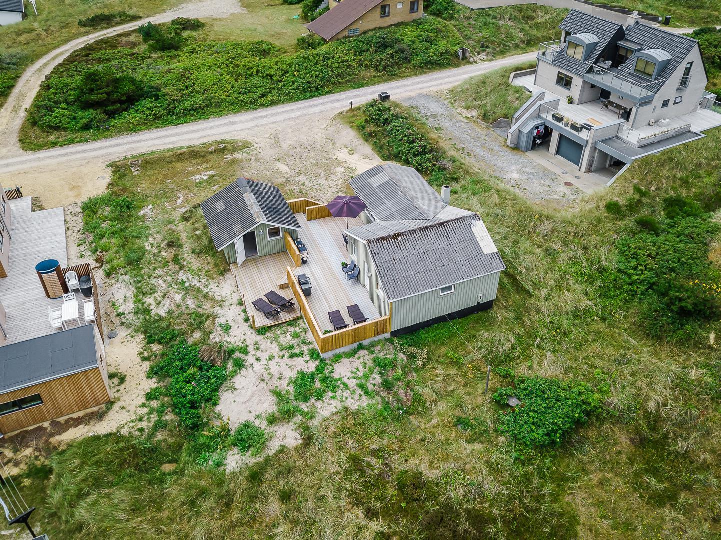På en pragtfuld klitgrund tæt ved vandet og med udsigt over heden samt Blåbjerg Plantage, ligger dette dejlige og hyggelige feriehus. Kombineret køkken-og spiseafdeling med brændeovn. Fra feriehusets terrasser er der en flot udsigt over området og heden. Soverummene er små.