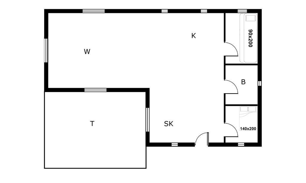Sengestørrelser: 1 dobbeltseng 140 x 200 cm + 1 køjeseng 90 x 200 cm.