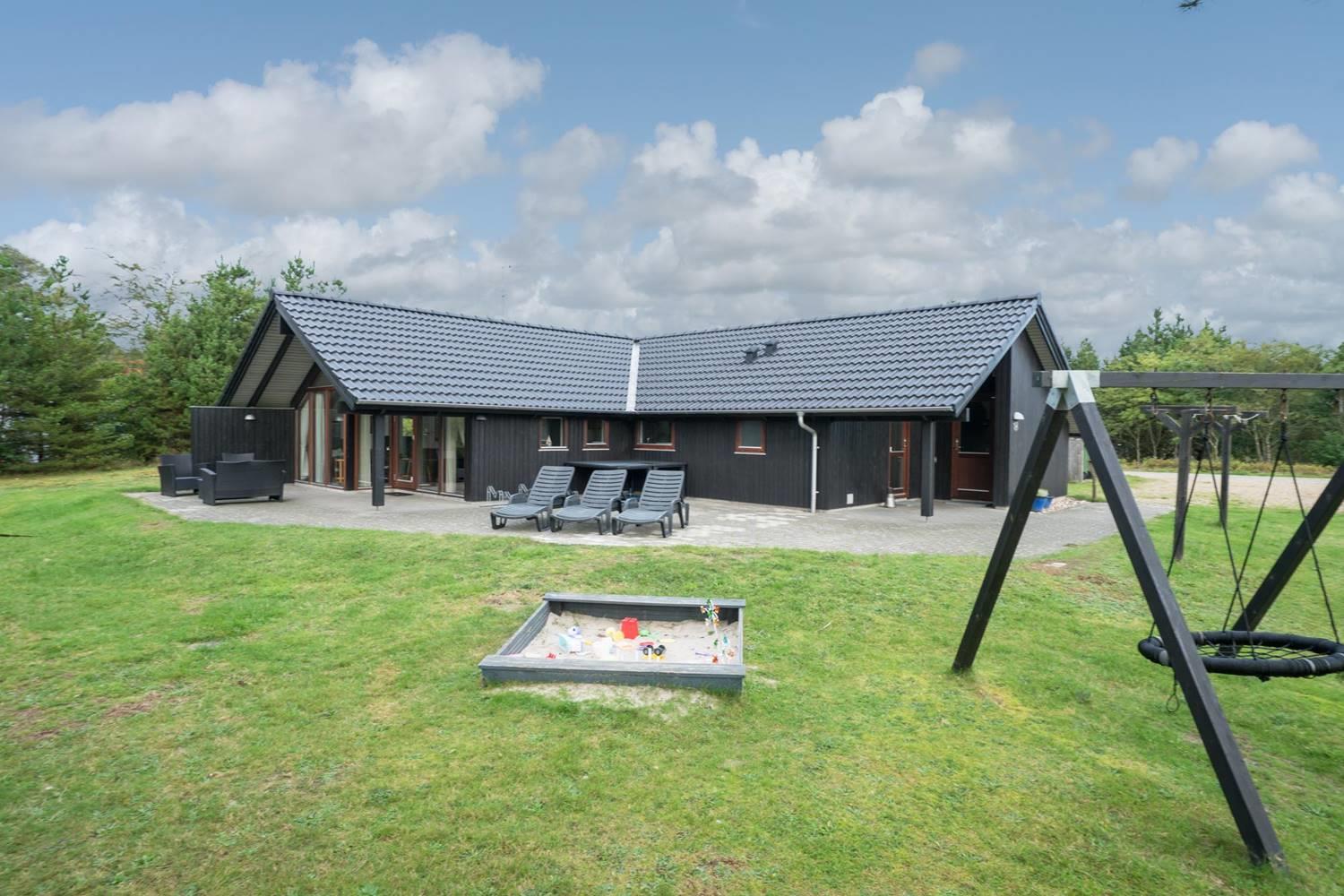 Huset har en stor, delvis overdækket og ugeneret terrasse, perfekt til solbadning, grillaftener og afslapning i rolige omgivelser. For de yngste gæster er der sørget for masser af sjov med legeborg, gynge og sandkasse på grunden.