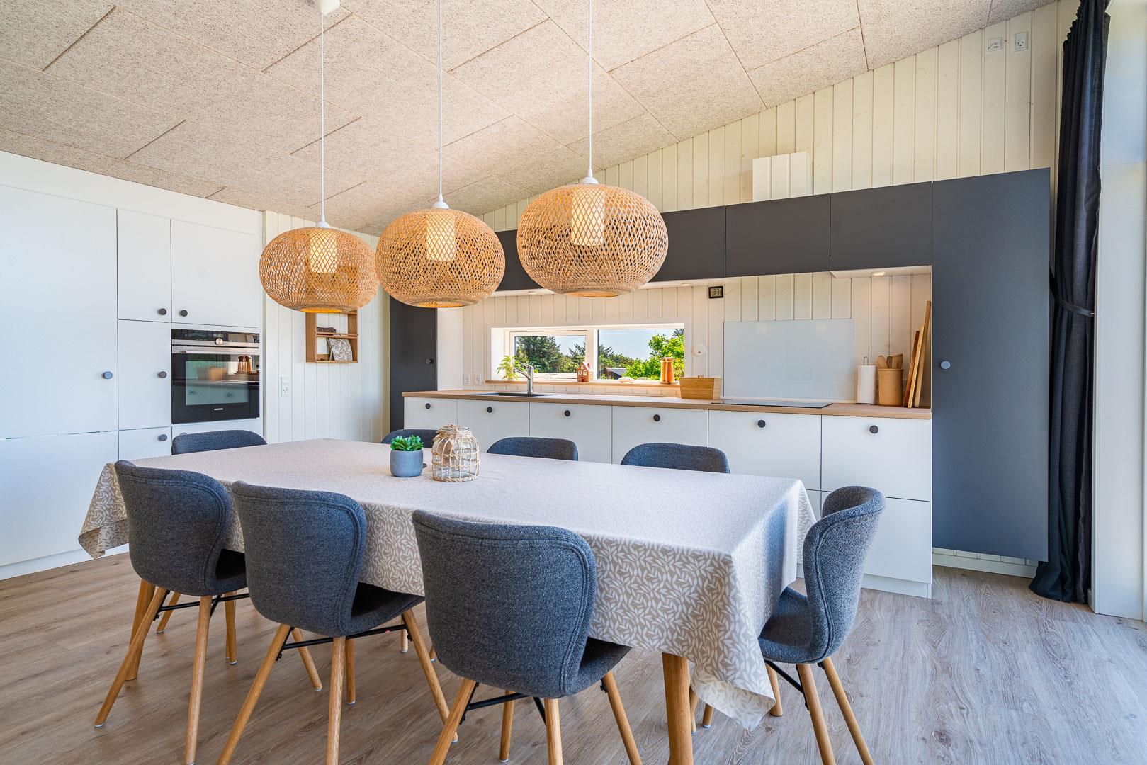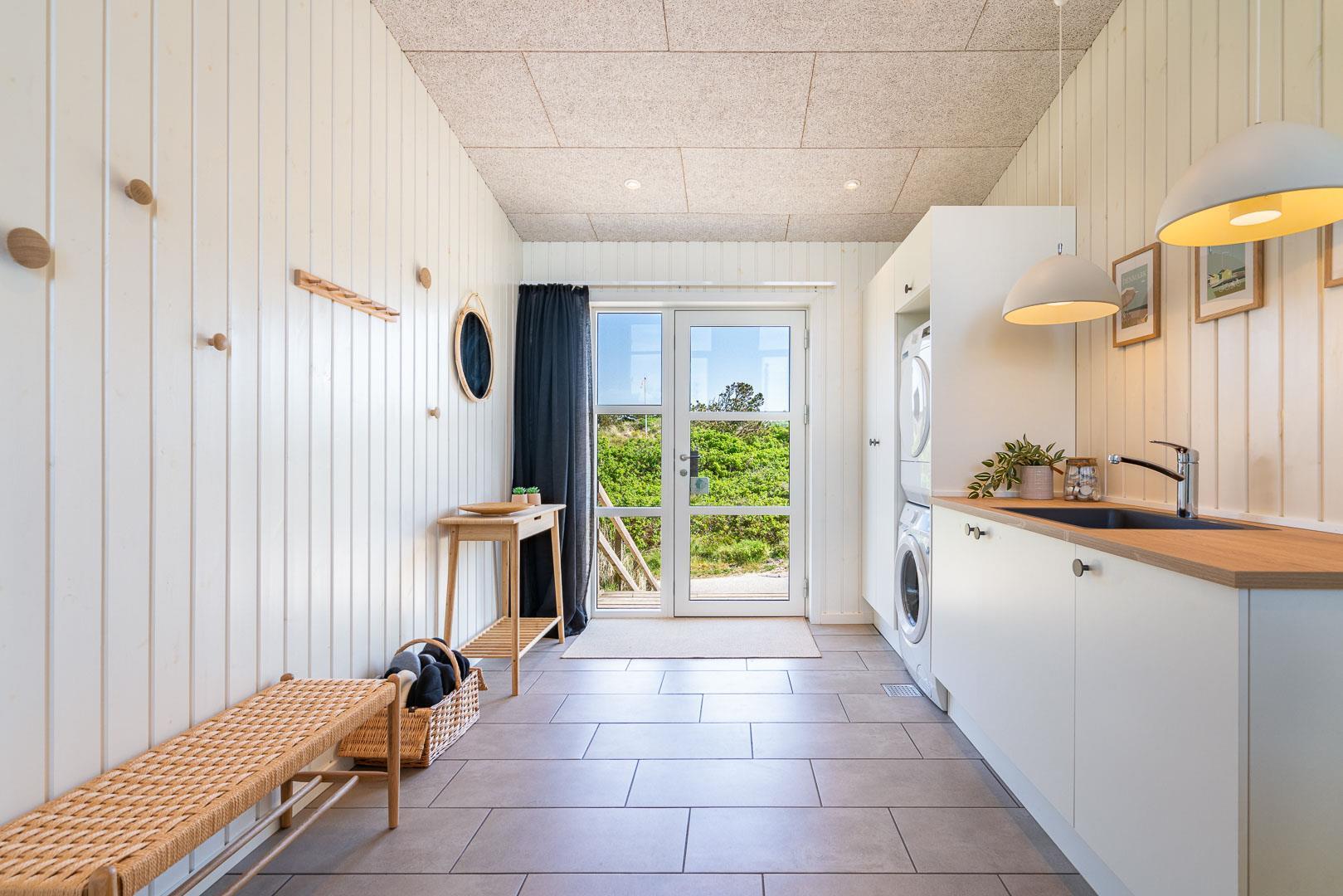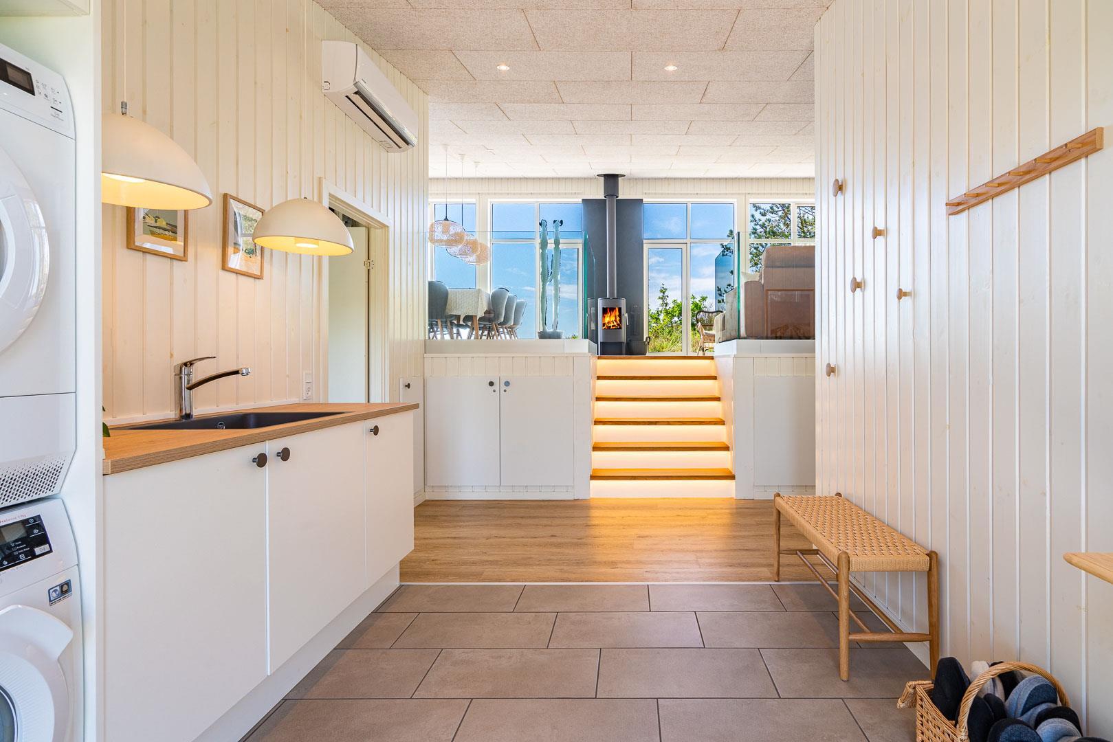 En varm sommerferiedag er ikke svær at forestille sig: Mix en lækker cocktail i det lækre køkken - husk isterninger fra ismaskinen i køleskabet - og træd så ud på det fantastiske terrassedæk, hvor I kan nyde stilheden, solen, der kysser jeres kinder og den iskolde drink. Efterfølgende kan I gå en tur ned til stranden, hvor børn og voksne kan samle smukke skaller til at kreere et smukt kunstværk eller sende en flaskepost af sted til fjerne lande.