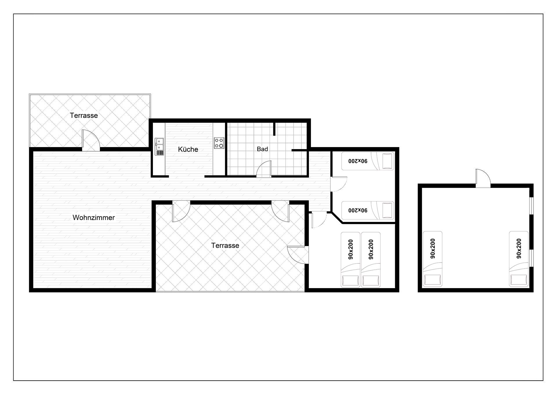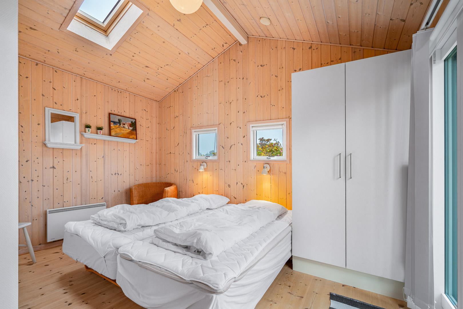 Sengestørrelse: 1 dobbeltseng med 2 madrasser 90 x 200 cm + 4 enkeltsenge 90 x 200 cm.