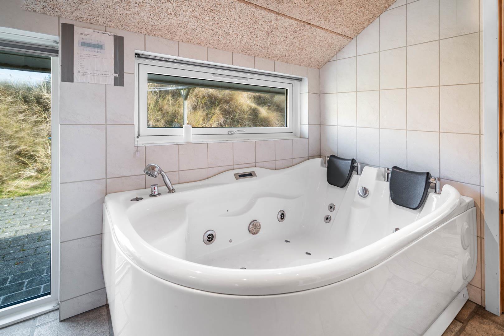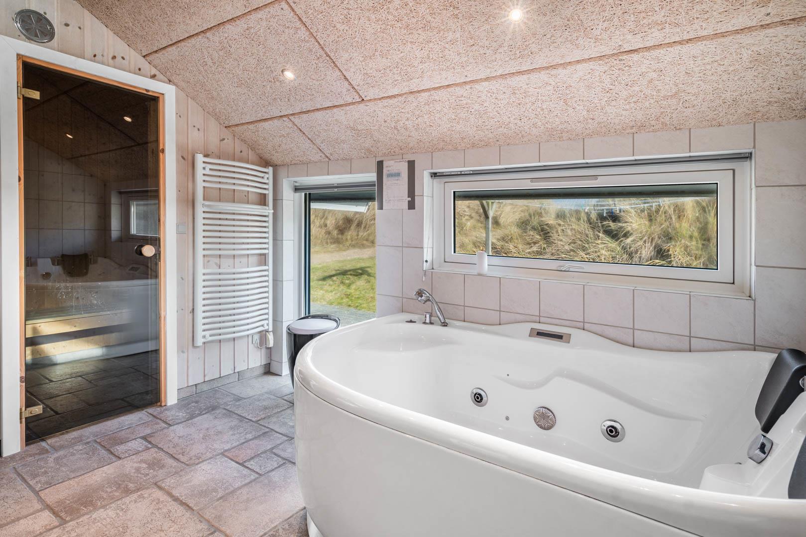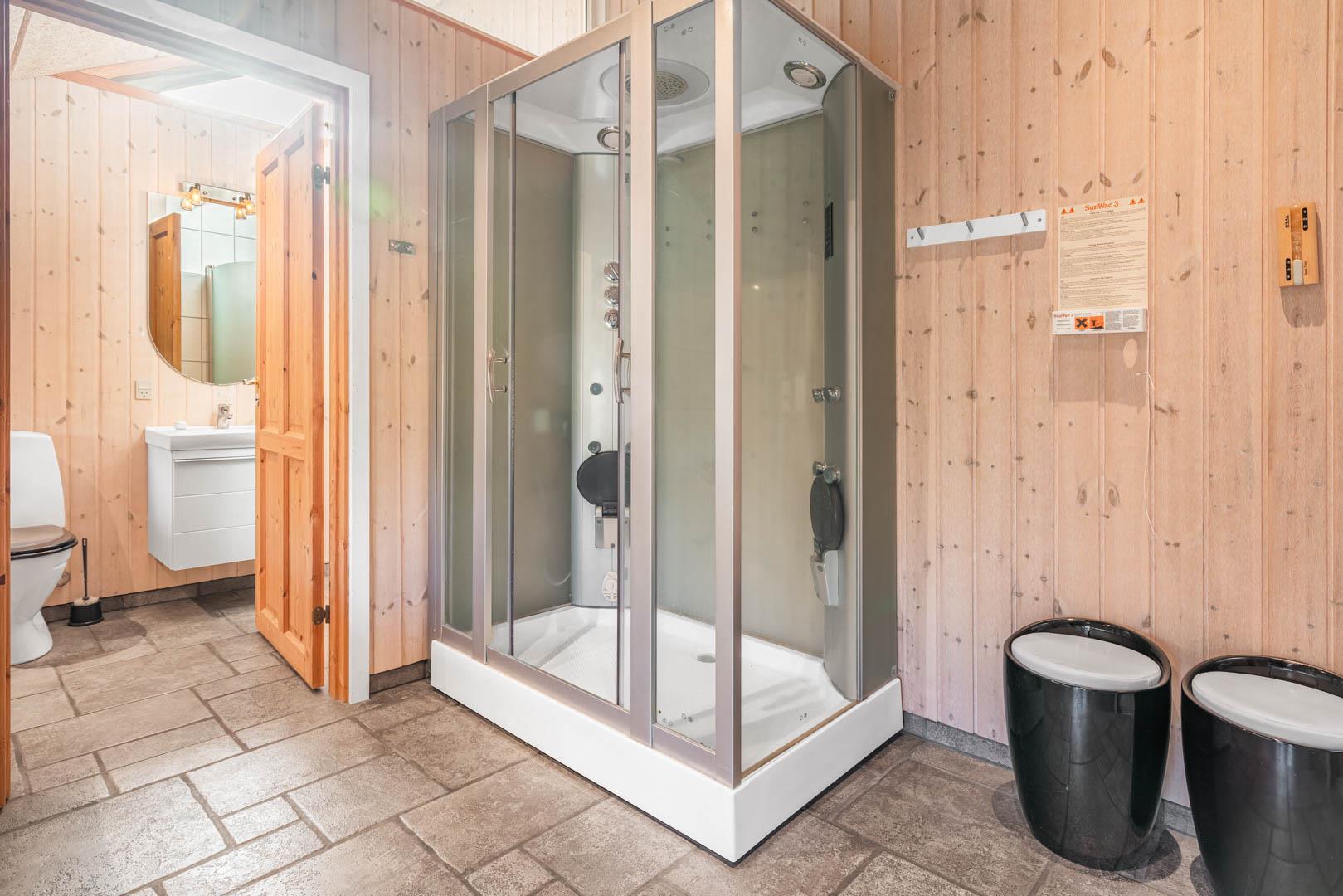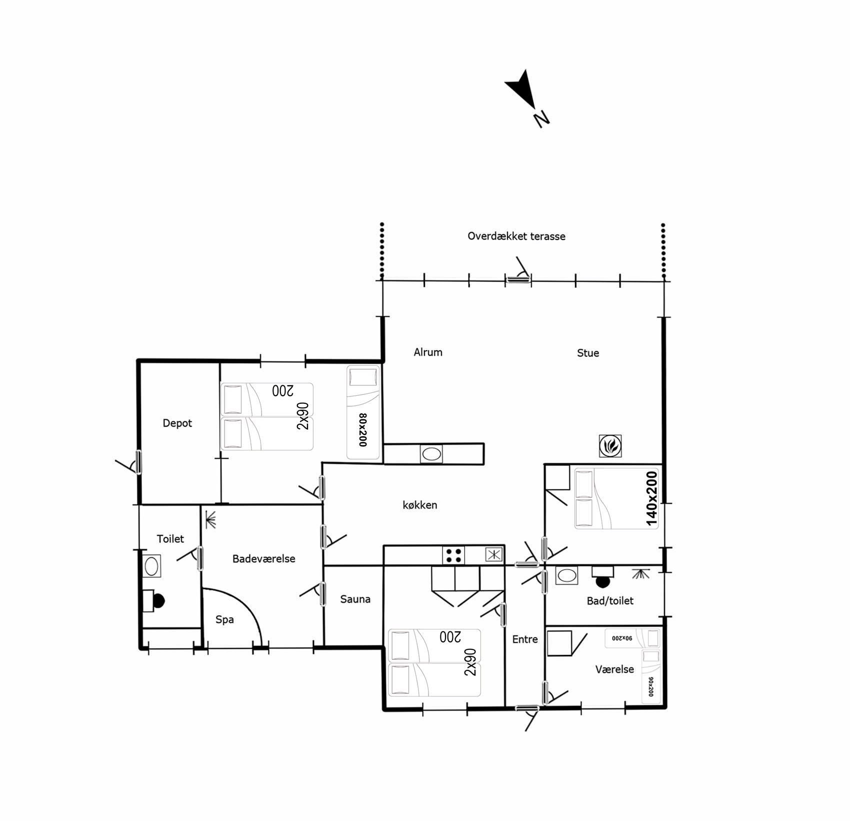 Sommerhuset er indrettet med 4 soverum, 2 badeværelser samt wellnessrum med spabad, sauna og bruse/dampkabine.