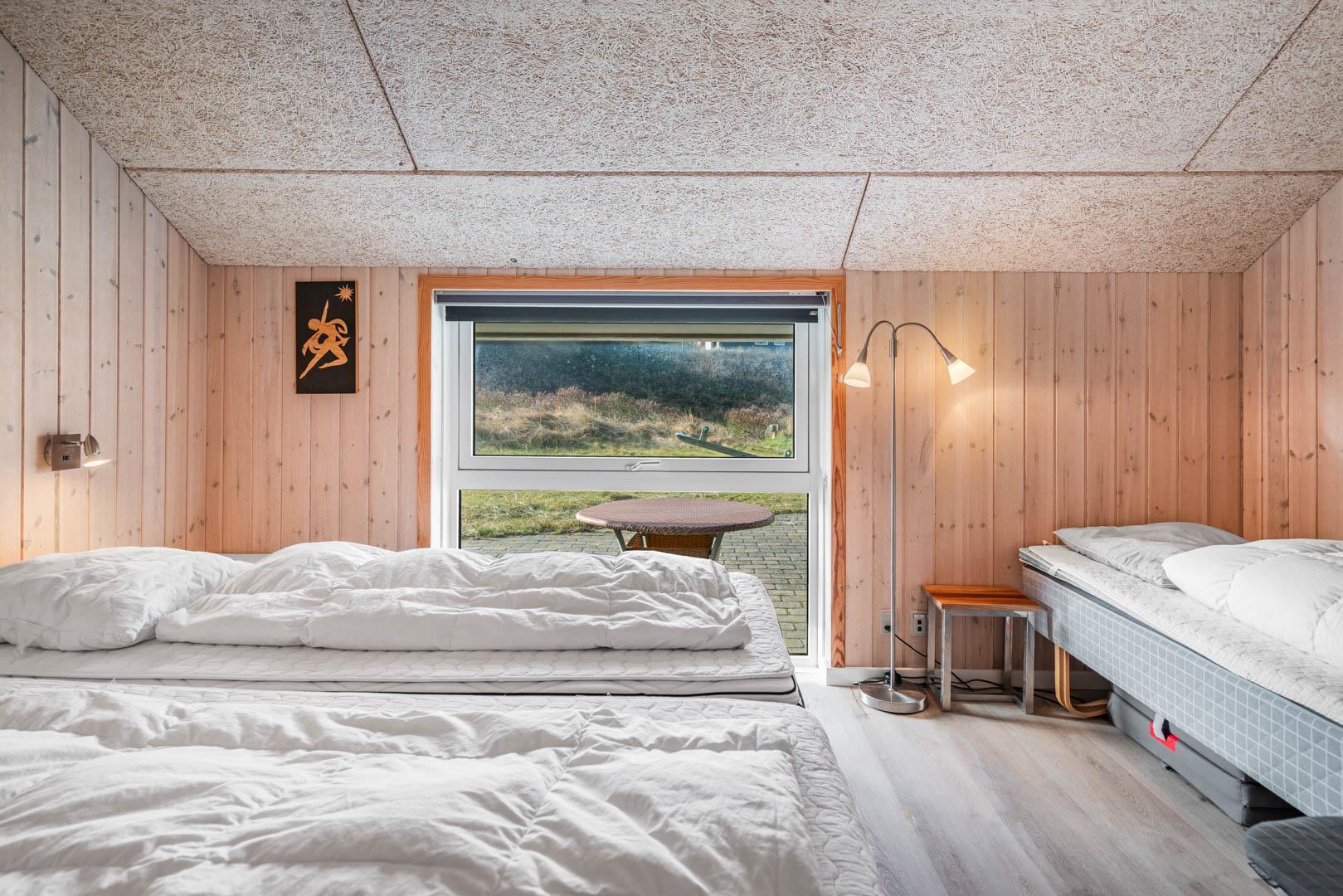 Sengestørrelse: 2 dobbeltsenge med 2 madrasser 90 x 200 cm + 2 enkeltsenge 90 x 200 cm + 1 dobbeltseng 140 x 200 cm + 1 enkeltseng 80 x 200 cm.