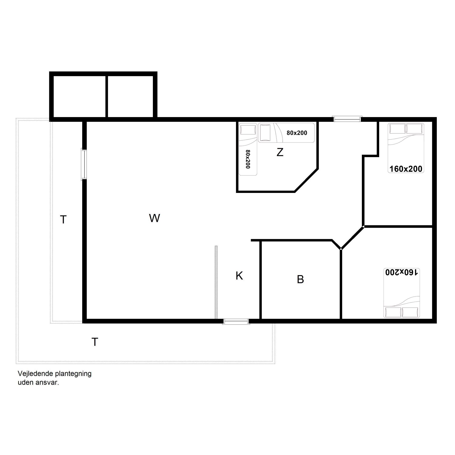 Sengestørrelse: 2 dobbeltsenge 160 x 200 cm + 2 enkeltsenge 80 x 200 cm