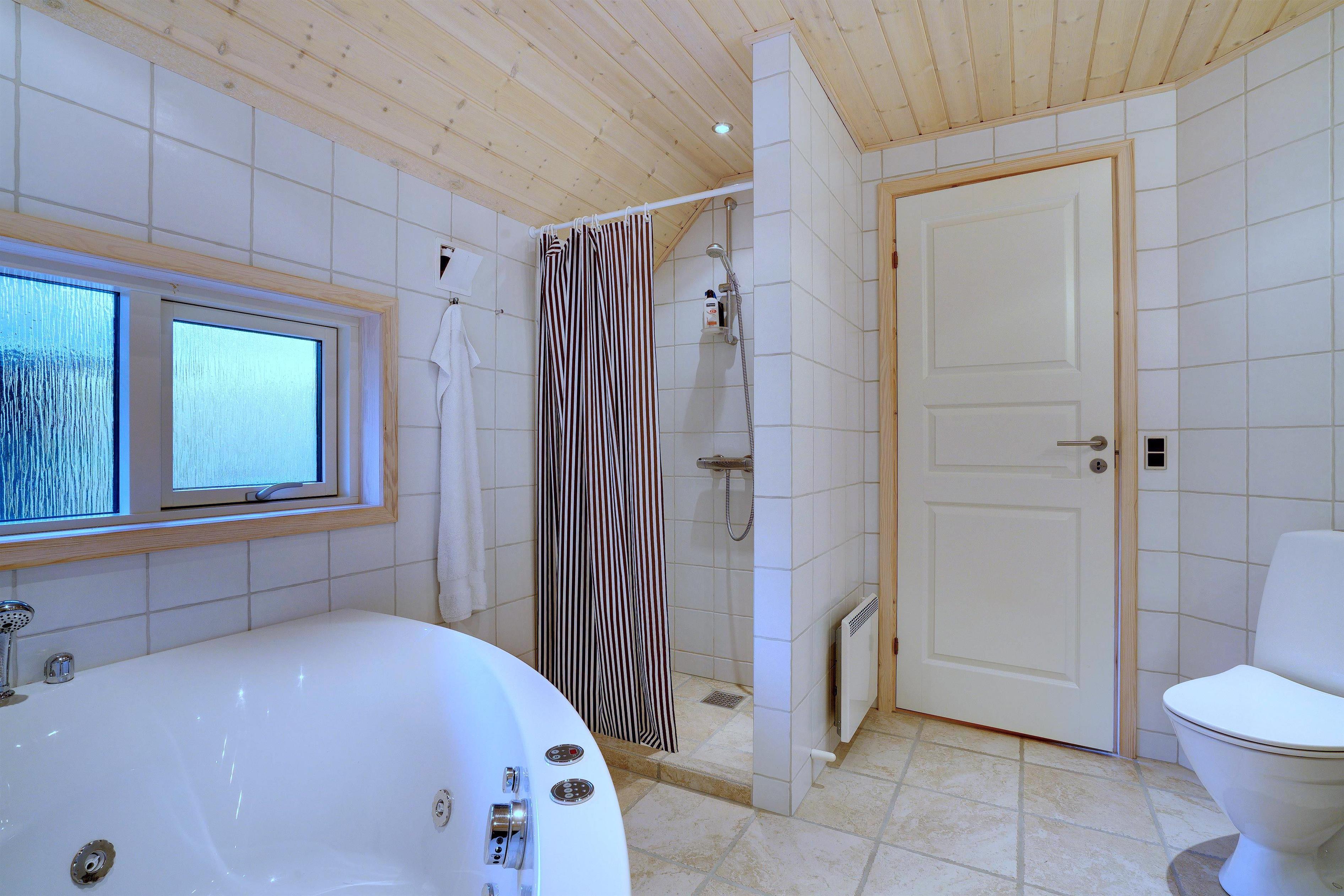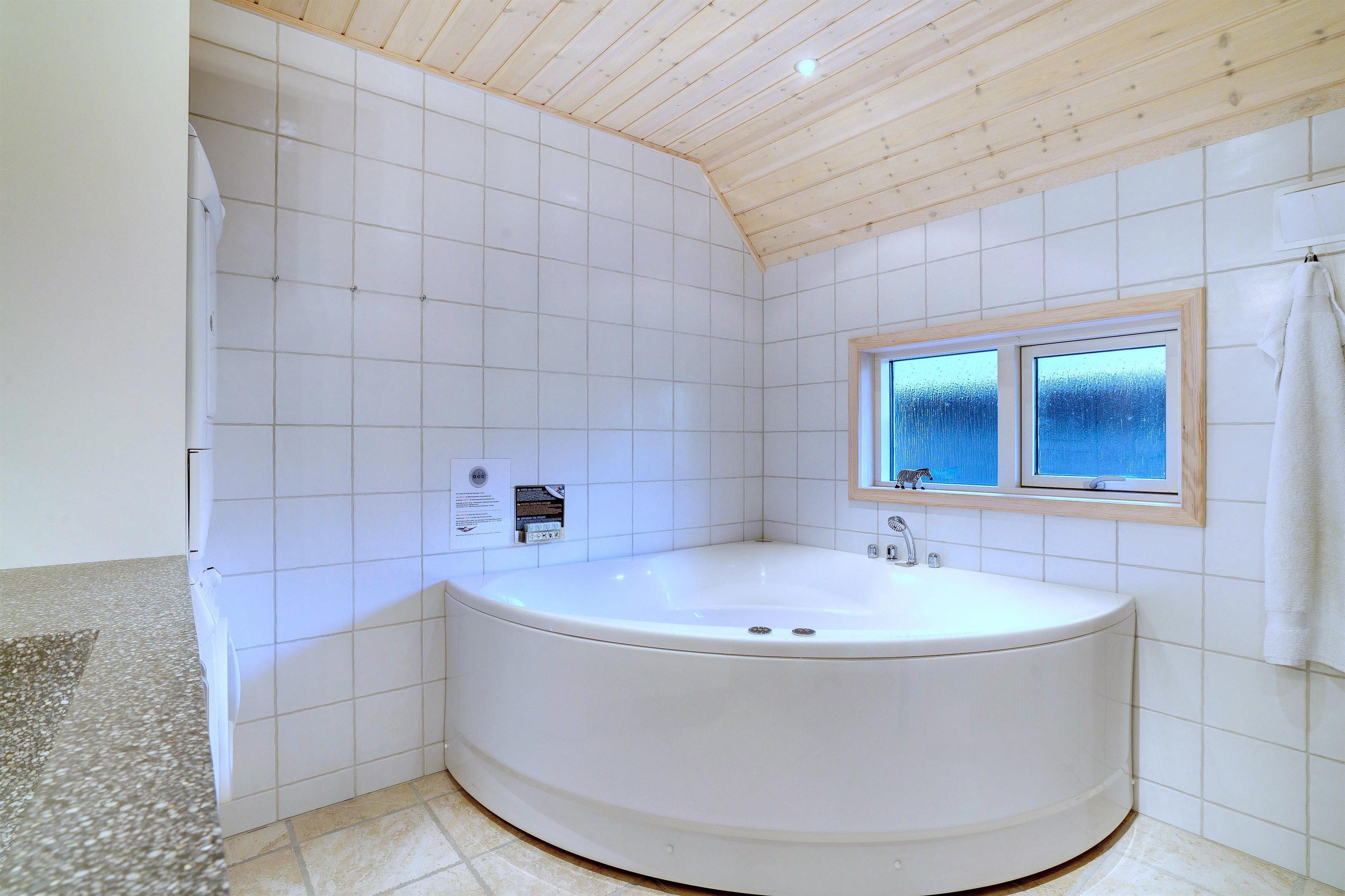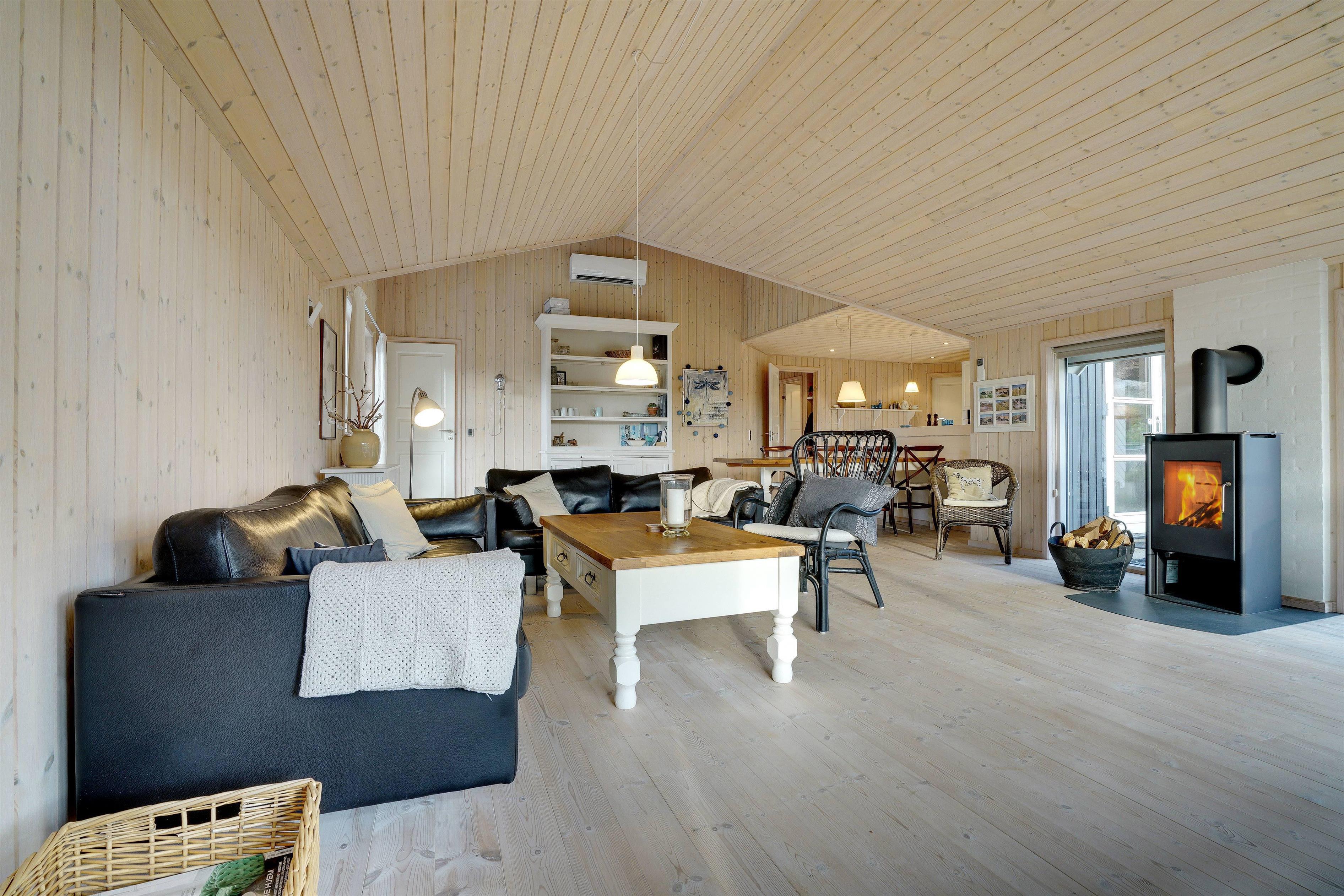 Husets store hyggelige stue har loft til kip og store vinduespartier, som giver godt lysindfald i rummet. Fra husets stue er der udgang til husets skønne afskærmede solterrasse. Køkkenet er i åben forbindelse med stuen. De 3 rummelige soverum er alle udstyret med dobbeltsenge og god skabsplads. Stort badeværelse med spabad. Et skønt beliggende feriehus hvor rammerne er skabt for en god ferie ved Henne Strand.