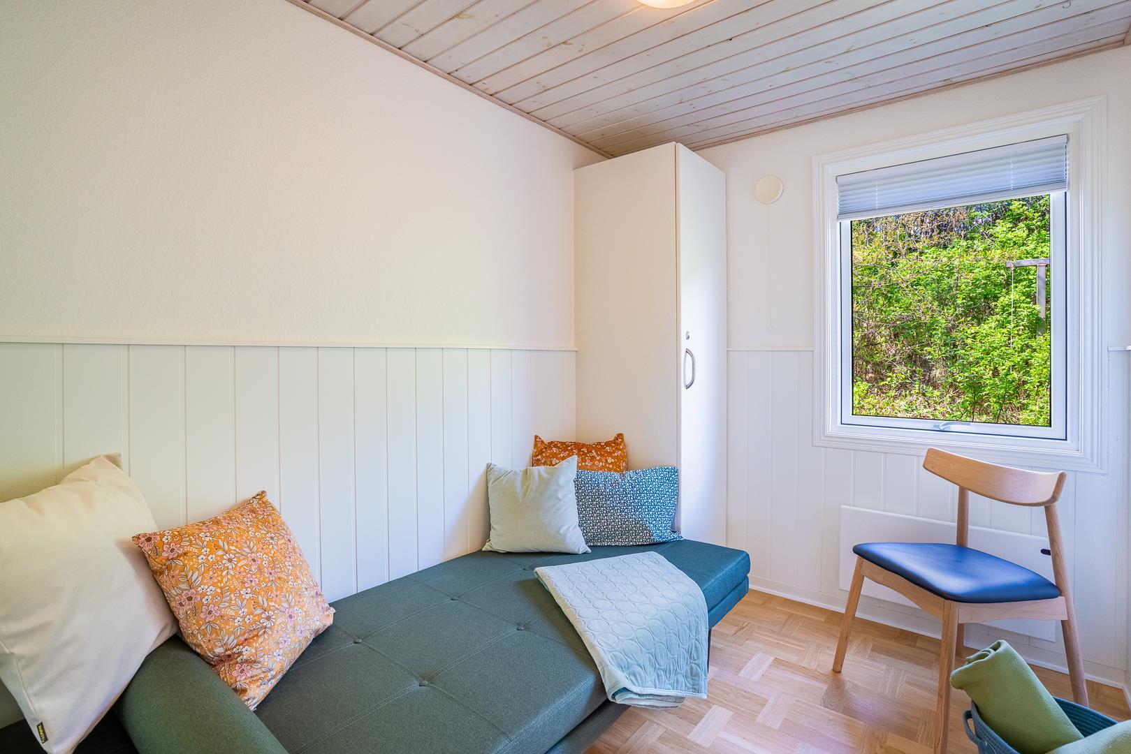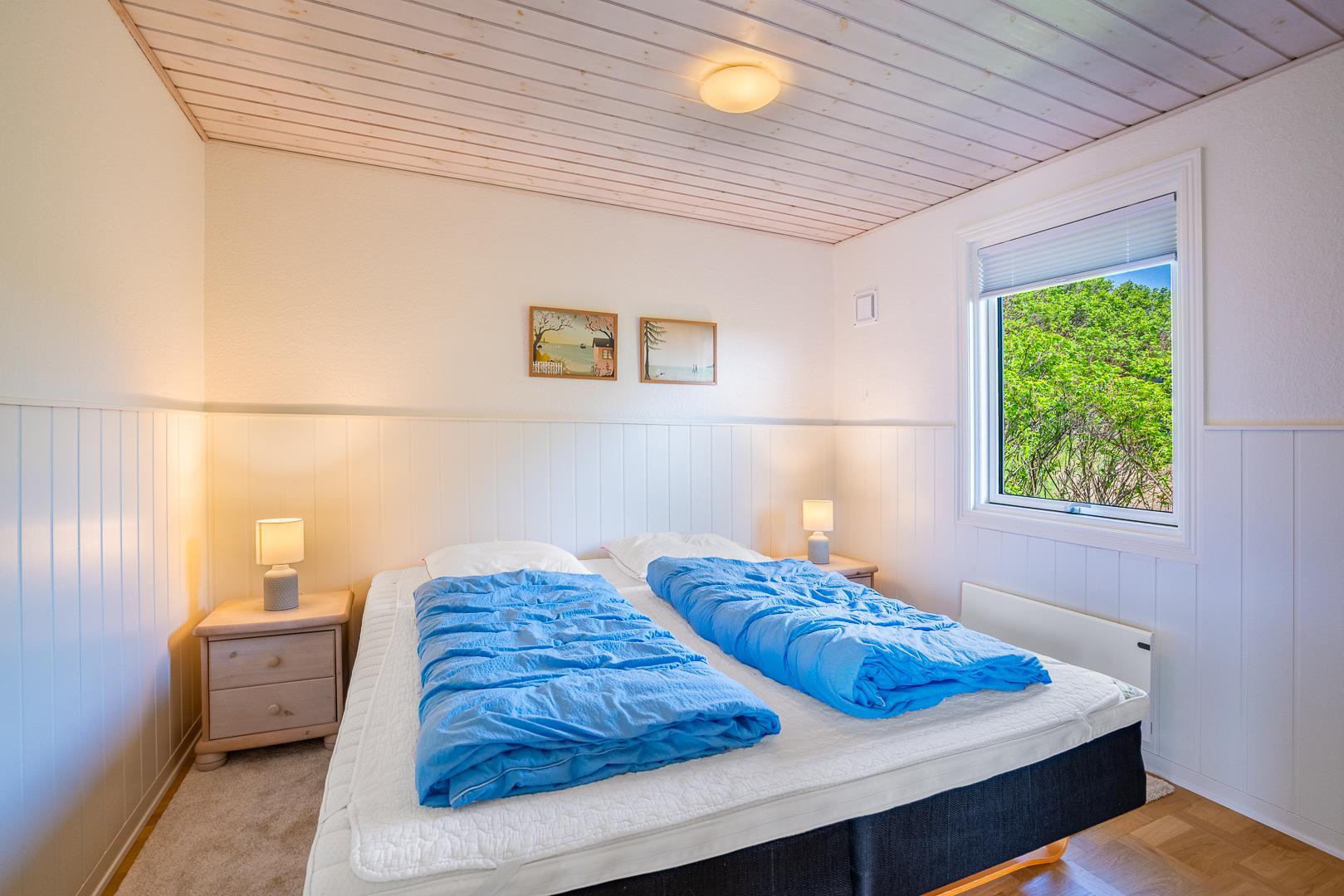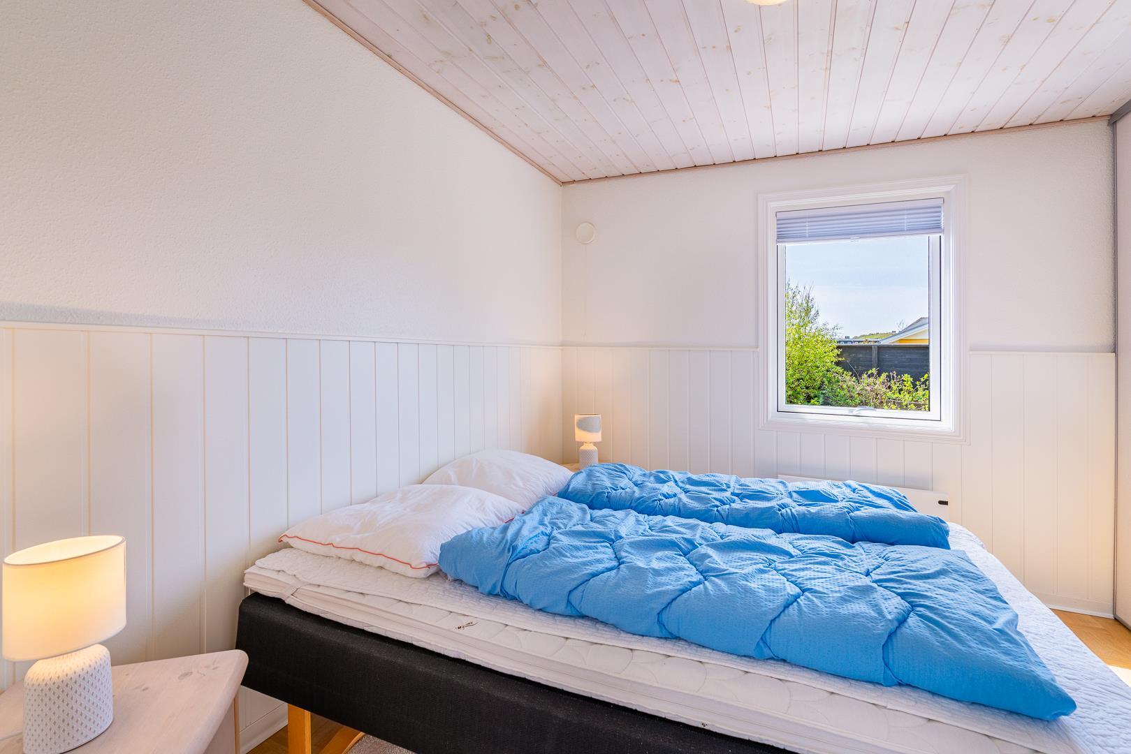Huset rummer tre soveværelser – to med dobbeltsenge og et værelse med 1 daybed. Med plads til fire personer er sommerhuset velegnet til en lille familie eller et par, der ønsker lidt ekstra plads.