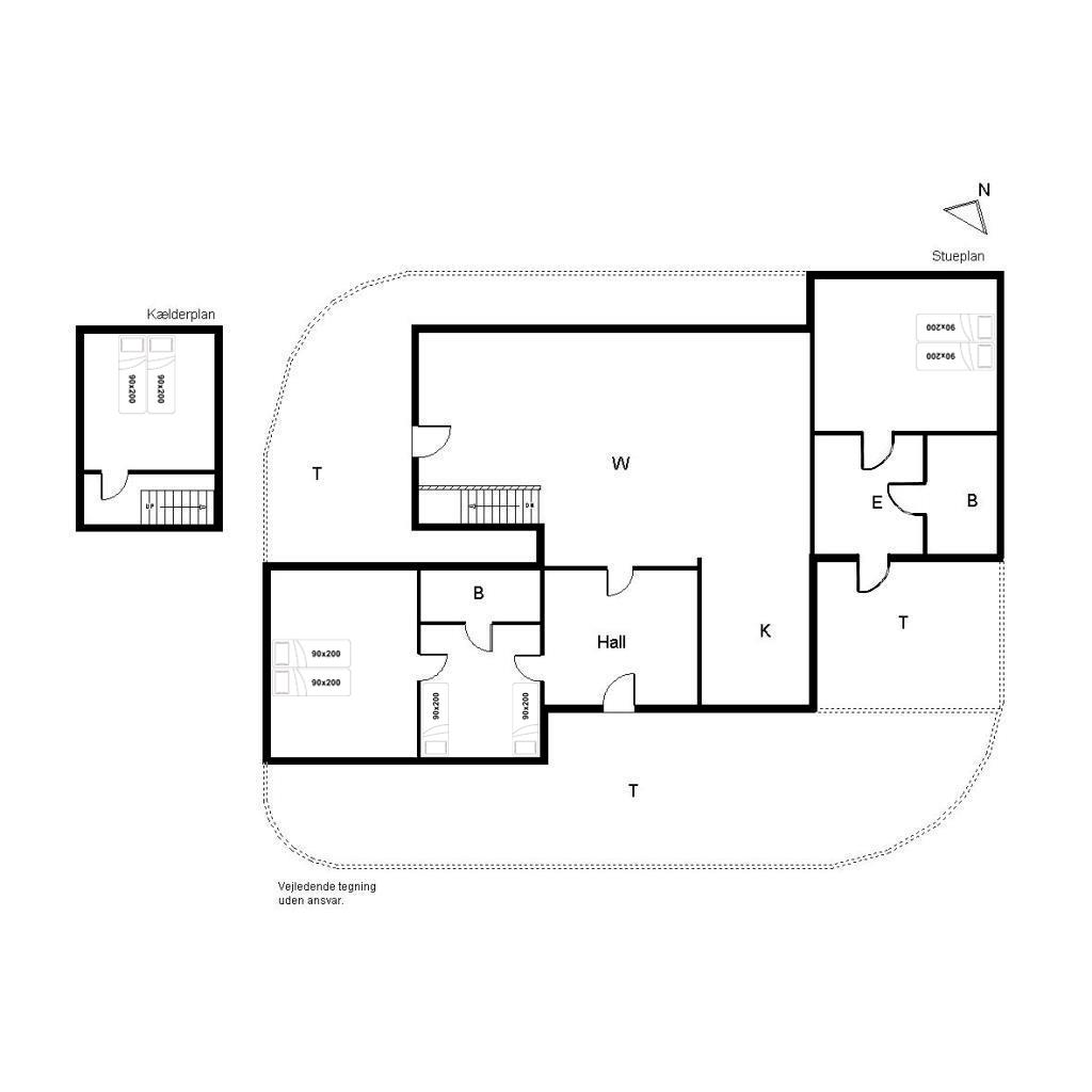 Sengestørrelse: 3 dobbeltsenge med 2 madrasser 90 x 200 cm + 2 enkeltsenge 90 x 200 cm.