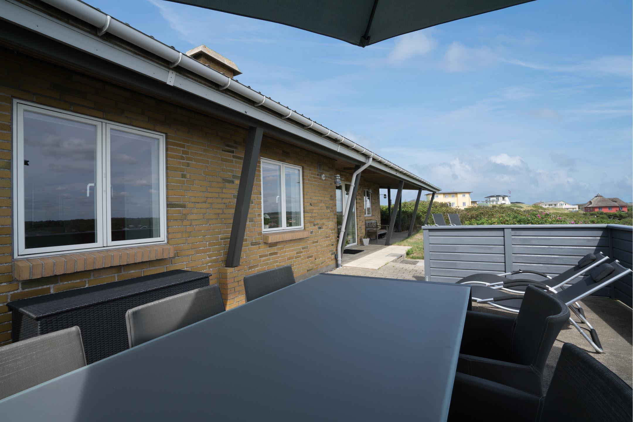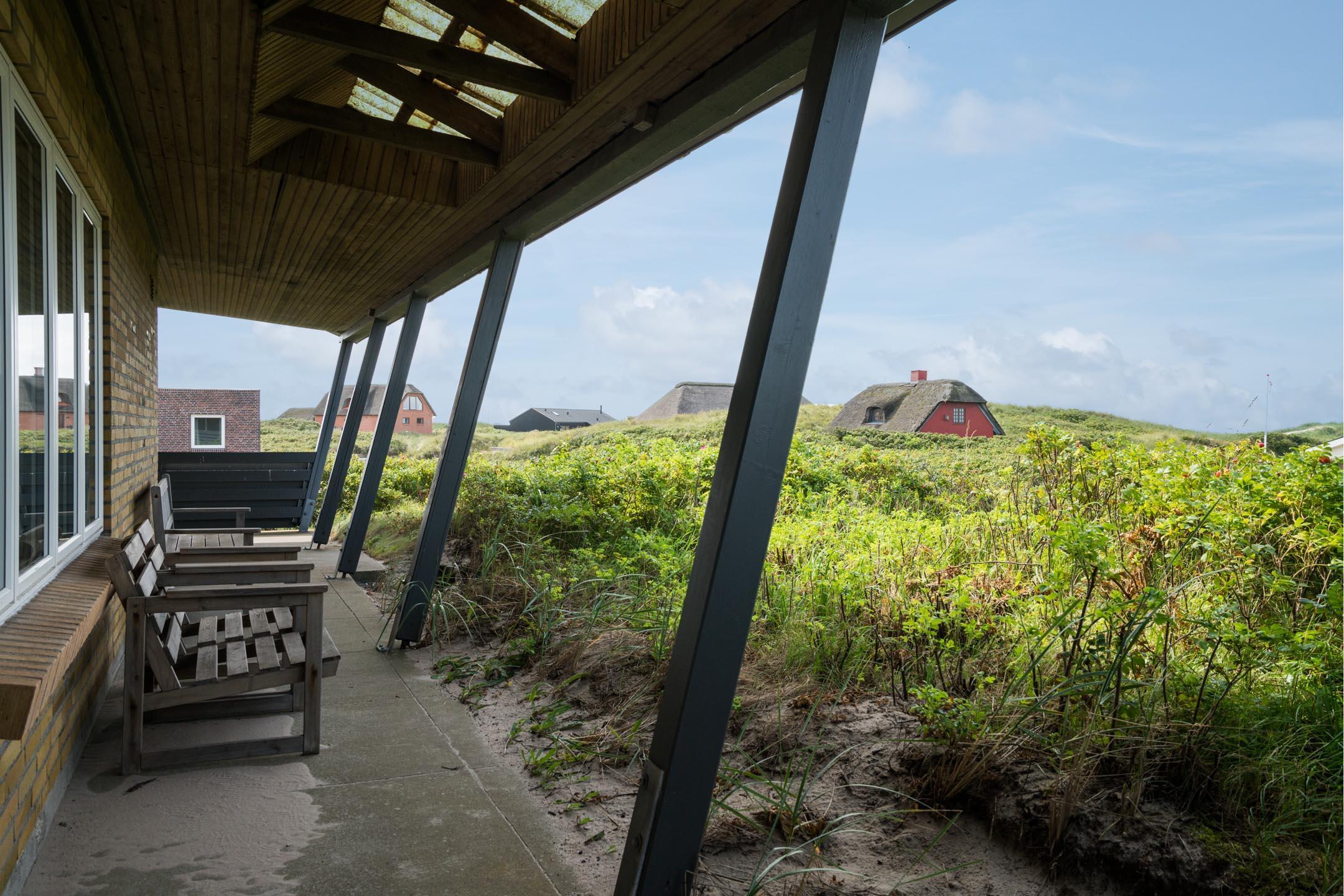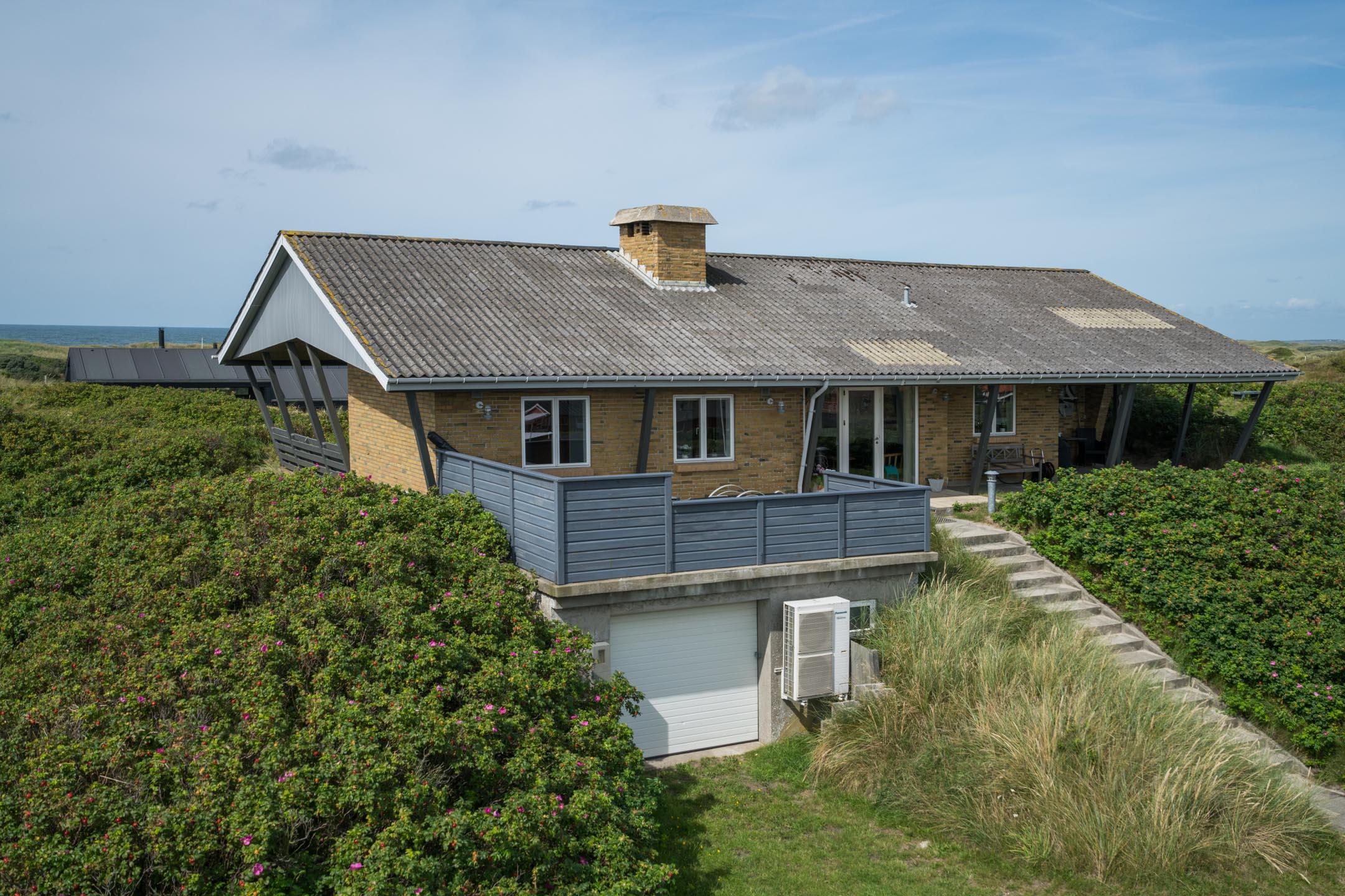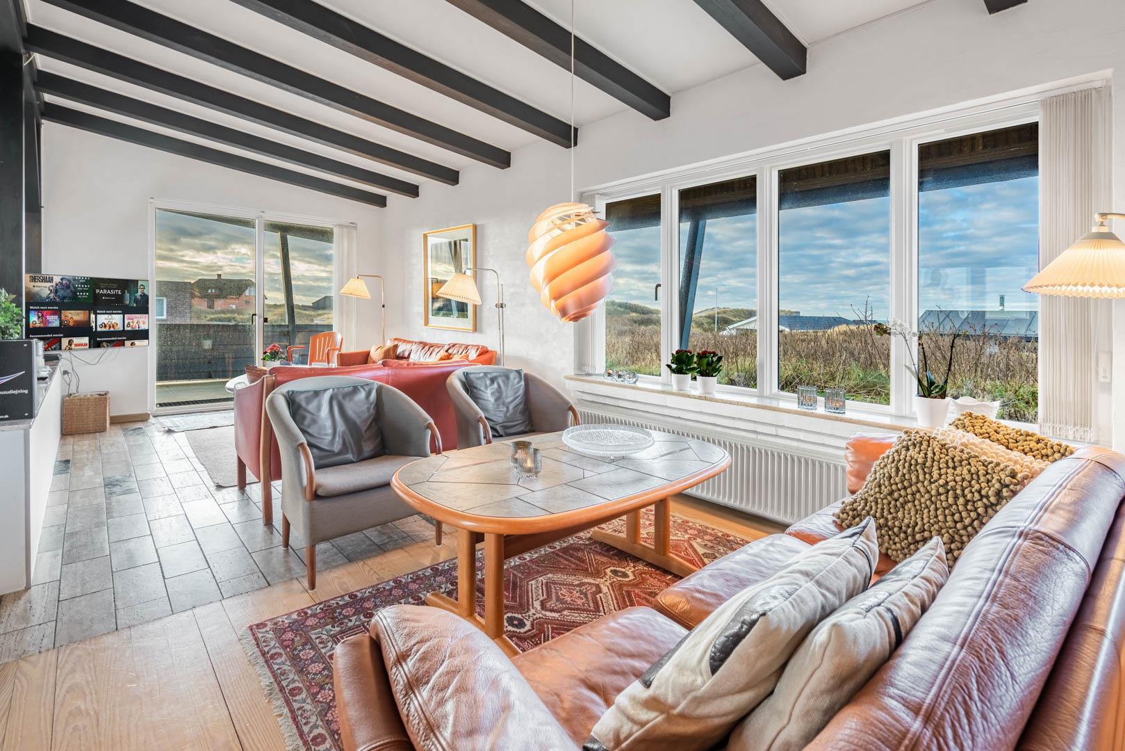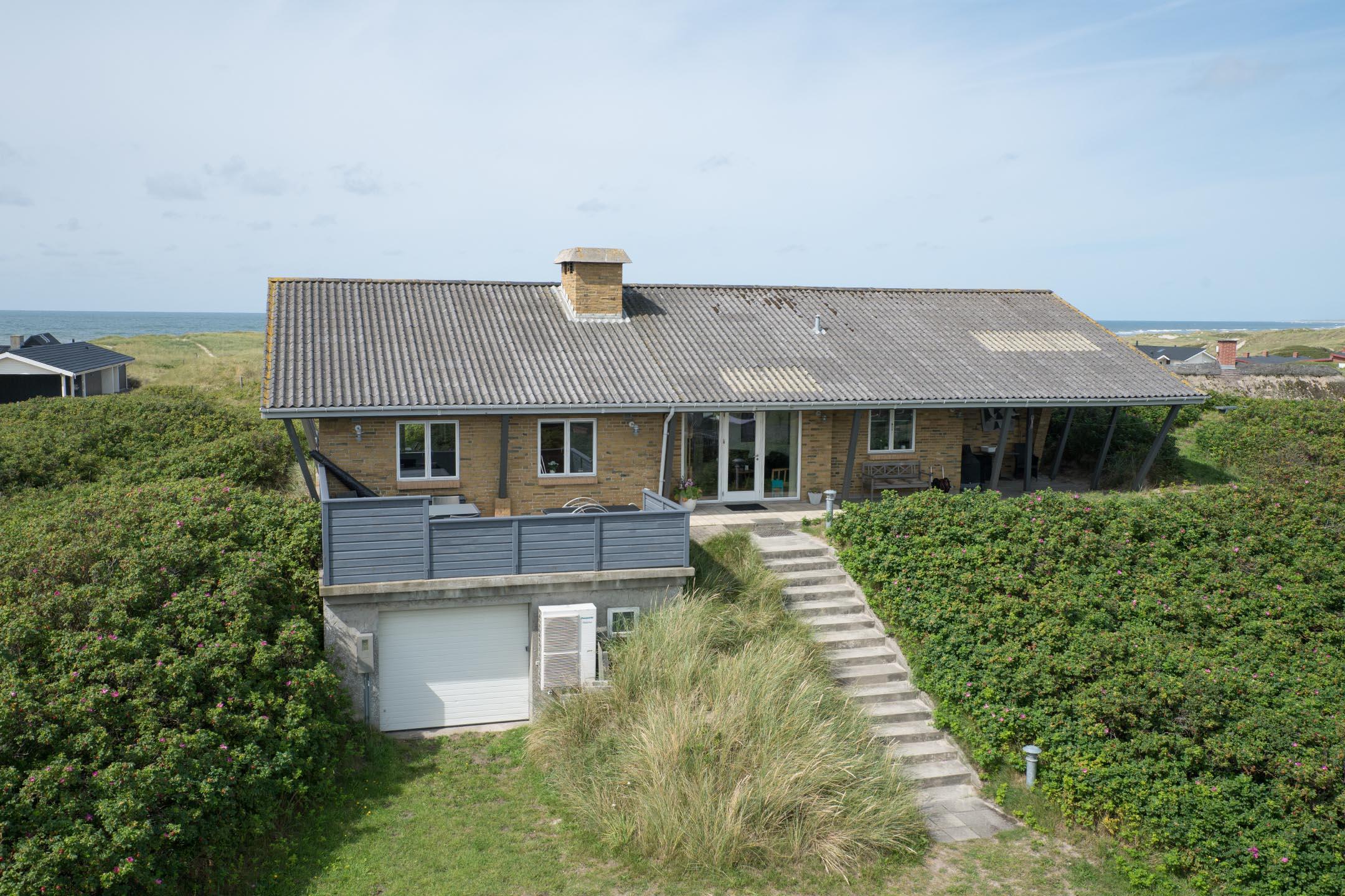 over bredden - vi befinder os i Henne Strand, hvor dette sommerhus er klar til at danne rammen om jeres næste ferie. Sommerhuset ligger ganske uforstyrret på en klittop, hvorfra der er udsigt ud over Vesterhavet og det maleriske klitlandskab.