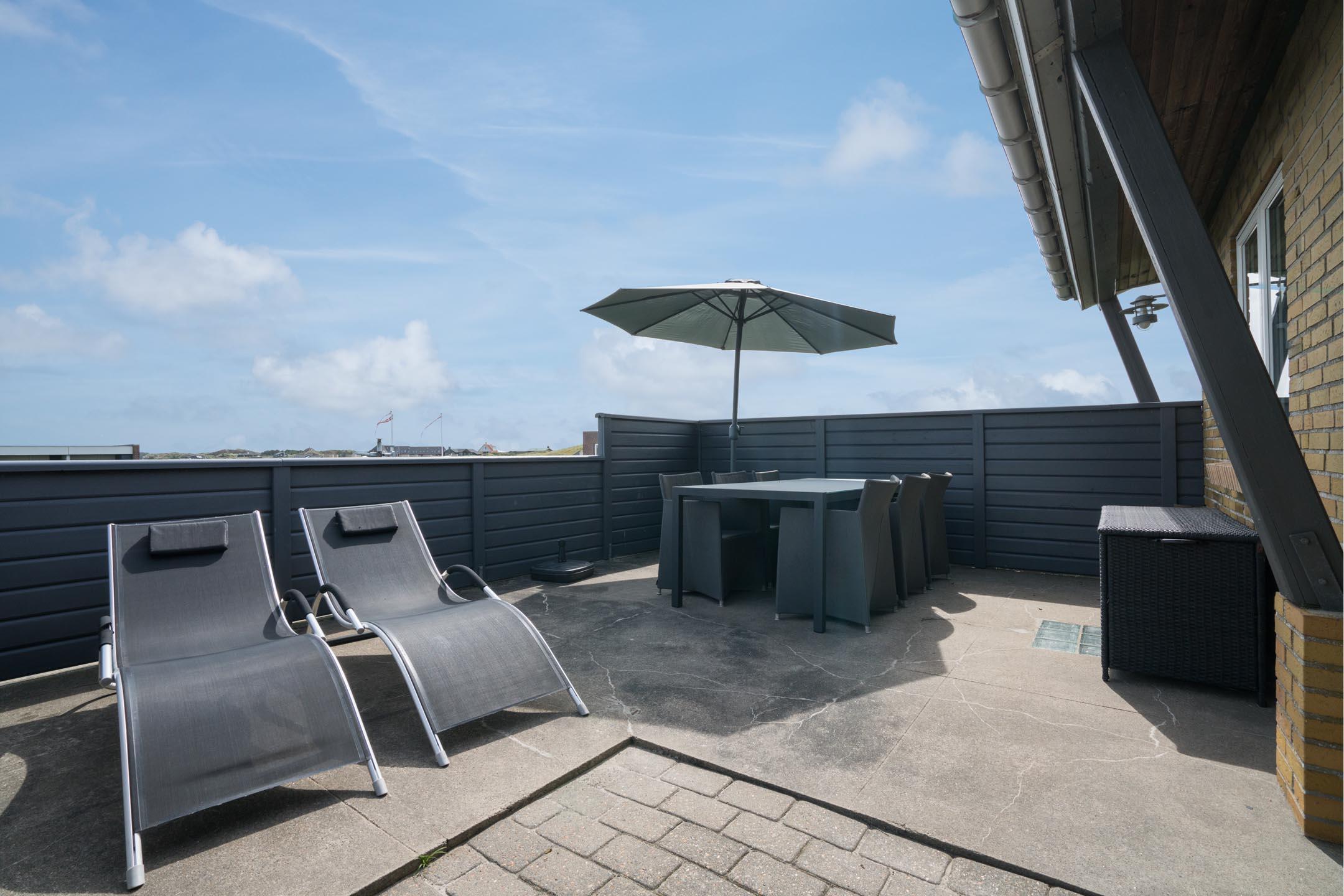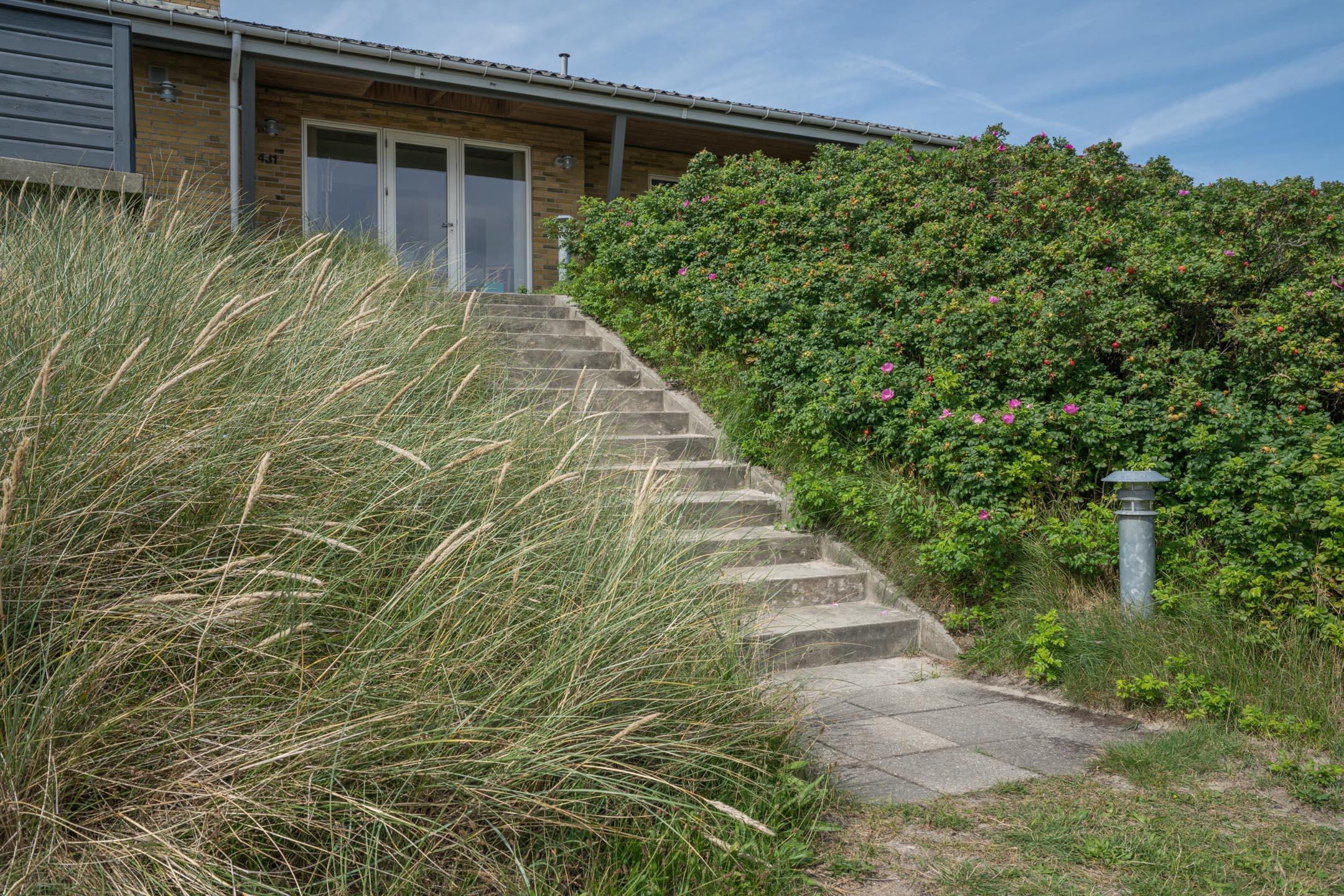 Selvom der blot er få skridt til Strandvejens cafeer, butikker og restauranter, er der helt stille og roligt på sommerhusets skønne klittop. En ferie her vil indeholde en del afslapning på husets skønne terrasser, eller måske foretrækker I en slentretur langs stranden efterfulgt af en lækker frokost hos Crêperiet. Det er også altid skønt at gå lange ture i Blåbjerg Plantage, og skal der ske noget helt andet, kan I også benytte jer af Henne Strand Camping og Resorts faciliteter eller smutte en tur til Henne Golfklub.