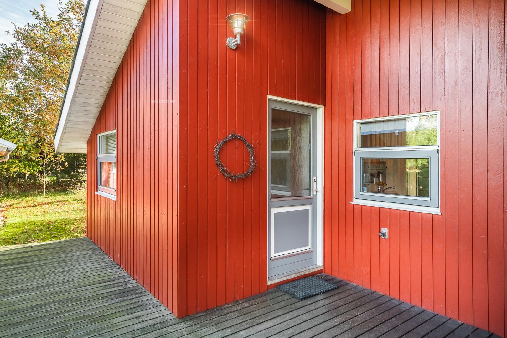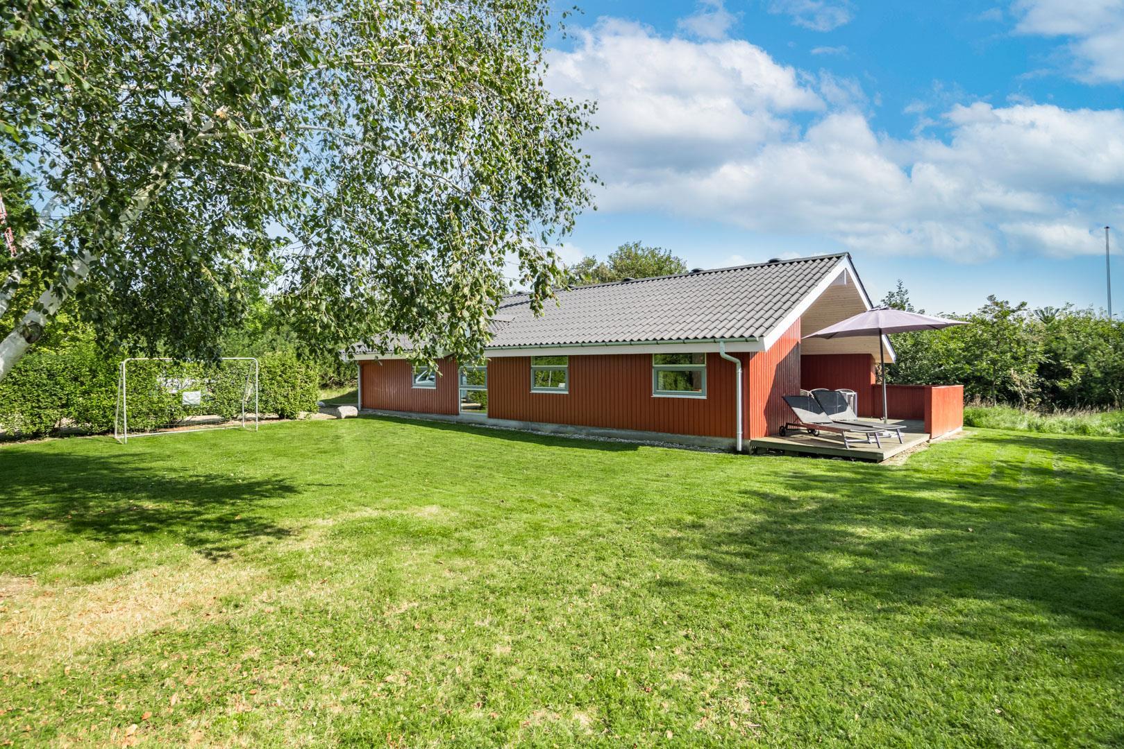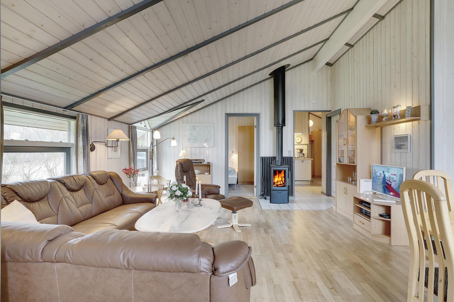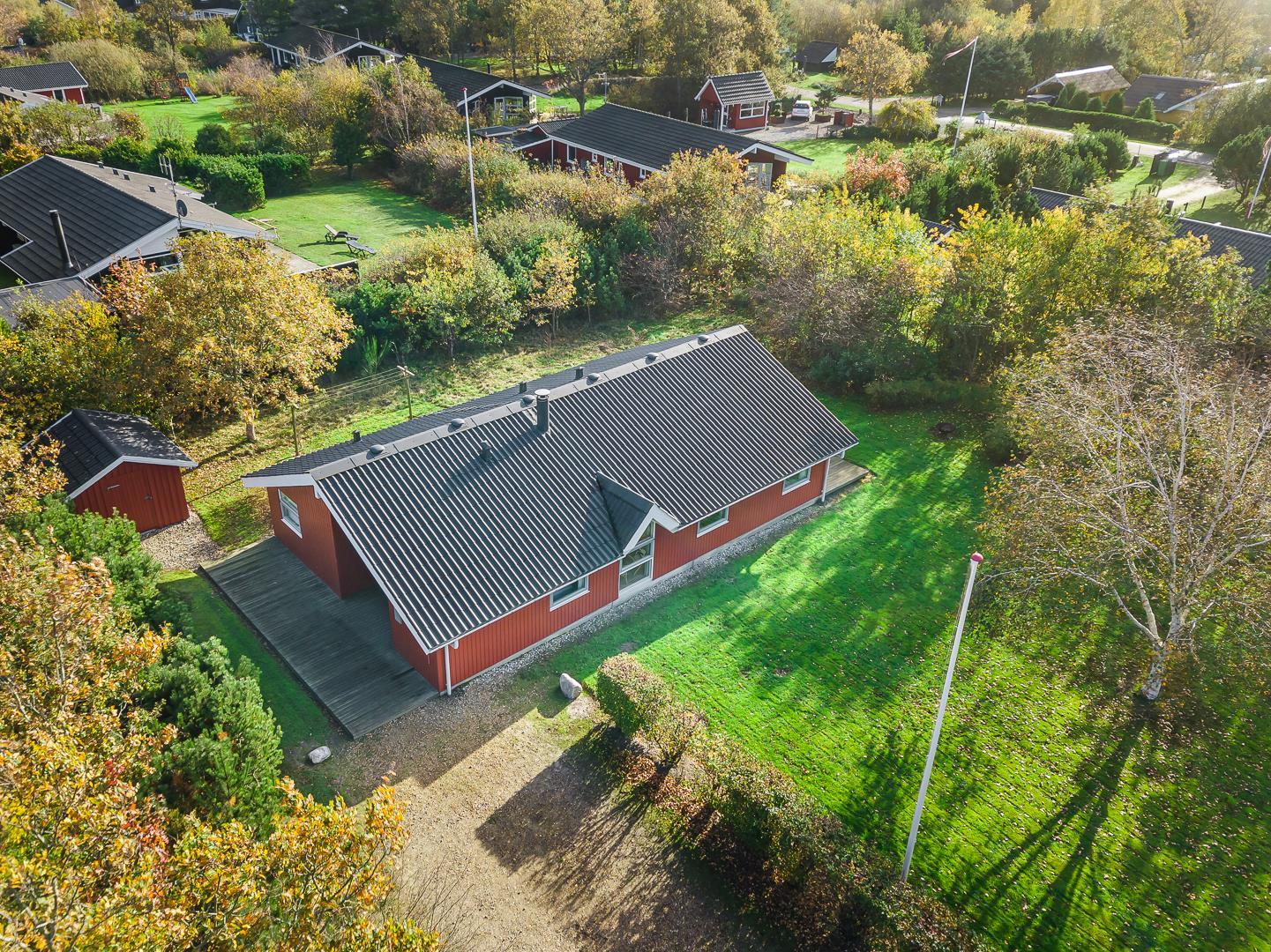 Flot og velholdt feriehus beliggende på en dejlig ugeneret naturgrund for enden af stikvej. Huset fremstår overalt meget velpasset og den hyggelig stue er indrettet med gode og pæne møbler. Huset råder over 3 værelser og et flot badeværelse med spa og sauna. Der er flere dejlige terrasser en er delvis overdækket. Grunden er meget børnevenlig, så børne kan rigtig boltre sig.