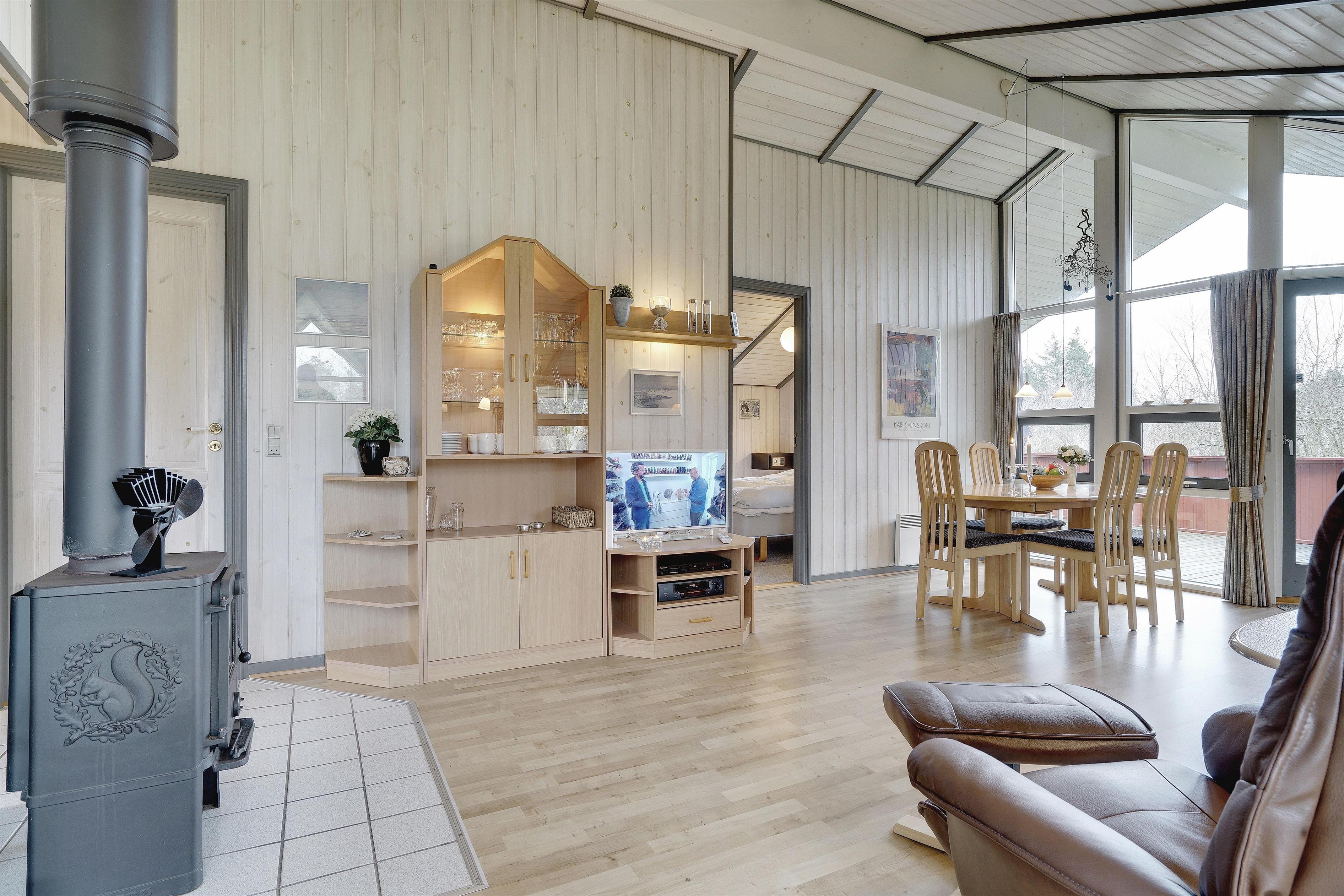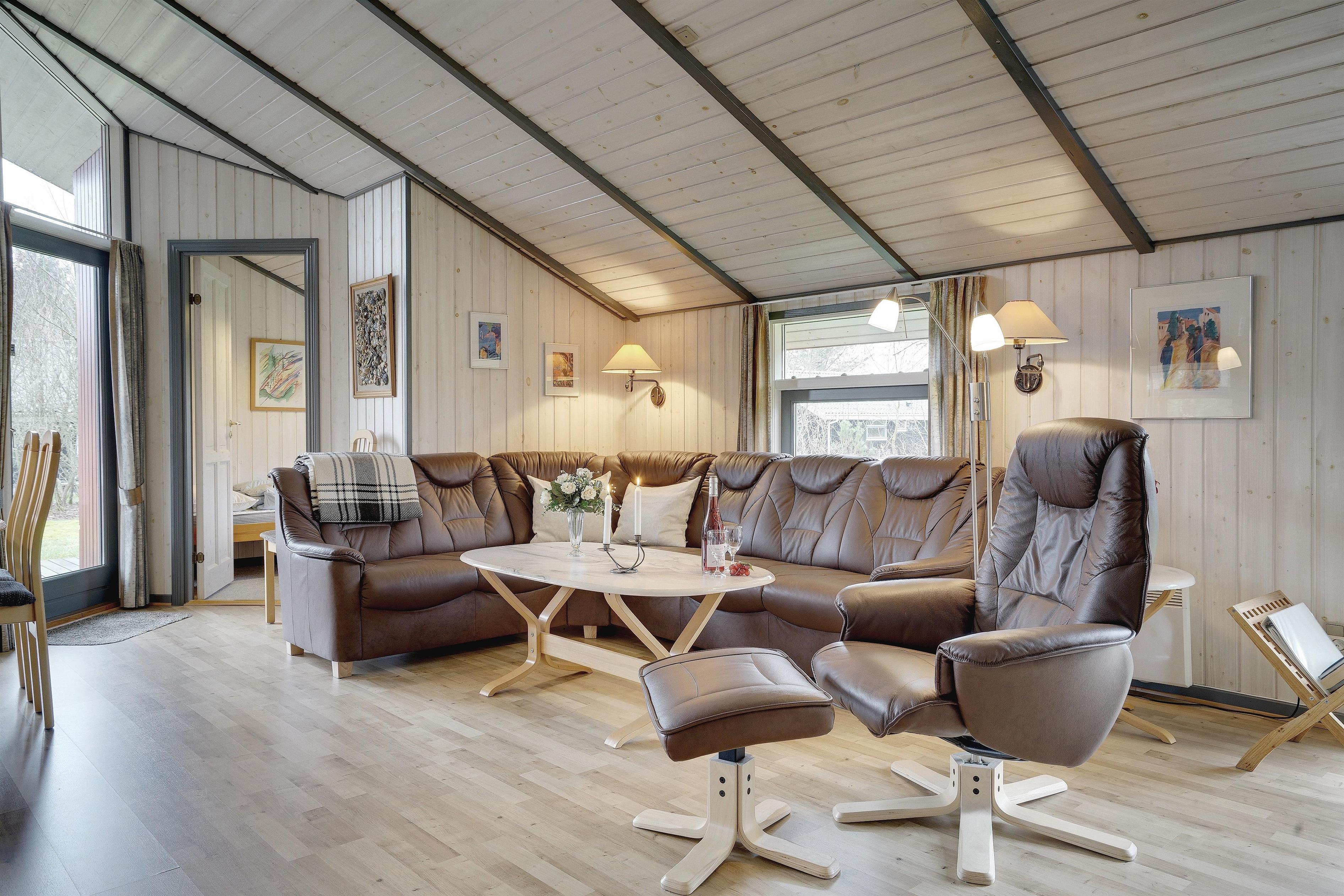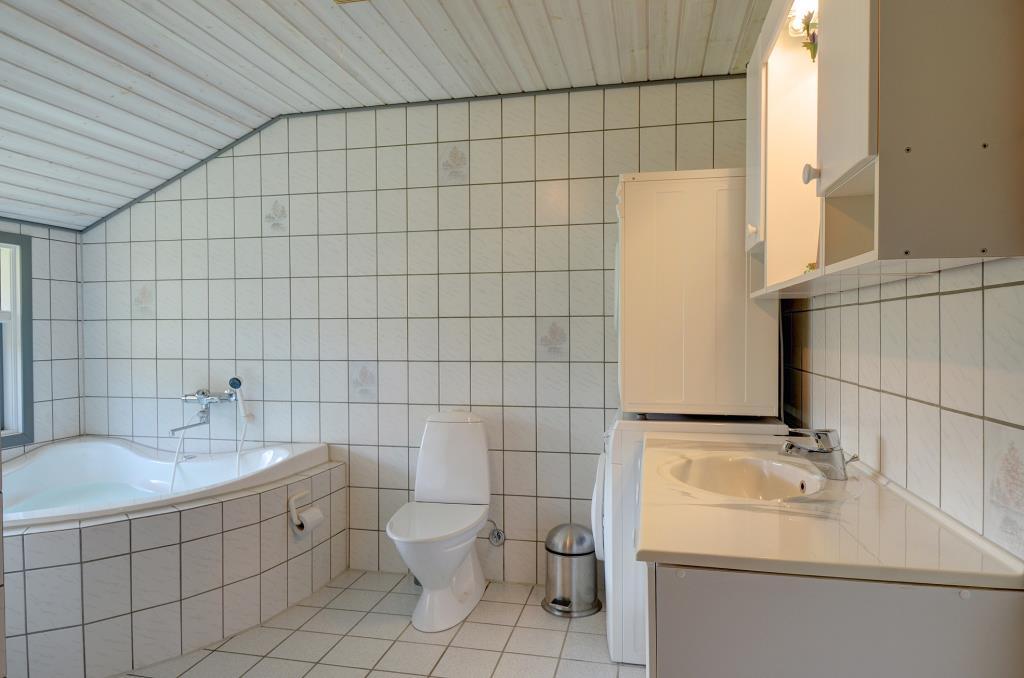 Flot og velholdt feriehus beliggende på en dejlig ugeneret naturgrund for enden af stikvej. Huset fremstår overalt meget velpasset og den hyggelig stue er indrettet med gode og pæne møbler. Huset råder over 3 værelser og et flot badeværelse med spa og sauna. Der er flere dejlige terrasser en er delvis overdækket. Grunden er meget børnevenlig, så børne kan rigtig boltre sig.