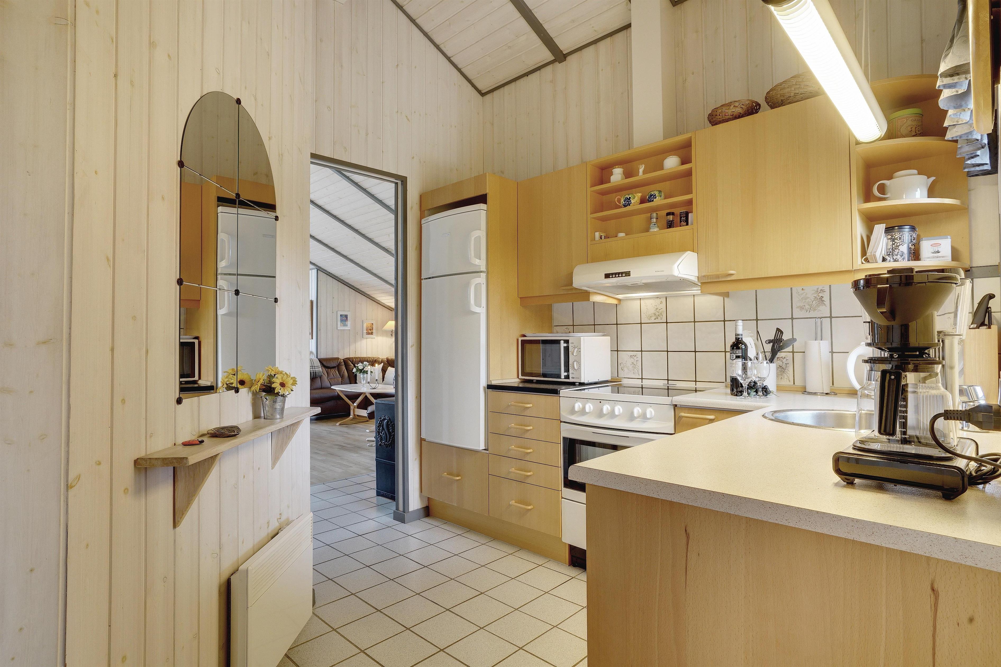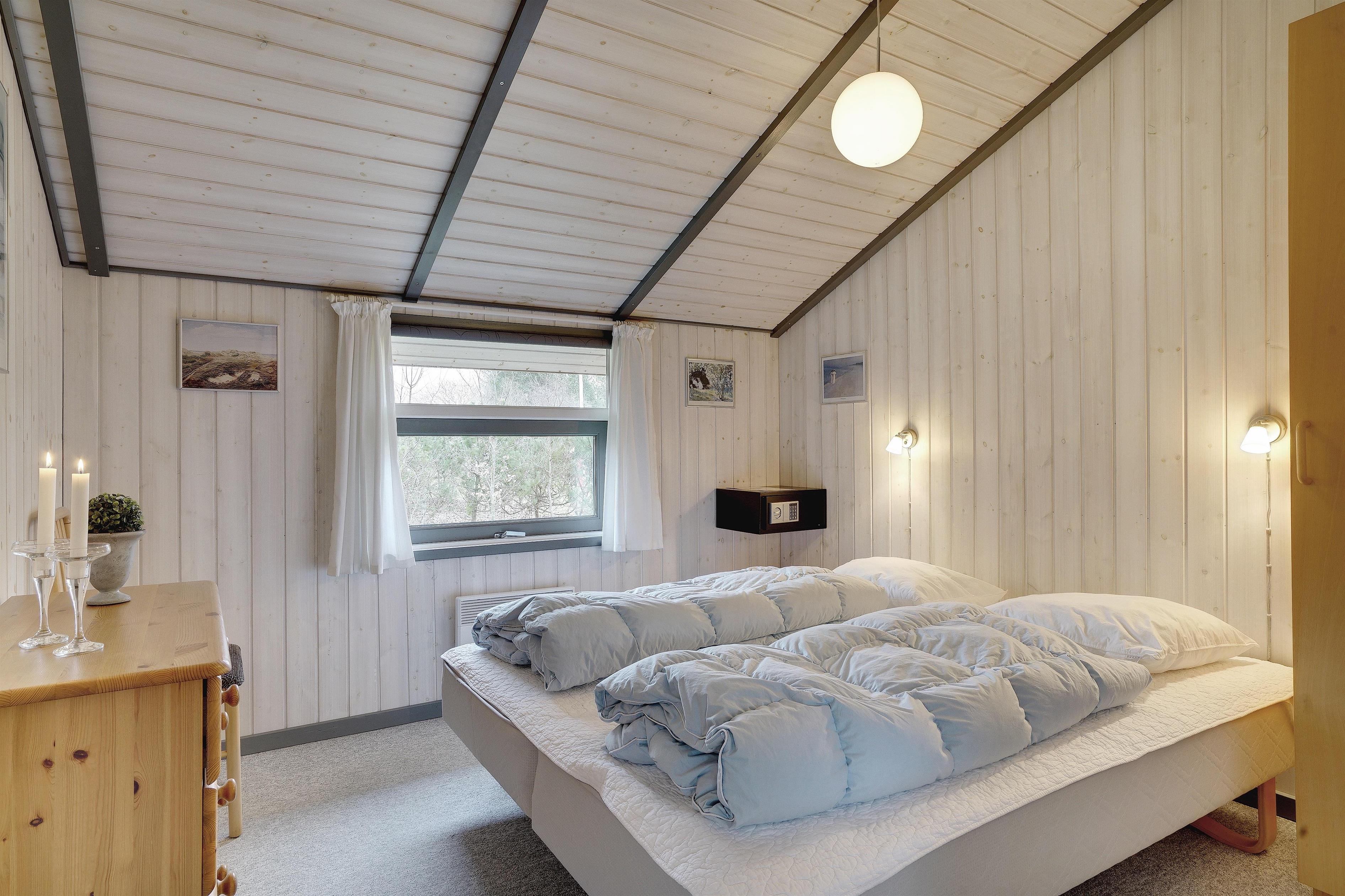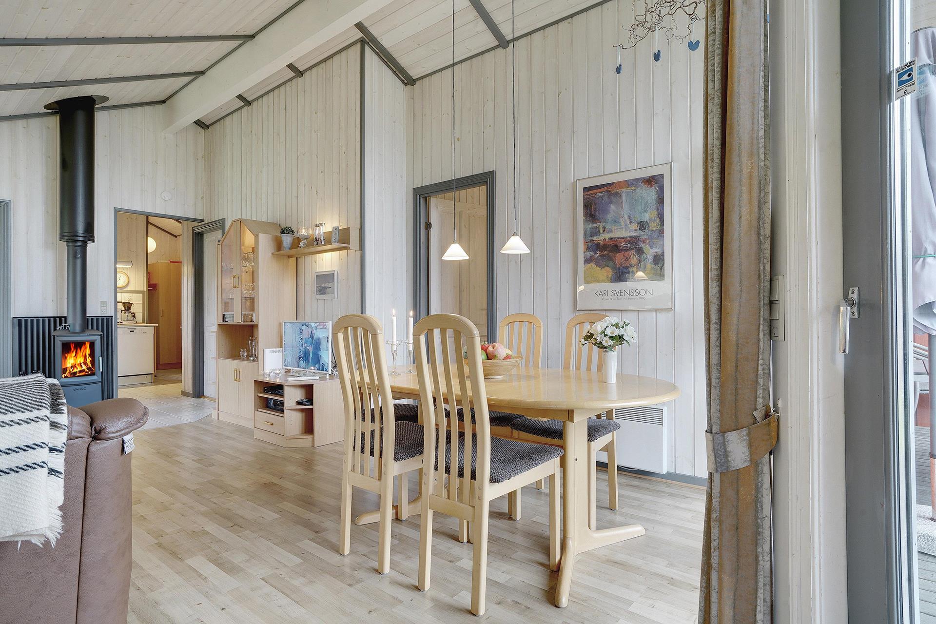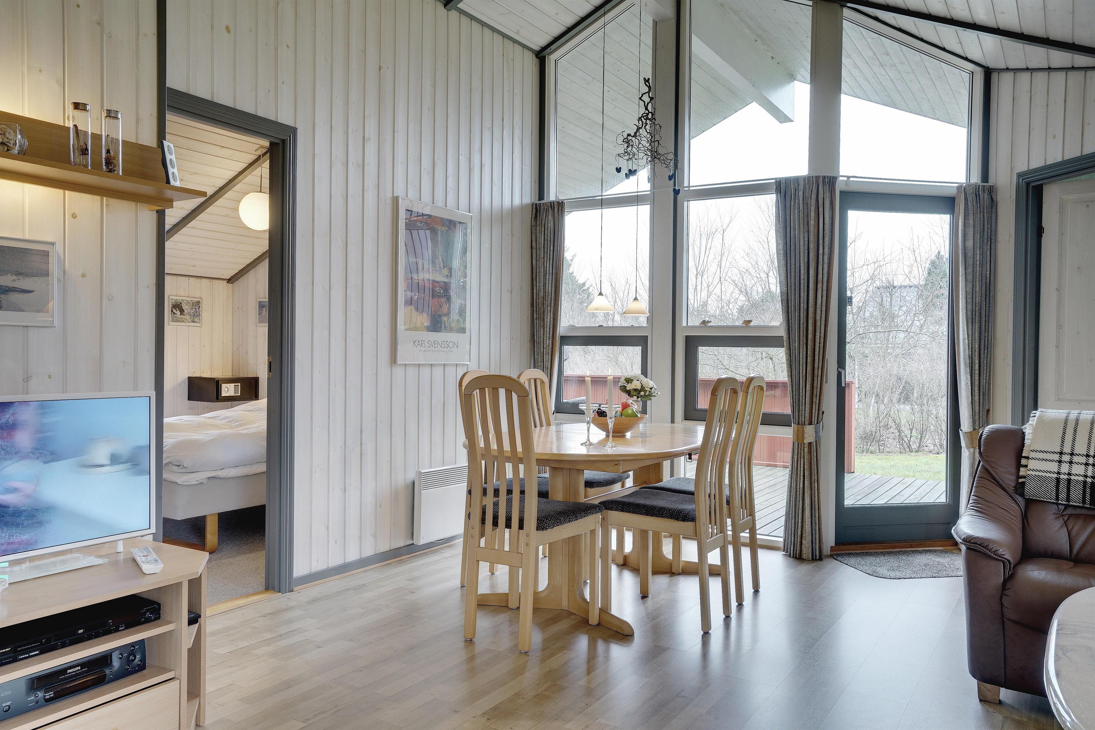 Flot og velholdt feriehus beliggende på en dejlig ugeneret naturgrund for enden af stikvej. Huset fremstår overalt meget velpasset og den hyggelig stue er indrettet med gode og pæne møbler. Huset råder over 3 værelser og et flot badeværelse med spa og sauna. Der er flere dejlige terrasser en er delvis overdækket. Grunden er meget børnevenlig, så børne kan rigtig boltre sig.