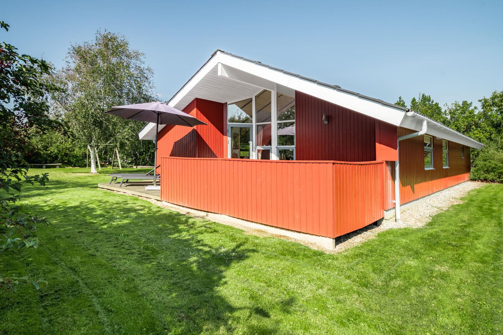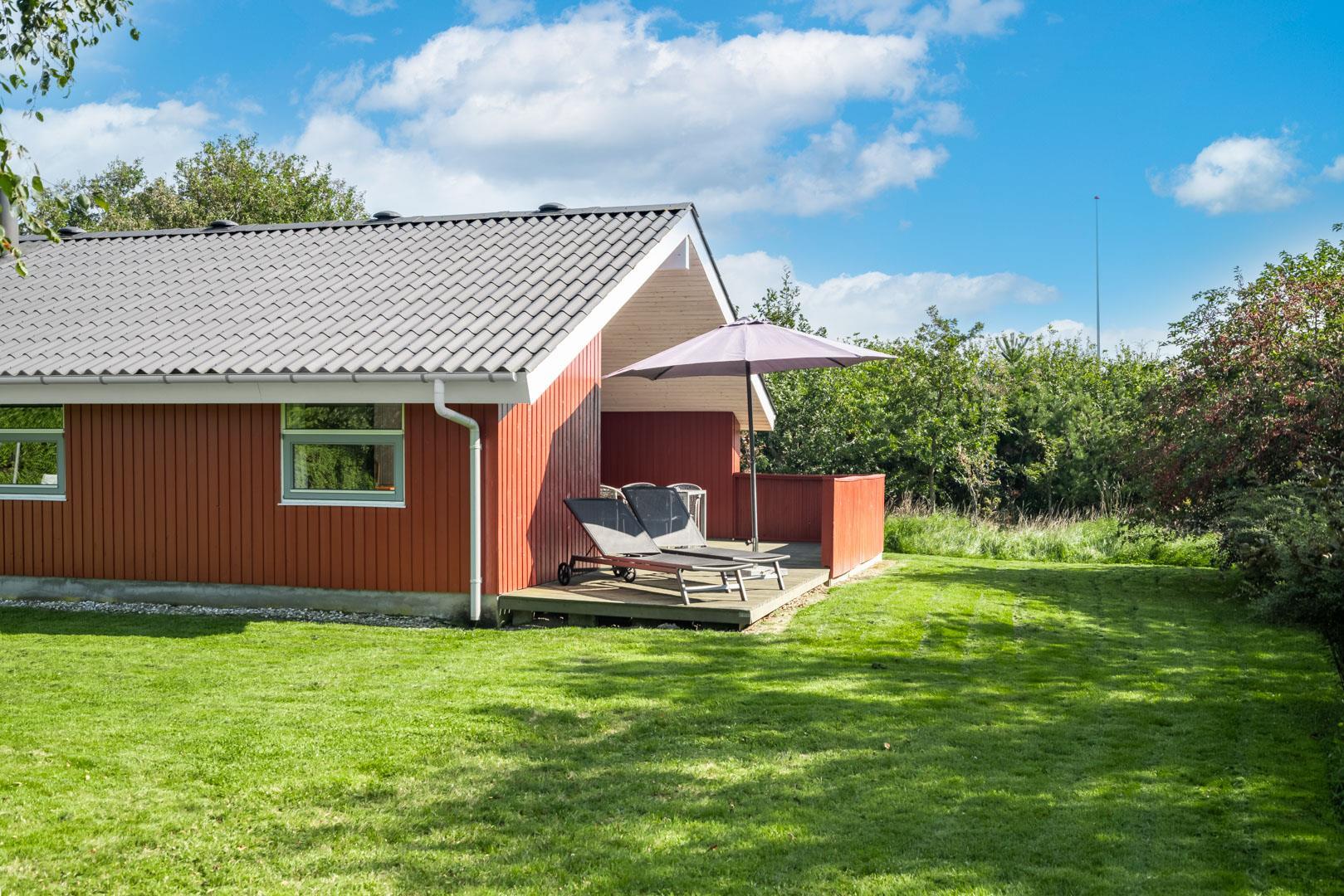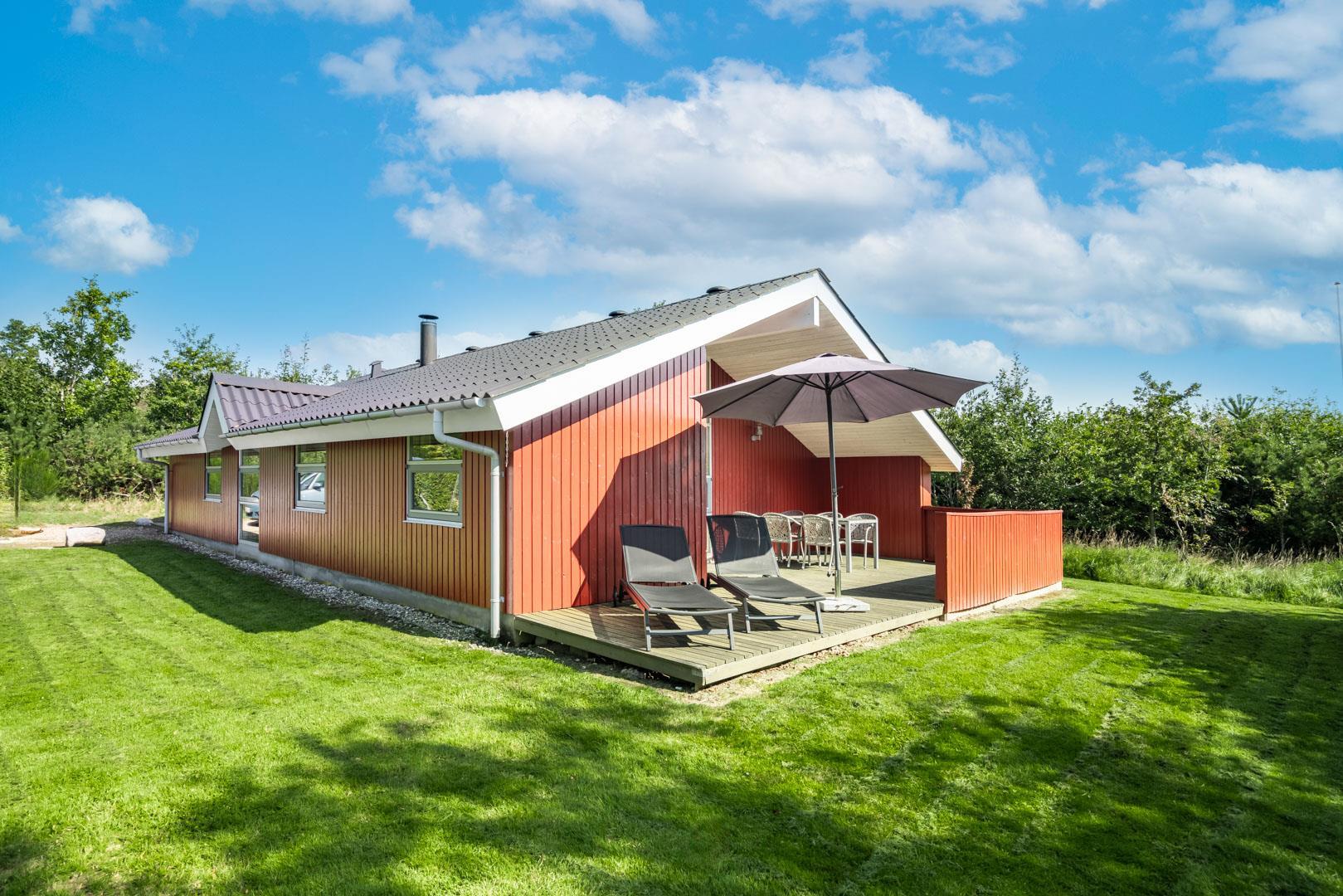 Flot, velholdt feriehus på ugeneret naturgrund med spa, sauna og flere terrasser i Henne Strand Øst.