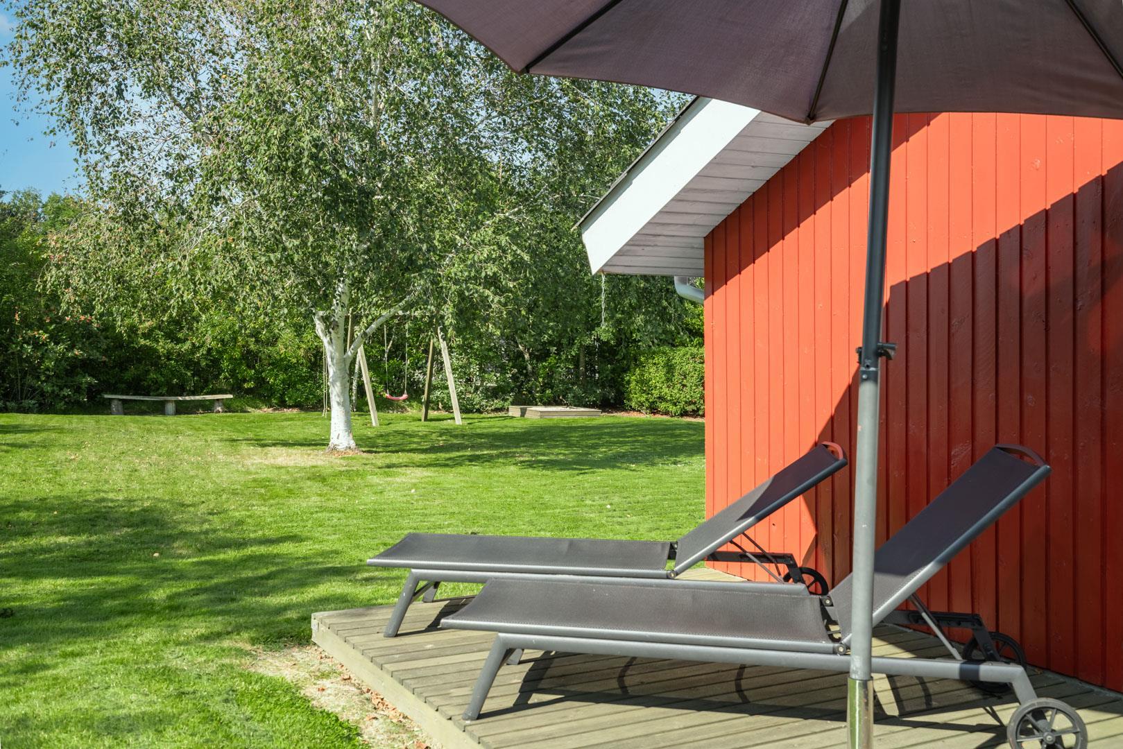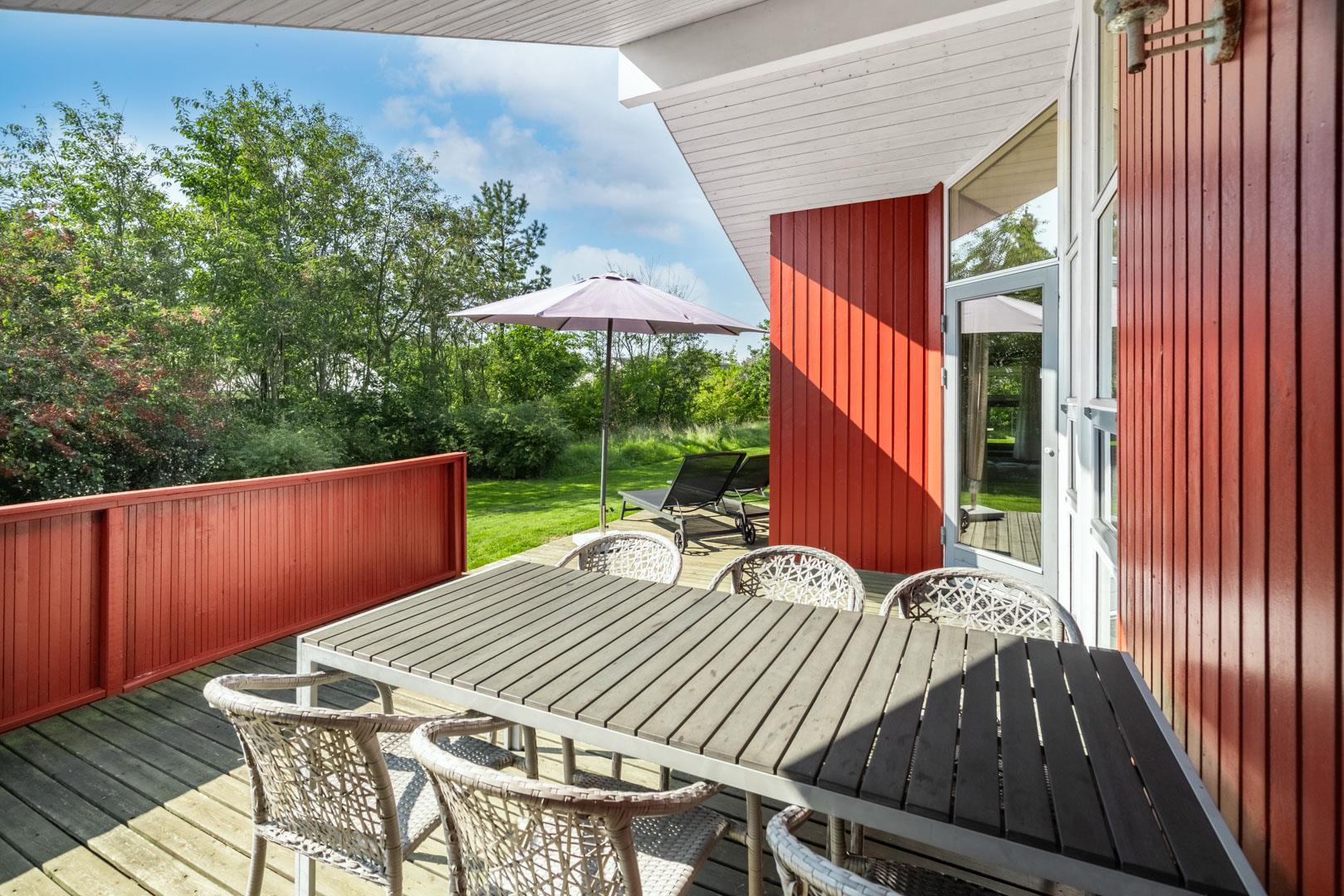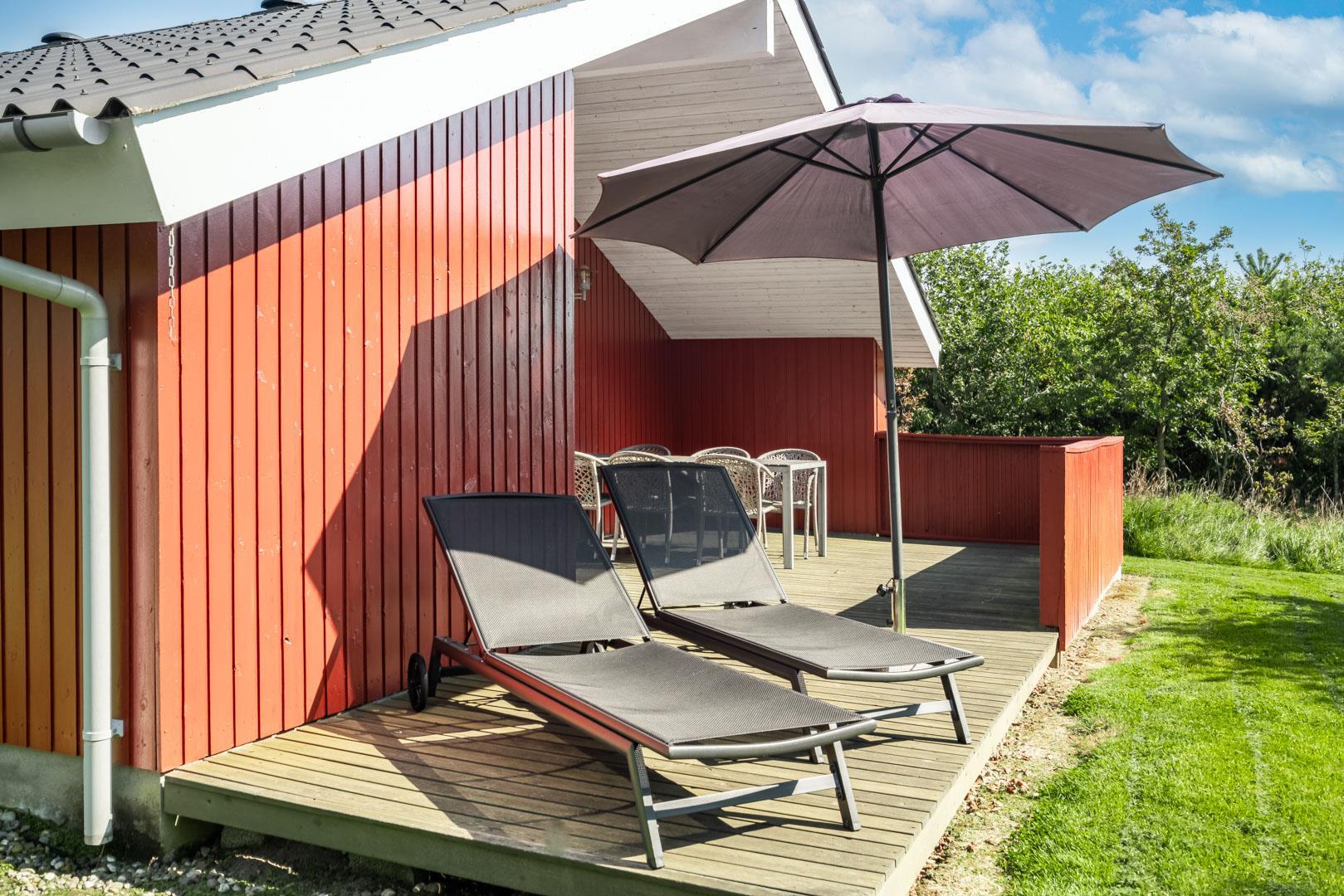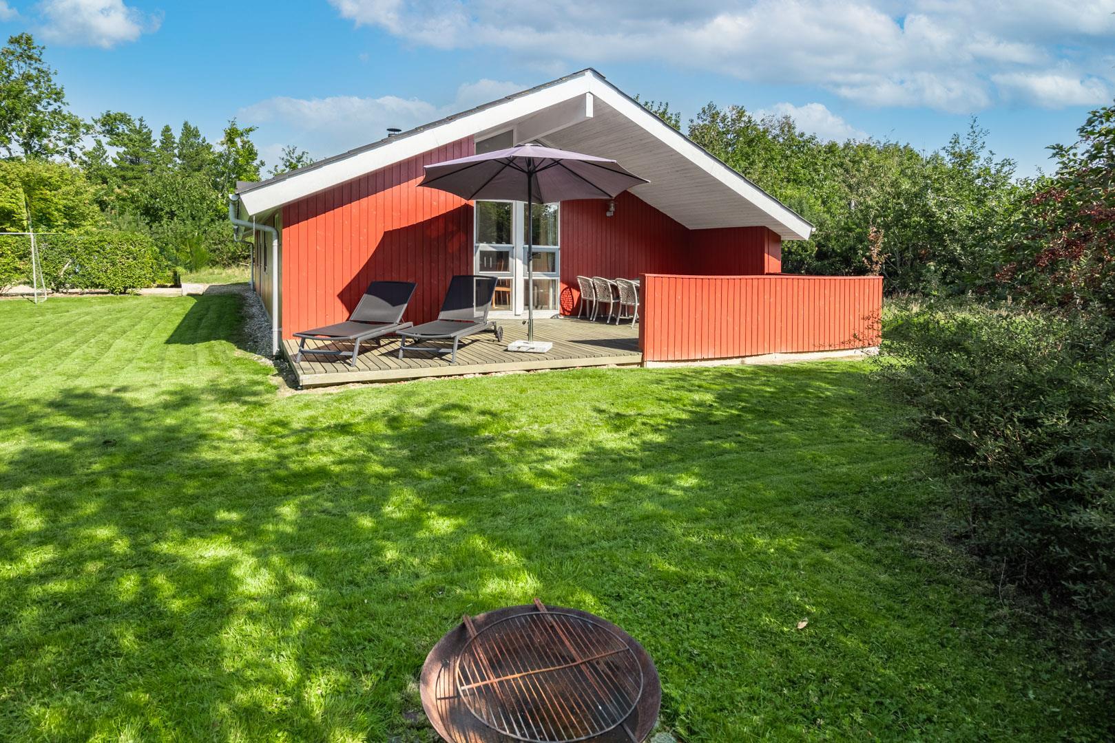 Flot, velholdt feriehus på ugeneret naturgrund med spa, sauna og flere terrasser i Henne Strand Øst.