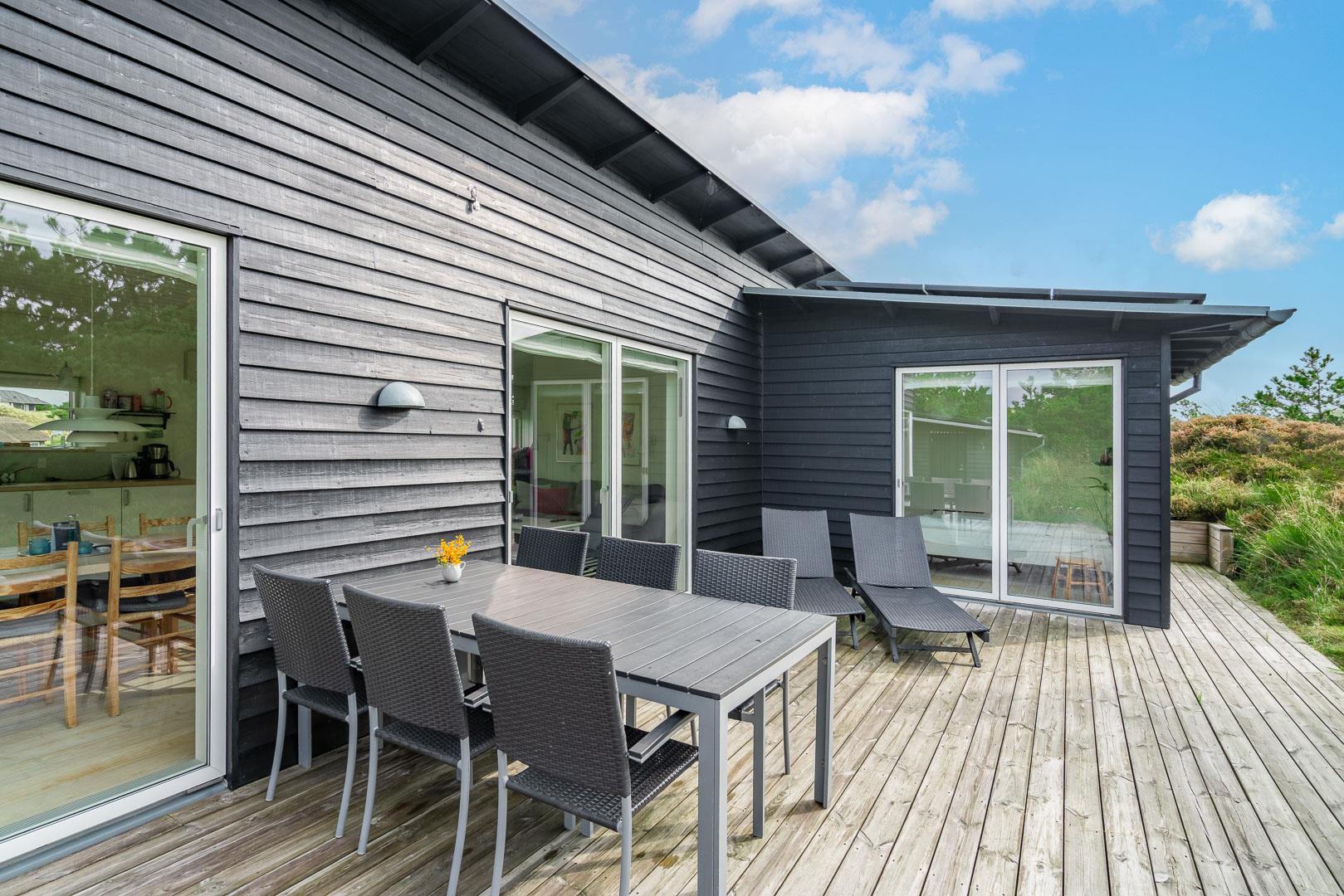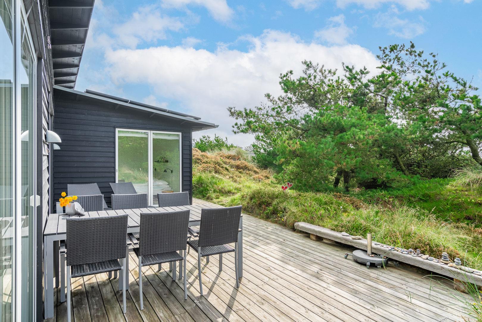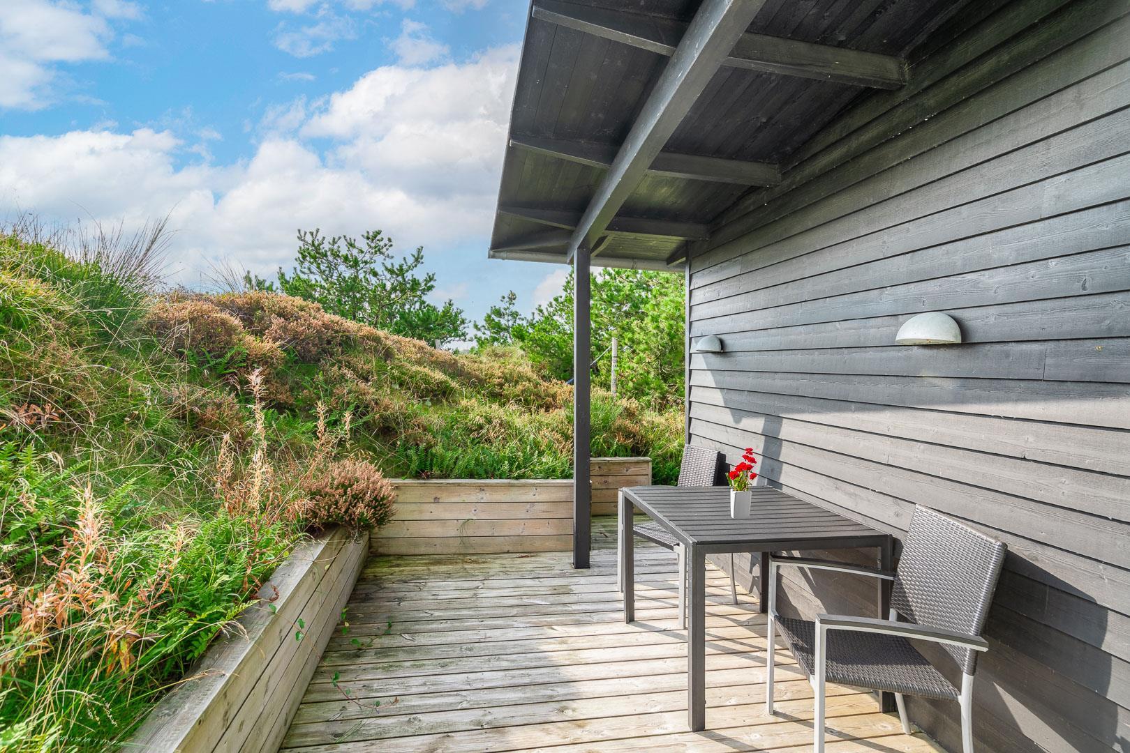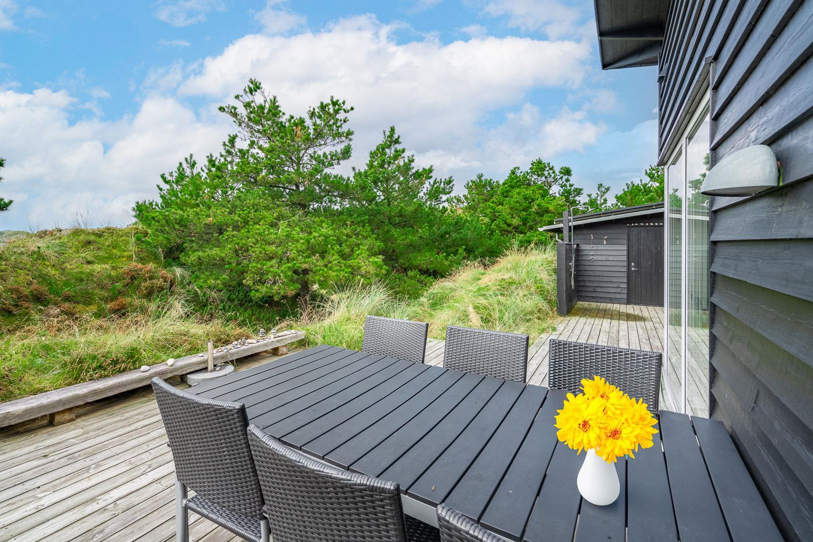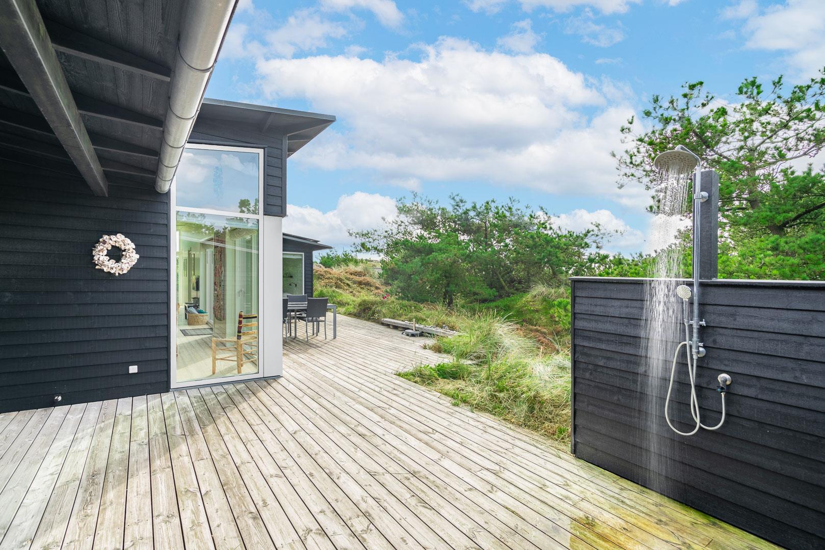 Fra huset er der nem adgang til en dukkert i bølgen blå – følg blot den lille sti for enden af Ternevej gennem det store klitareal, så åbenbarer den brede sandstrand sig for dig. Efter endt badetur kan du bruse dig under åben himmel på husets terrasse, som har udendørsbruser.
