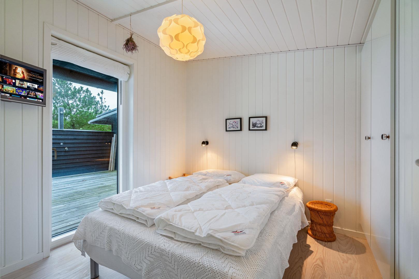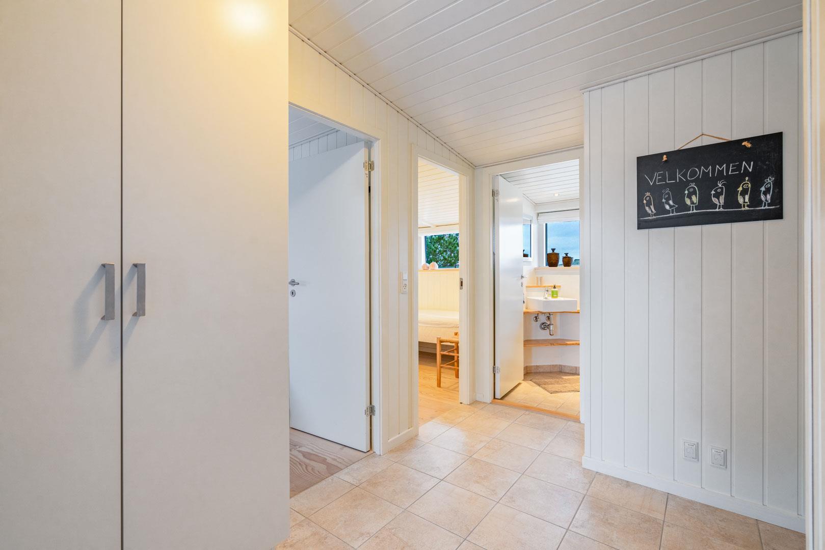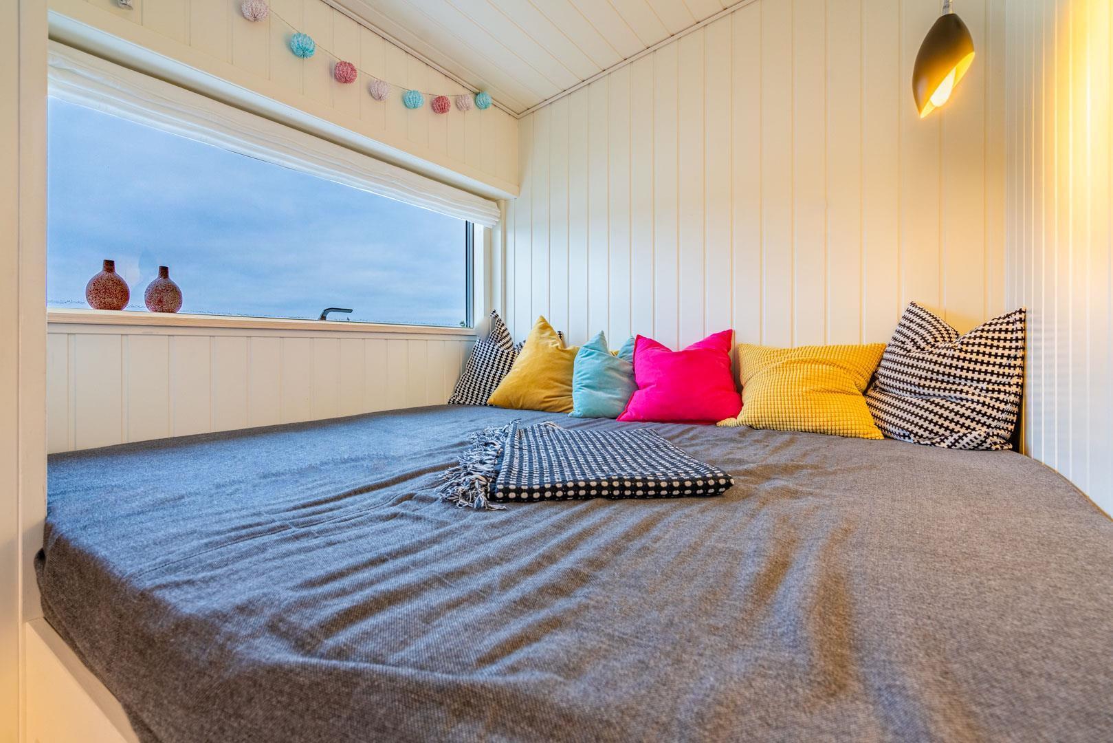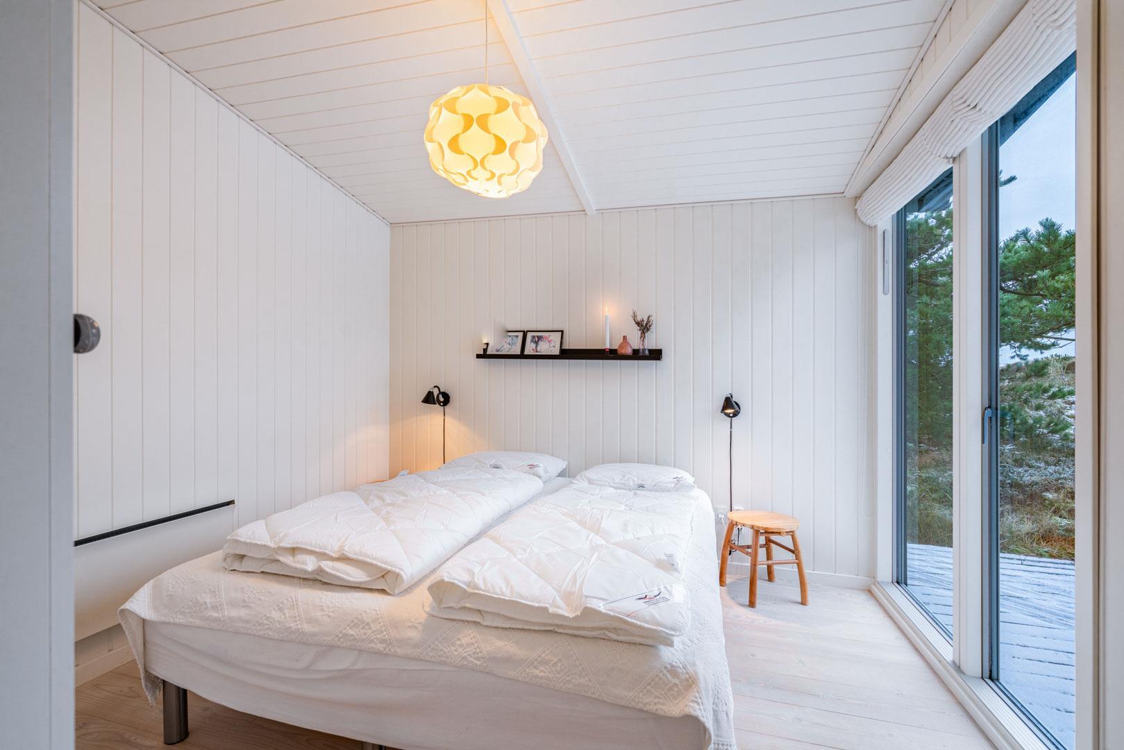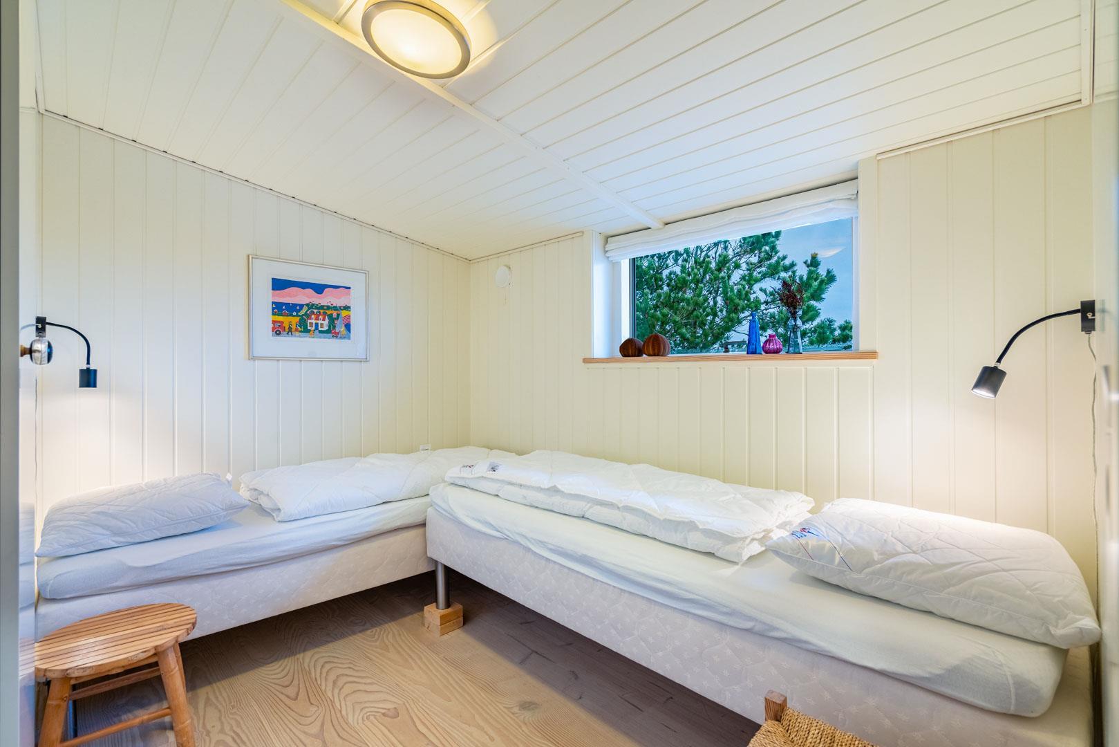 Huset rummer plads til 6 ferieglade gæster, fordelt på to værelser med dobbeltseng og et værelse med 2 enkeltsenge.