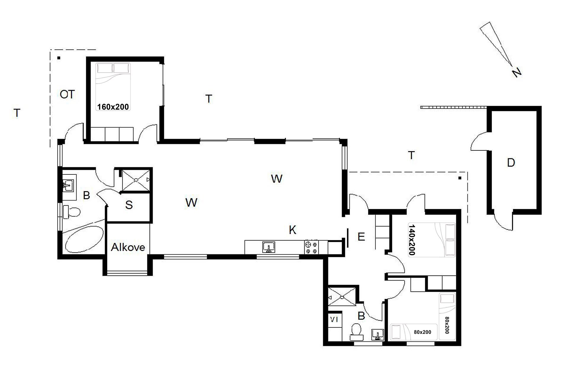 Sengestørrelse: 1 dobbeltseng 160 x 200 cm, 1 dobbeltseng 140 x 200 cm + 2 enkeltsenge 80 x 200 cm.