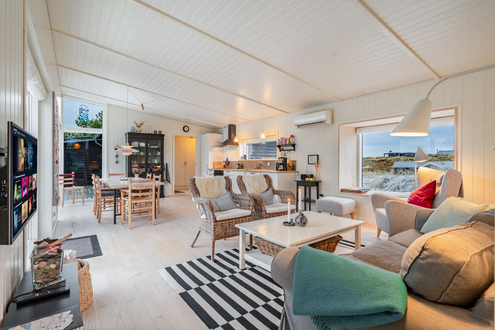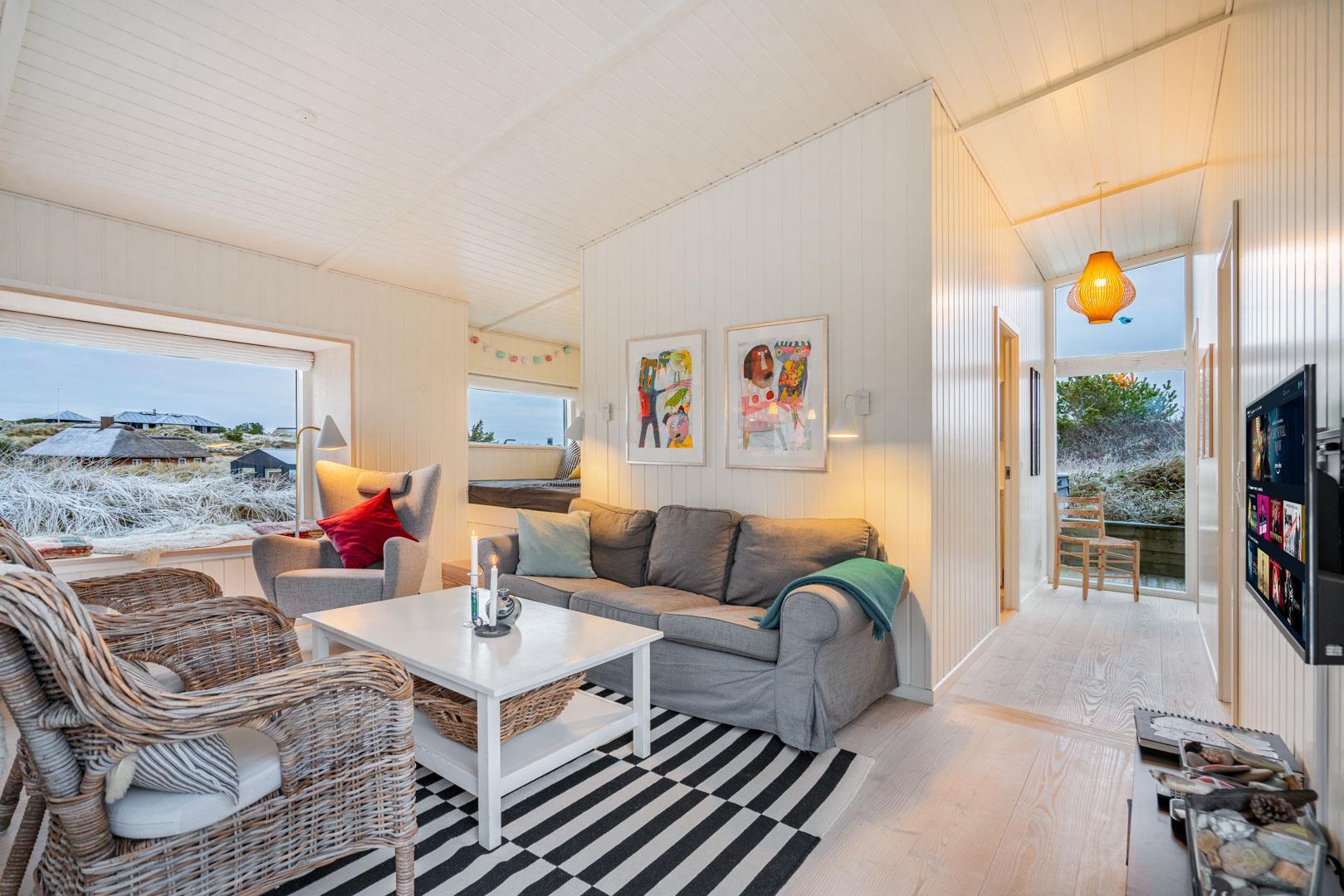 Holder du både af naturens stille ro og strandleg, vil du ikke blive skuffet, hvis du booker dette sommerhus. Det ligger nemlig ganske ugeneret på en højtliggende klitgrund med frodig beplantning – og samtidig få hundrede meter fra Hennes fantastiske sandstrand. Huset er indrettet smagfuldt og stilsikkert, og det byder på masser af skønne detaljer, som lige giver ferie dét ekstra.