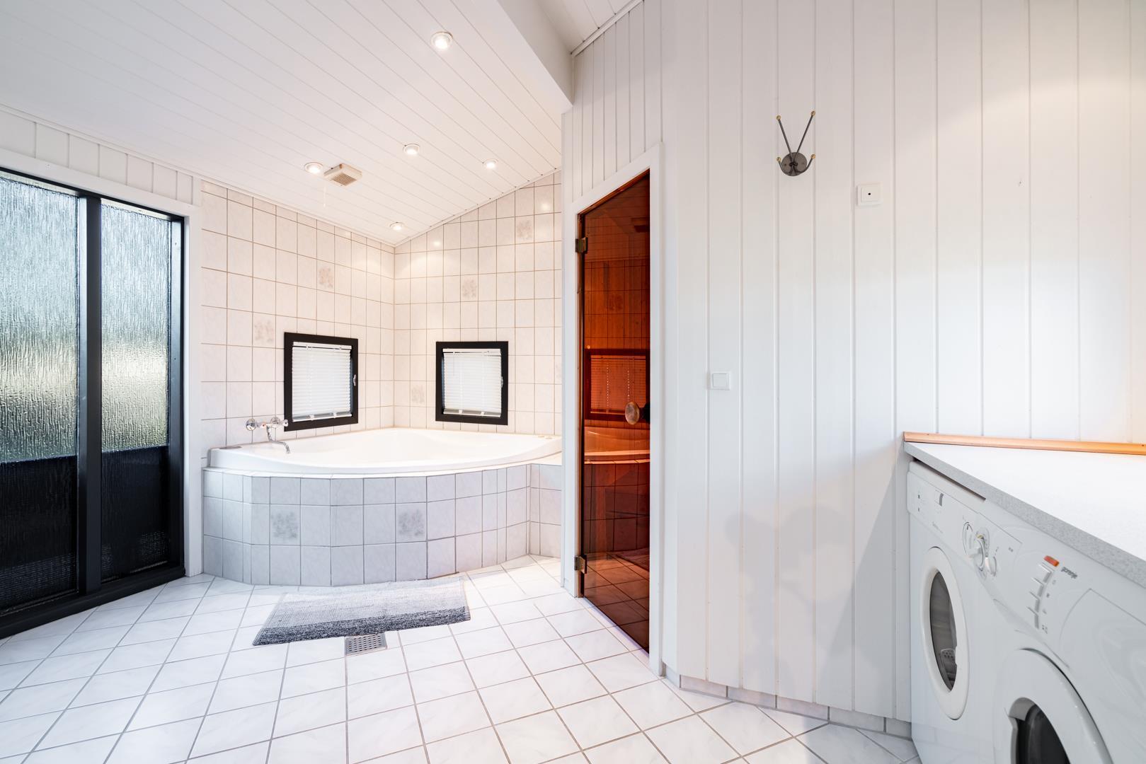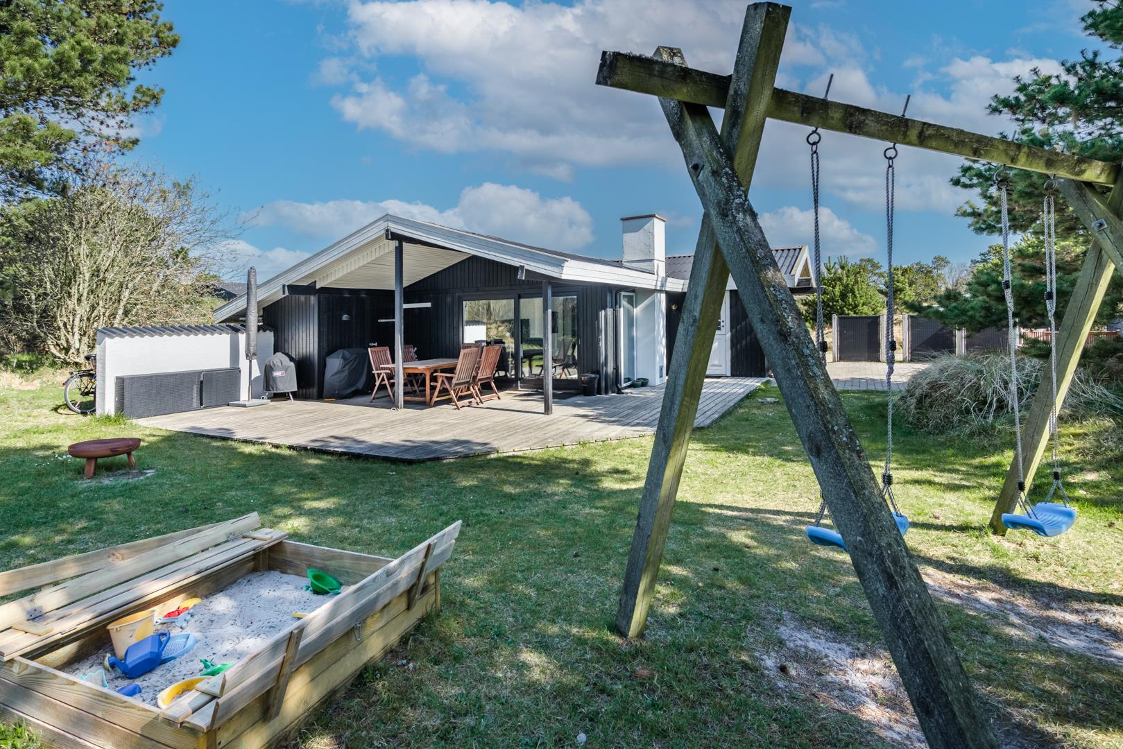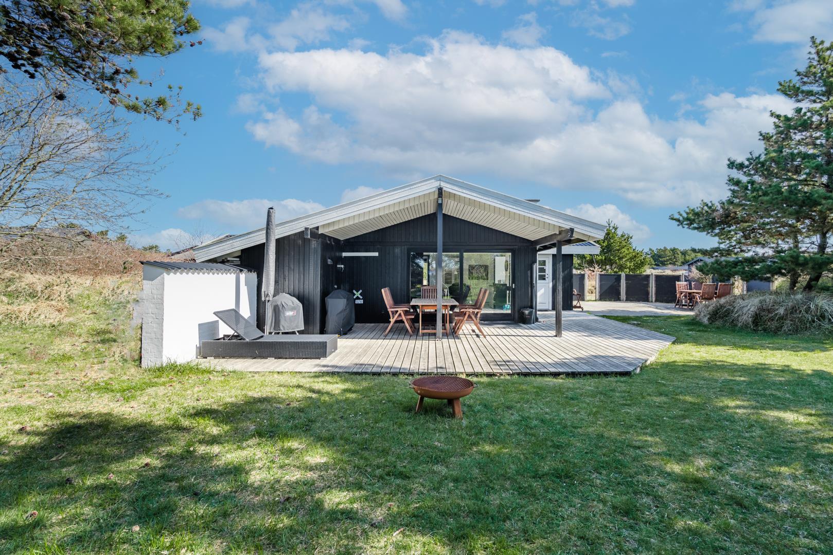 Moderne og børnevenligt feriehus tæt på stranden med sauna, spa og store terrasser i Henne Strand.