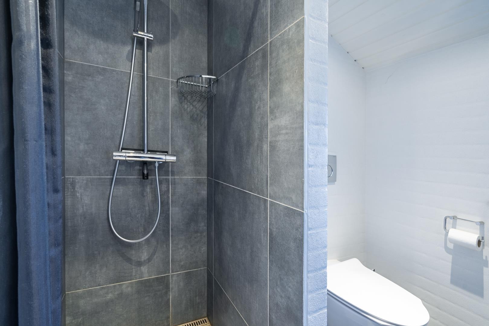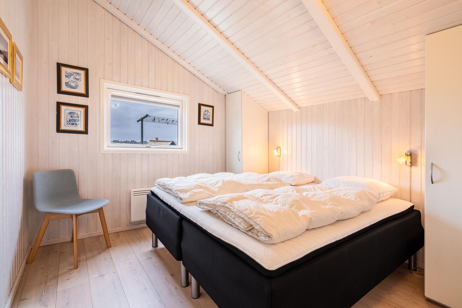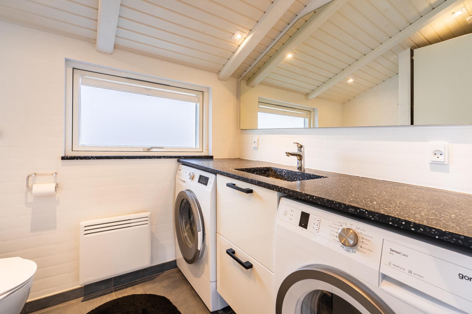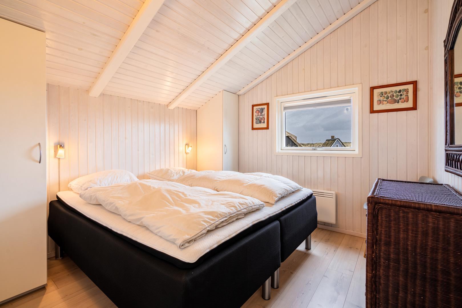 Huset rummer herudover to badeværelser med regnvandsbrusere, og det ene af disse badeværelser har desuden spa og sauna. Endelig er der tre soverum to med dobbeltsenge og et med enkeltsenge.