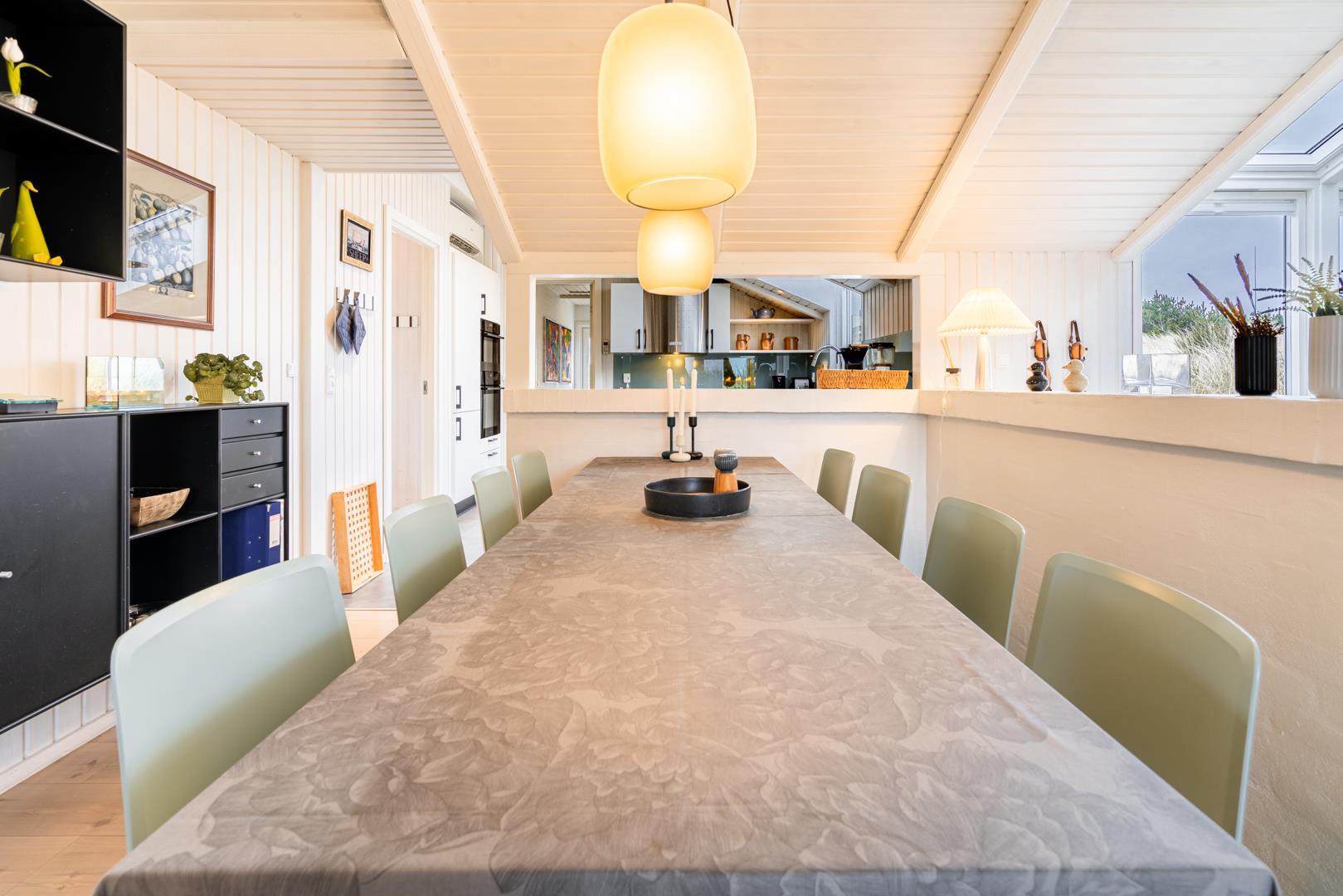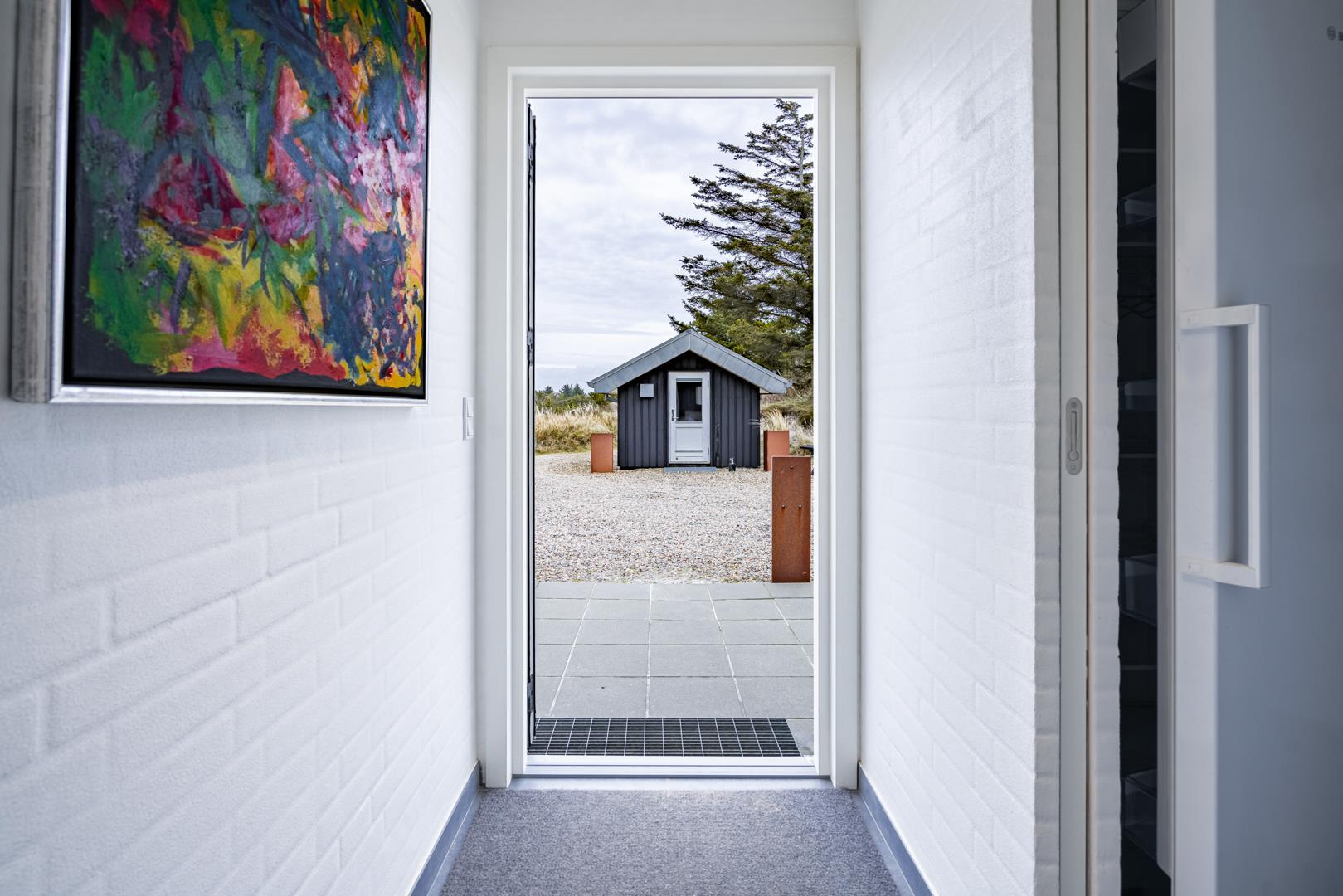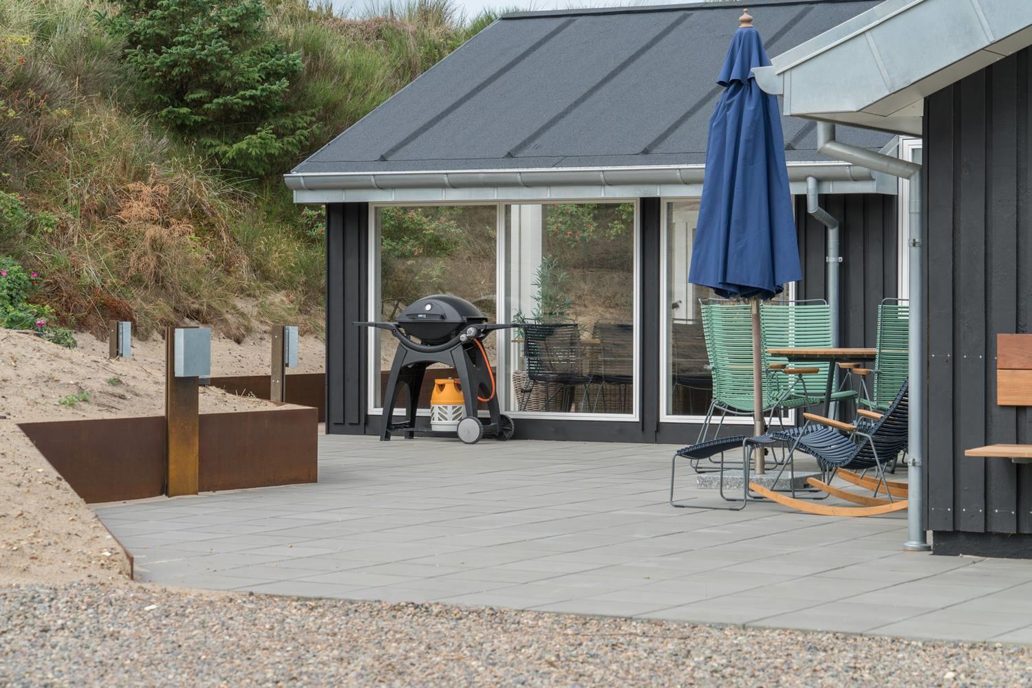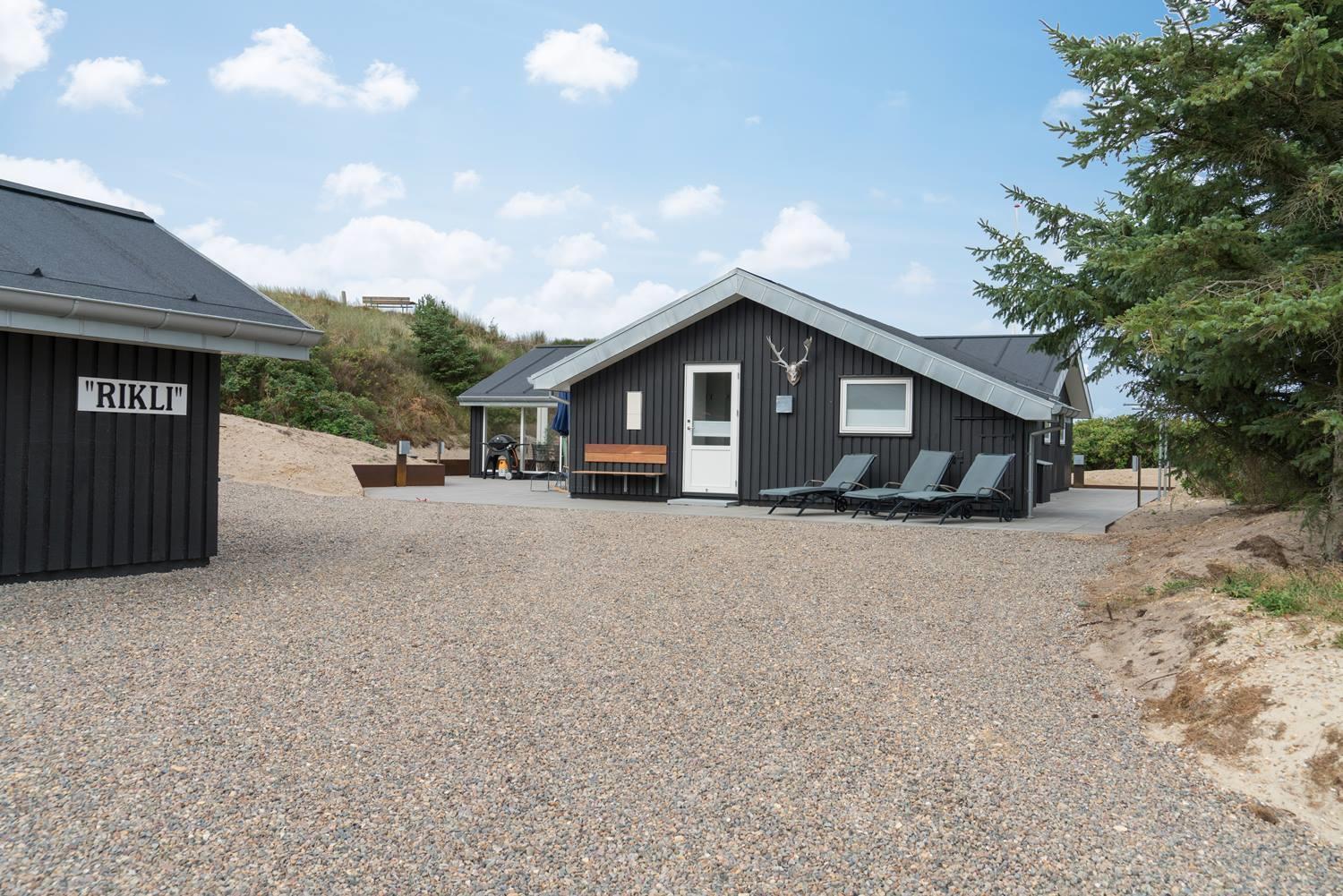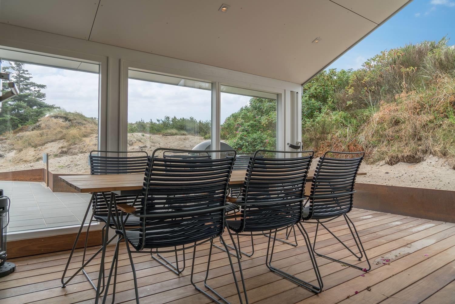 På en skala fra 1 til 10 får dette sommerhus 11. Huset er lækkert fra inderst til yderst, og så byder det på skønne faciliteter som sauna og spabad og ikke mindst et stort, pragtfuldt terrassemiljø. Sommerhuset ligger naturskønt og ganske ugeneret på en klitgrund i det nordlige Henne Strand.
