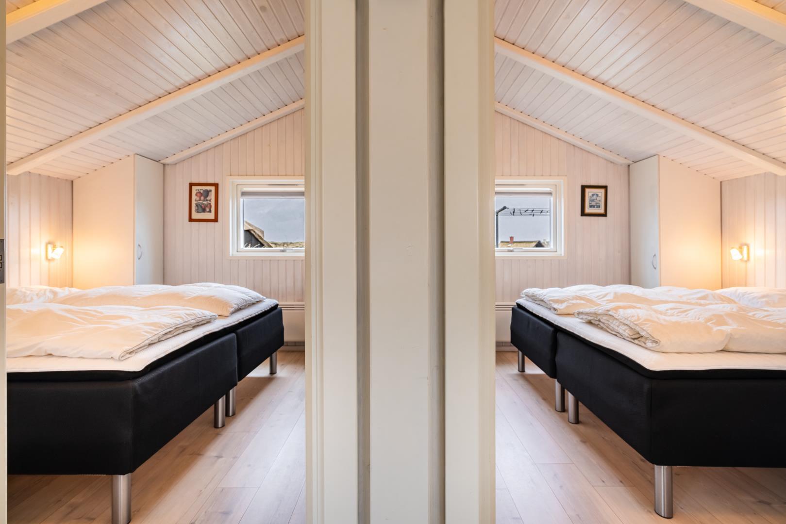 Sengestørrelse: 2 dobbeltsenge 180 x 200 cm + 2 enkeltsenge 80 x 200 cm.