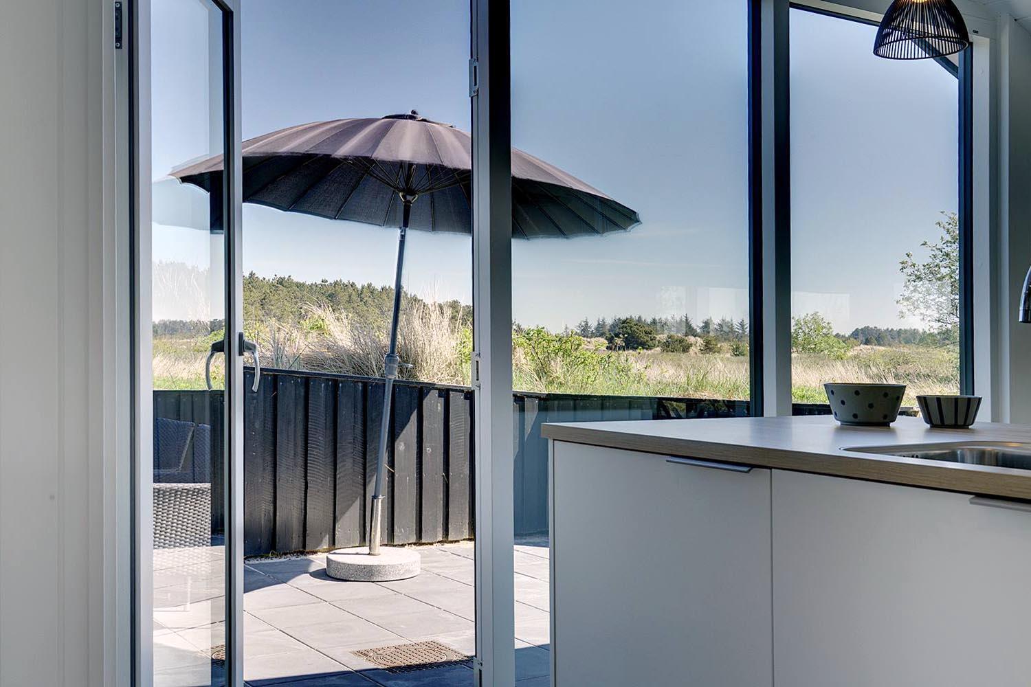 Skønt, lyst og venligt feriehus beliggende på en dejlig, kuperet naturgrund direkte op til fredet klit-/skovområde. Fra terrassen kan den pragtfulde udsigt nydes. Pænt køkken som er kombineret med den hyggelige opholdsstue. Fra 2021 er der lækkert nyt badeværelse.