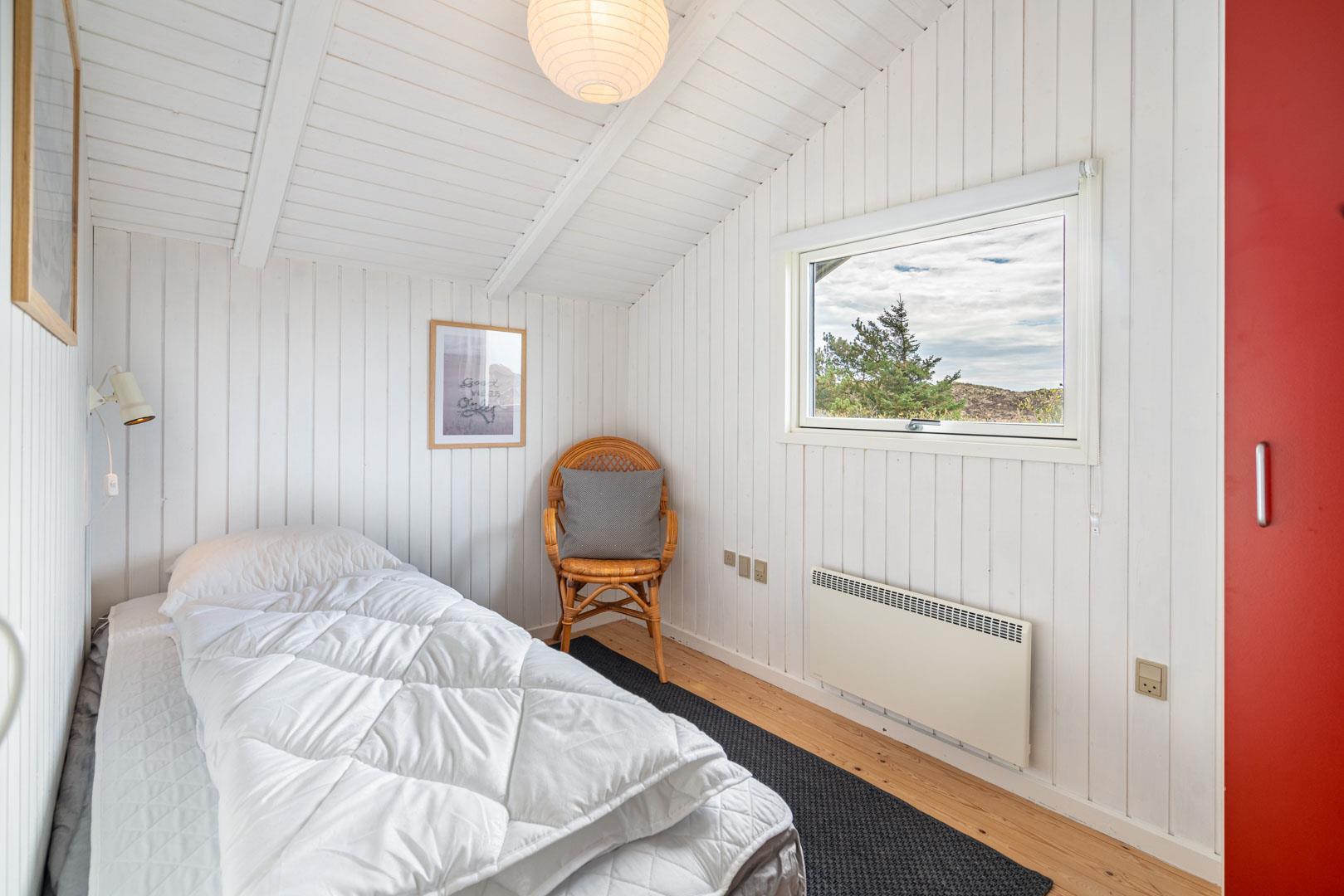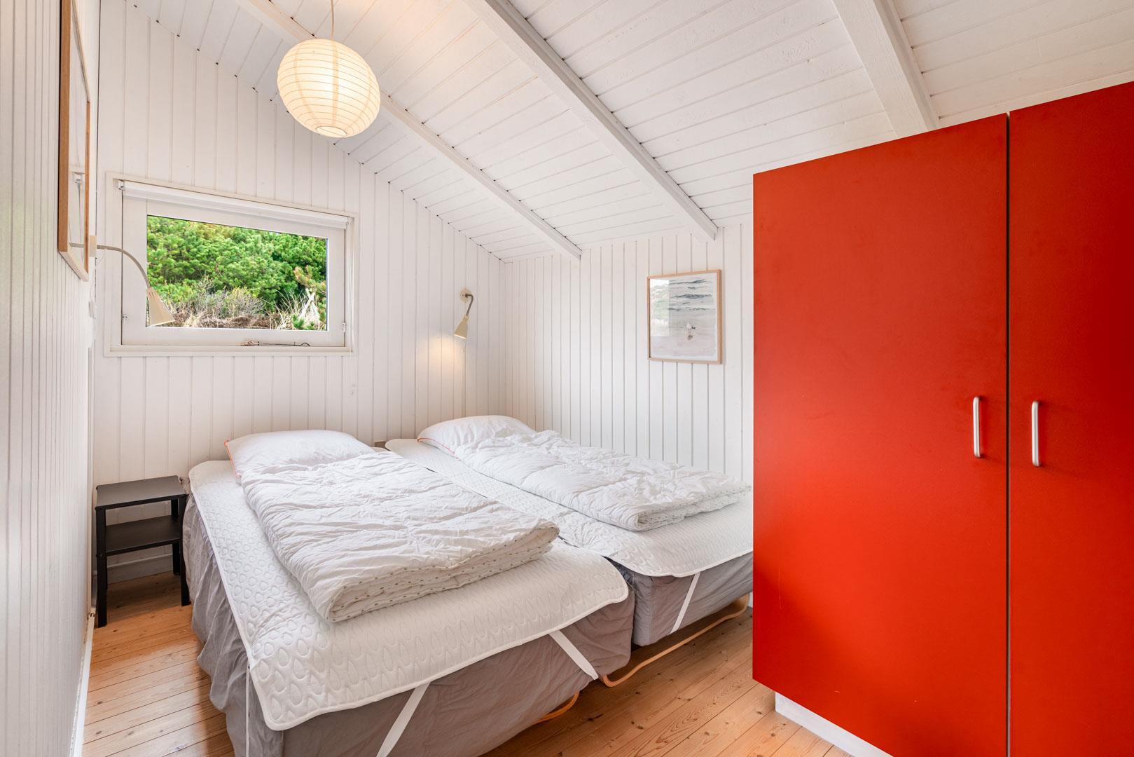 Træd ind i dette velholdte sommerhus, beliggende på en stor naturgrund i det smukke Henne Strand. Køkkenet er forbundet med den hyggelige stue, hvor brændeovnen spreder varme og atmosfære, og skaber den perfekte ramme for afslapning. Med behagelige møbler vil du hurtigt føle dig hjemme og godt tilpas. Her er komfortable sovemuligheder for alle 5 personer med et værelse med dobbeltseng, et værelse med to enkeltsenge og et værelse med en enkeltseng. I sommerhuset finder du desuden et rigtig fint badeværelse.