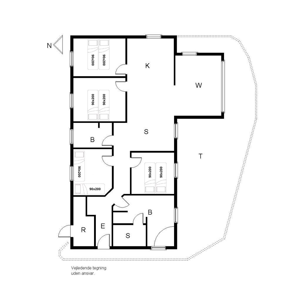 Sengestørrelse: 3 dobbeltsenge med 2 madrasser 90 x 200 cm + 2 enkeltsenge 90 x 200 cm.