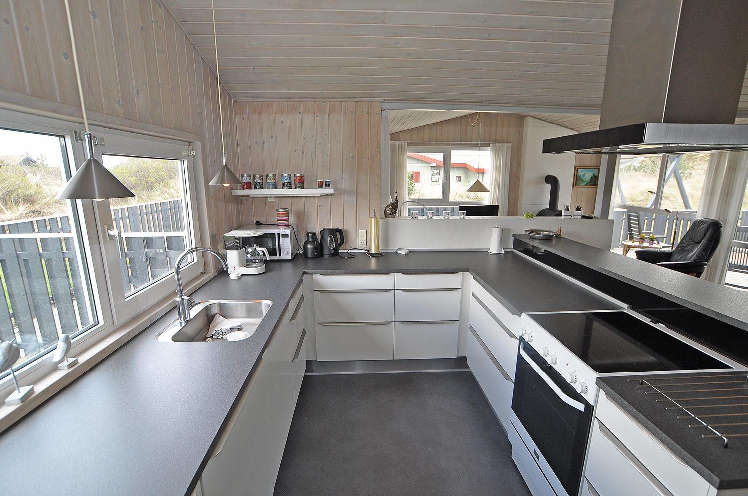 Meget velholdt feriehus beliggende på en naturgrund. Huset fremtræder overalt, lyst og velholdt, og her er god plads til afslapning og en god ferie. Dejligt badeværelse med spa og sauna. Den store terrasse giver god mulighed for både solbadning og hyggelige grillaftener. Køkkenet er veludstyret og ligger i åben forbindelse med stue og spisestue. Huset er moderne og indrettet med gode møbler. På grunden er der sandkasse og gynge til børnene.